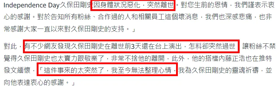 一转眼4月就要进入末了一周了,在已往的20多天国表里娱乐圈有近20位明星名流脱离了,此中有3位年轻明星的离世引发了关注——年仅26岁的韩女星郑彩律在家中殒命、年仅25岁的韩男偶像文彬在母亲生日前一天去世,另有36岁的日本笑星久保田刚史猝死,经查抄仍旧无法确认死因。 如今久保田刚史的忽然离世在当地引发极大争议,从媒体到网友都在纷纷推测他的死因,也是由于久保田刚史去世太过忽然,包罗他的搭档都无法担当,更别提喜好他的粉丝了。 要知道就在3天前,久保田刚史还在正常演出,演出排期都不停排到了2023年5月份。 别的,久保田刚史经纪公司给出的说法也很含糊,只提了一句他是由于身材状态恶化忽然离世,云云语焉不详,更是引发推测。 各大日媒也纷纷开启分析模式,很快扒出久保田刚史生前患有慢性糖尿病,他的死因也极有大概和暴饮暴食有关。 不难发现,久保田刚史本身体型偏胖,2010年他就对外透露本身患上了糖尿病,不外其时症状还很轻微,不影响一样平常活动。 结果不到2年时间,久保田刚史的糖尿病就加重了,被大夫克制喝果汁。 很显着,久保田刚史并没有遵医嘱。 从久保田刚史被克制喝果汁到他不测猝死,差不多11年时间,患有糖尿病的久保田刚史看上去和正凡人没有任何差别,乃至还经常暴饮暴食,深夜喝酒、险些每顿饭都要吃油炸物,完全没有控制血糖的意思。 ——过分摄入酒精会影响肝功能、高油高糖食品会导致糖尿病恶化,久保田刚史之前也有过身材状态不佳的报道,就在久保田刚史去世前2天,他还对外抱怨过本身的胃很不舒服。 有了这些佐证,各人也都推测久保田刚史猝死的缘故原由极有大概是糖尿病恶化,但具体死因照旧很难判定,连查抄都查不出来。 久保田刚史的忽然离世,也是再次提示了大众要及时关注个人身材康健,像久保田刚史患有糖尿病,本身是慢性病,他带病十几年照常吃喝,偶有小病小痛也看似影响不大,以至于让久保田刚史有了松懈生理,并不把本身看成病人对待,连病情恶化都没有留意到,终极变成悲剧。 和久保田刚史险些一前一后脱离的25岁韩国男偶像文彬,以及3月下旬猝死的男星艾翔,着实在去世前都有过征兆——文彬在舞台演出后感觉非常疲累;艾翔在上节目玩游戏过程中喘不上气,抓着胸口险些快断气,这些信号其时都被他们本人和外界忽略了,直到他们忽然离世后,才会被各人发现。 固然,生老病死到底照旧无法猜测的,但有些不测和悲剧也是有可以制止的大概,遵医嘱定期体检、及时关注身材厘革,不管是明星照旧平凡人,身材康健擦?鲱告急的,比任何事都值得耗费精神,末了也是祝久保田刚史一起走好,36岁还很年轻啊。 本文未经授权严禁转载违者必究! |