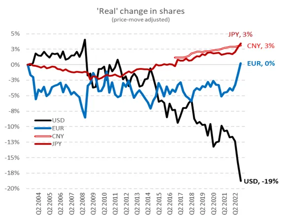 在“去美元化”风潮徐徐显现的当下,有人以为美元霸权正走向闭幕,有人以为,比年来美元国际职位是加强市场不应过分解读。 那么,现阶段美元的天下霸主究竟面临多大的寻衅? 美元微笑理论”创建者Stephen Jen以为,这须要从美元的储备钱币的职位以及作为国际商业结算钱币的须要性两方面提及。 4月17日,Stephen Jen和分析师Joana Freire在的陈诉中指出,美元正徐徐失去其储备钱币的职位,且在“逆环球化”海潮下,美元作为国际结算钱币的须要性也正徐徐消散: 2022年,美元作为环球储备钱币的份额急剧降落,至环球总储备的47%。一年内8%的跌幅非同平常,相当于前几年美元市场份额年均下滑速率的10倍。 我们以为,由于美国通过其主导的环球金融体系对俄罗斯国家和个人的金融制裁,表现了美元储备情势的不可靠,这一活动也招致了多国的不满,使美元持有量暴跌。 非美元商业结算在本年增多,多国当局公布在商业结算中绕过美元。 美元天下储备钱币职位正在瓦解Jen在陈诉中指出,2022年,环球央行正加快镌汰美元相对于其他钱币的持有量,美元作为储备钱币的市场份额开始瓦解,相当于前几年美元市场份额年均下滑速率的10倍: 因美元在环球经济中占据着主导职位,美元的稳固性和活动性使其成为中央银行首选的储备钱币。 按现实代价盘算,已往20年中,现实美元储备持有量暴19%,美元的市场份额从2003年占环球总储备的约三分之二稳步降落到2021年的约 55%。 然而,到2022年,美元的份额急剧降落至环球总储备 47%,一年内8%的跌幅非同平常,相当于前几年美元市场份额年均下滑速率的 10 倍。 Jen指出,钱币的本质是光荣关系,随着天下在已往几十年间享受着商业和经济环球化,2000 年代以后美元在总储备量中的份额开始下滑这点不敷为奇: 1971年美国正式公布美元与黄金脱钩,导致了环球外汇市场的紊乱,也被称为“尼克松打击”,环球进入了以国家书用为背书发行钱币的期间。 央行须要维持肯定命量的外汇储备来应对大概发生的国际商业和金融风险,而美元是最紧张的外汇储备。 在以后的浮动汇率制度期间,由于钱币汇率的颠簸和金融市场的不稳固性,一些国家钱币面临着做空的风险,美元可以很好的资助他们抵抗这种风险。 在2000年以后,随着经济环球化进程加快,各国央行对差别钱币的多元化设置也是自然而合乎逻辑的。 但2022年各国美元持有量暴跌,这并不正常。 Jen以为因俄乌辩说,美国通过其主导的环球金融体系对俄罗斯国家和个人的金融制裁,表现了美元储备情势的不可靠,这一活动也招致了多国的不满,成了美元持有量暴跌的紧张缘故原由: 储备钱币发行国通常拥有较少的外汇储备,而一些须要保持汇率稳固的国家须要持有大量外汇储备。 一种假设是,大量美元持有者为G7以外的国家,以是当看到以美国为首的G7对俄罗斯举行制裁时,这些国家颇为震动,开始抛售美元。 华尔街见闻此前在VIP文章《逆美元化的本质是逆环球化》一文中分析指出,美国当局对美元霸权的滥用严肃影响了美元光荣,俄乌辩说让“逆环球化”标题越发突出,这使得本来寻求“服从”优先的“环球一体化”发展彻底成为已往式,取而代之的是各经济体在小团体范围内(欧盟、东盟等)的“抱团取暖和”。 但Jen指出,天下钱币体系是一种底子办法,短期内还看不到可以取代美元的别的钱币,因此大概未来并非简朴的去美元化过程,而是地区性钱币团体和钱币区不绝萌发的时期,是美元体系不绝面临威胁的期间。 非美元结算的期间美元在国际商业和金融中扮演着至关紧张的脚色。很多国际商业和金融买卖业务都以美元结算,这使得美元成为环球钱币活动的重要渠道。 2023年2月,伊拉克央行公布允许以人民币直接结算对华商业,此前不停以美元举行结算。 3月29日,据法新社报道,巴西当局思量利用本币结算与中国间的商业,而不消美元作为中央钱币。 3月尾,金砖国家讨论开发“新钱币”,巴西总统卢拉号令,金砖国家用本币结算 Jen直言,“去美元化”正在举行。但短期内美元在国际钱币体系中的主导职位仍然稳固: 以非美元钱币结算的商业规模与美元作为对冲和投资目标规模相比很小,且国际钱币依靠于网络效应,因此美元的上风短期内并不碰面临威胁。 纵然美元开始作为储备钱币的市场份额急剧降落,但现阶段上风显着,想要寻衅美元国际钱币主导大概性不大。 BIS最新观察(2022年4月)陈诉称,如今环球外汇市场逐日总成交额约为7.5万亿美元。这意味着与商业结算直接干系的外汇买卖业务额占比不到2%(环球商业额约为每年32万亿美元)。这也表明金融目标与收支口结算的比例凌驾50:1。 因此,只管以非美元钱币结算的商业会转移天下对美元的部门需求,但这些规模微不敷道。 Jen以为,基于上述结论,美元的金融属性比商业买卖业务属性相比更为突出,那么美元失去其主导职位的环境为:(i) 未来天下其他地区的金融市场在规模和质量方面占据明显上风,或/和 (ii) 美国因巨大政策失误而经济阑珊: 如今来看现阶段,这两种趋势都已经开始,但还处于起步阶段。但假如美国犯更多的政策错误,那么各国大概会忽然镌汰对美元和美元资产的依靠,而这种匿伏的变革将是不可逆转的。 |