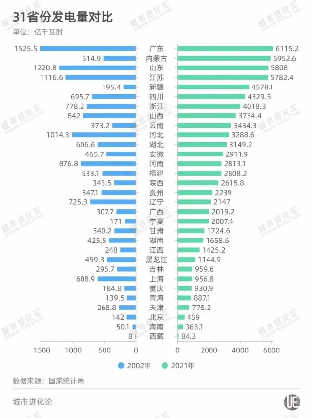保障能源安全,推进低碳转型 高温干旱一连,四川仍在尽力应对有数缺电困难。 水电不敷,火电顶上。当前,四川67座火力发电厂“火力全开”,全省火电着力占比已到达电网最大负荷超25%,而往年夏季丰水期,该比值一样平常不到10%。 非常天气对能源安全提出寻衅同时,在“双碳”目标配景下,能源结构调解已是局势所趋。国家能源局此前明确表现,“我国能源发展的总体思绪是在包管能源安全的条件条件下,一连推进能源绿色低碳转型。” 从天下电力地区版图来看,是谁撑起了天下一年凌驾8万亿千瓦时的用电量?在向包罗风电、光伏等在内的新能源转型过程中,谁又将挑起大梁? 01经此一夏,“省电”一跃成为川渝地区最热词组,亦引发了外界对“西电东送”这一世纪工程的关注。 毕竟上,正是当年广东的缺电危急,加速了西电东送历程—— 改革开放后,广东经济高速增速。1991年至1995年,年均电力增长18.21%,1996年至1999年,年均增长8.4%,同时,其还负担向香港、澳门和湖南南部供应部门电力的任务,1999年向这三地输电达99亿千瓦时,同比增长25.1%,“拉闸限电成了家常便饭”。 为此,广东方面提出,渴望中心答应在“十五”期间广东新建1000万千瓦发电机组。随后,原国家计委向国务院报送了《关于加速“西电东送”以满意广东“十五”电力需求有关环境的陈诉》。 当时的考量是,在贵州、云南建立以水电为主的1000万千瓦发电机组,如许既能满意广东日益增长的电力需求,又能为西南部经济掉队省份找到一个新的增长点。 2000年11月8日,贵州乌江上的洪家渡水电站,西电东送工程第一个开工仪式举行。大幕正式拉开,中国电力格局开启极新一页。 数据表现,2002年,广东的发电量天下第一,为1525.5亿千瓦时,与云贵川三省发电量总和(1616亿千瓦时)相差不大;到了2021年,广东以6115.2亿千瓦时发电量排名天下第一,而云贵川三省发电量已增至10002.8亿千瓦时。 不光云云,2002年,除广东外,山东、江苏、河北的发电量也均凌驾1000亿千瓦时;厥后是河南(876.8亿千瓦时)、山西(842亿千瓦时)、浙江(778.2亿千瓦时)和辽宁(725.3亿千瓦时)——彼时,广大西部地区的电力资源另有待开发。 同时,广东、江苏、山东、浙江的电力消耗量均凌驾1000亿千瓦时,都存在肯定水平电力缺口。这内里,浙江缺口最大,为232.52亿千瓦时;广东次之,有162.33亿千瓦时。 这一年,共有17个省份面临电力缺口,此中北京到达297.96亿千瓦时,为天下之最。 数据还表现,2002年至2017年,广东不停保持发电量天下第一的水平,2018年至2020年被内蒙古逾越,客岁又以6115.2亿千瓦时的结果重返第一,领先第二名162.6亿千瓦时。 不外,20年间,广东的电力缺口压力有增无减,除2011年有小幅回落外,不停在加大。 2004年逾越北京成为第一时,其面临的电力缺口为364.64亿千瓦时,2018至2020年,一连三年迫近2000亿千瓦时,2021年缺口收窄至1751.8亿千瓦时。 城叔注意到,只管2021年电力消耗量大于发电量的省份数量仍为17个,但压力值已陡然升级—— 除广东外,山东、浙江、江苏、河北的电力缺口同样凌驾1000亿千瓦时,河南、上海、北京也在七八百亿千瓦时区间内。 而在保供端,20年间,输出本事也有了显着提升。继2011年内蒙古成为首个净供电量凌驾1000亿千瓦时的省份后,2016年云南、四川到场,2020年和2021年,山西、新疆也先后入列。 022021年,内蒙古可凭一家之力,补上广东的用电缺口,于电力保供之告急不问可知。 从电力结构看,内蒙古重要靠火电,占比凌驾80%,风电和太阳能发电加在一起占到17.5%。 不外,和大部门人印象中的排名差别,在火力发电量排行榜上,山东才是“隐形冠军”,多年来不停占据首位,2021年发电量到达5217.3亿千瓦时。 厥后,第二至第十位分别为内蒙古(4863.3亿千瓦时)、江苏(4836.1亿千瓦时)、广东(4628.8亿千瓦时)、新疆(3670.7亿千瓦时)、山西(3205.7亿千瓦时)、浙江(3034.7亿千瓦时)、安徽(2690.3亿千瓦时)、河北(2686.6亿千瓦时)和河南(2447.3亿千瓦时)。 值得注意的是,本年1至7月,内蒙古火力发电量为2962.2亿千瓦时,同比增长6.2%,而山东输出2933.5亿千瓦时,同比降落3.2%——火电头把交椅,本年或将易主。 别的,新疆也是“潜伏”的火电大户,占比凌驾80%。数据表现,2002年至2021年,其火力发电量增长22.3倍,同期总发电量增长23.4倍,保持同步增长。 固然,陪同能源结构调解,火电在总发电量中的占比逐年降落,作为干净能源的水电,则日益汹涌,把四川、云南奉上了“电力大省”火线。 停止2021年,天下共有3个省份的水力发电量凌驾1000亿千瓦时,分别是四川(3531.4亿千瓦时)、云南(2716.3亿千瓦时)和湖北(1531.5亿千瓦时)。 而在20年前,水电团体规模偏小,全部总量也才2476.9亿千瓦时,不及云南客岁水平。 这内里,2008年,湖北水力发电量率先突破千亿千瓦时大关,成为第一水电大省,2011年,四川实现逾越,并渐渐拉开差距。2013年,云南代替湖北,跻身天下第二。 本年1-7月,四川和云南分别保持21.8%、26.8%的高速增长。 图片泉源:新华社 须要指出的是,上海和天津不停以来都是没有水力发电的,西藏和山东则分别于2004年、2007年取得零的突破,但停止现在体量仍然较小。 说到这儿,大概有人好奇,广东既非火电前三,水电也仅百亿千瓦时规模,是怎么做到发电量天下第一的?答案是,核电。 2019年,广东核能发电量初次突破千亿,到达1101.7亿千瓦时,2021年增至1204.1亿千瓦时,占比达19.7%。 不光云