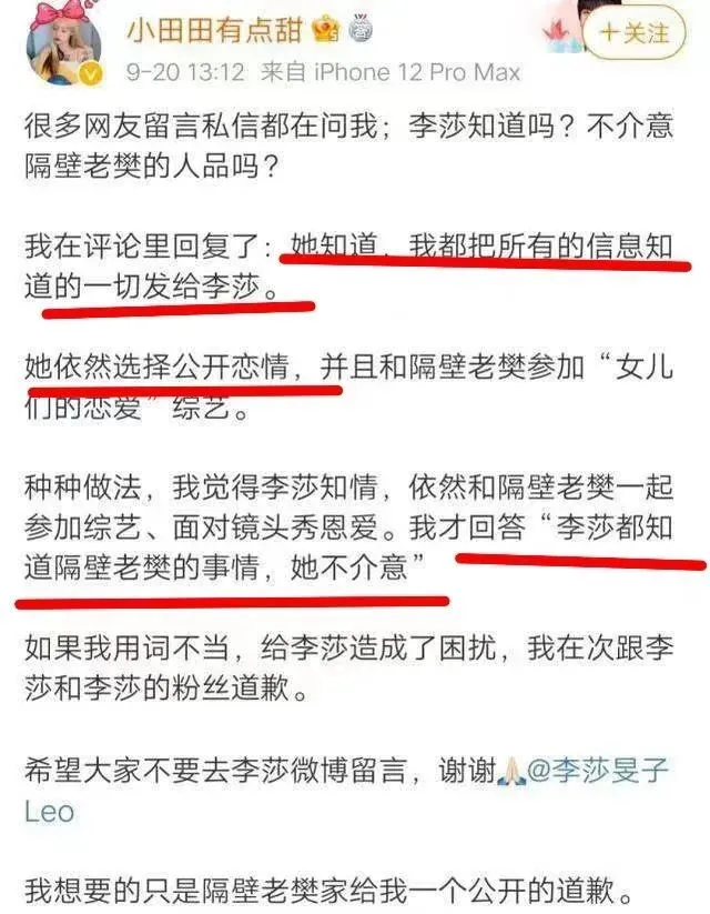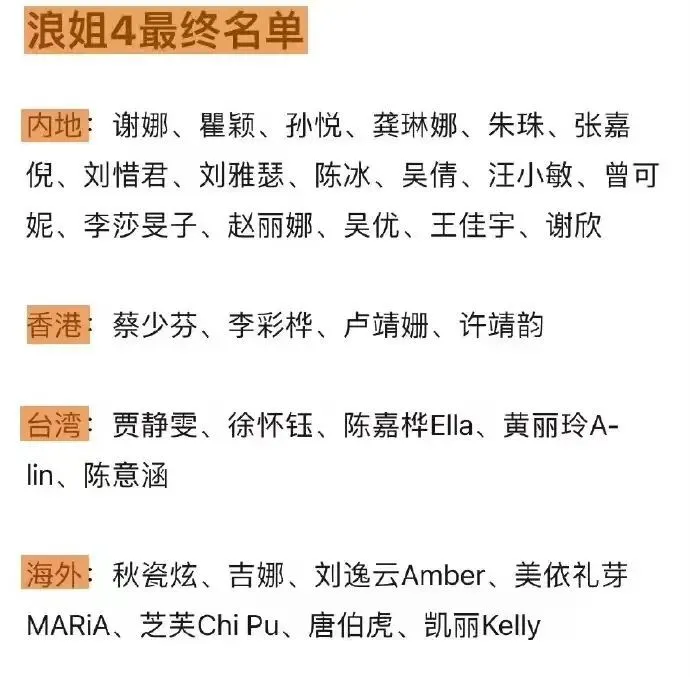 固然《浪姐4》还没正式和观众见面,但是却未播先火。岂论是路透图,还是初舞台排名,只要跟《浪姐4》干系的话题,都能敏捷冲上热搜,可见其关注度之高。 颠末各种推测和爆料,《浪姐4》的终极名单终于灰尘落定。据悉,本次共有33位姐姐,包罗孙悦、龚琳娜、秋瓷炫、李彩桦、朱珠、蔡少芬、吴倩等等。 每个人身上都有话题,此中包罗开撕、出轨、翻车等等,真是各有各的故事。 起主要说的就是前段时间,闹得沸沸扬扬的“开撕”变乱。情况是如许的,有爆料称徐怀钰在公演的时间,跟不上走位,不绝拖后腿,贾静雯上台直接内在了。 而徐怀钰之以是状态这么差,是由于她在到场《浪姐4》的时间,还接了其他商演,从而导致没怎么练习,拖累了其他姐姐。如果节目播出贾静雯当众内在的画面,那真是隔着屏幕都能闻到一股炸药味。 这则爆料出来后,贾静雯与徐怀钰均不作回应,既不承认也不否认,看来多半是真的。因此,徐怀钰的路因缘大跌,许多网友给她留言,盼望她能明白孰轻孰重,《浪姐4》是多么大的一个舞台,不要企图眼前长处,捡了芝麻丢了西瓜,劝她放弃商演。 简朴先容一下两位当事人,徐怀钰因出演《天地传说尤物鱼》中的小莲,被观众熟知。后因违反公司合约内容,被雪藏了半年。她的代表作有《踏浪》《我是女生》等等。 至于贾静雯,信赖各人就更熟了,出演过《至尊朱颜》《倚天屠龙记》等剧,是实至名归的“古装女神”,也是许多民气中的“童年女神”。从路透图来看,48岁的贾静雯状态超好,妥妥的“冻龄女神”,等待她的表现。 除此之外,其他姐姐身上的八卦,也非常劲爆。比如秋瓷炫,因《回家的勾引》受到广泛关注,仿佛一出场就自带配景音乐。 实际上,秋瓷炫看似光鲜亮丽的背后,却有着许多心伤。童年时期被母亲不公平对待,完婚后老公于晓光被曝疑似出轨,让玉人坐大腿。只想说姐姐,请独美。 节目组是会搞事变的,既然“品如”都来了,怎么能不约请“艾莉”呢,李彩桦的履历同样坎坷,她曾经背负巨额债务,拒绝经纪公司安排的潜规则,被雪藏十年。 遭到冷藏后,李彩桦被拍到卖衣服赢利。不管碰到多大困难,她始终没有放弃,终于东山再起,重回娱乐圈。 着实,除了艾莉,她还演过一些经典的脚色,比如王昭君。 时隔多年,“品如”与“艾莉”再次同框,势必会掀起经典追念杀。就两人最新的同框照来说,秋瓷炫穿着一身黑,非常淡漠,李彩桦破洞裤的妆扮,比力潮水。她俩站一起,就是一场颜值盛宴,尚有网友发起,“让洪世贤做评委”。 屡见不鲜,张嘉倪的的“老公”买超,也被曝出轨过,“好夫君”人设刹时崩塌。关键是买超曾说,“没有仳离,只有丧偶,出轨就自断双腿”等言论,现在看来,真是讽刺。 据悉,买超出轨对象名为邵晴,还是门生,固然她发文澄清,但网友并不买账。对此,张嘉倪霸气回应“爱得起放得下”,非常潇洒。 克日,有爆料称张嘉倪与买超已经仳离了,双方仳离不离家。张嘉倪现在除了带娃,就是搞奇迹,主演的新剧《人生之路》收视排名第一,这次到场《浪姐4》非常令人等待。 吴倩现在也是用心搞奇迹,当初与张雨剑完婚,她变得沧桑干瘪,男方明显已婚有娃,还立只身人设。妻女被狗仔偷拍曝光后,他的发文还在内在吴倩。 与张雨剑仳离后,吴倩被全网恭喜,她的颜值回春,作品也是一部接着一部。从路透图来看,她的笑容甜蜜,芳华元气,谁人灵动的赵默笙又返来了。 与吴倩一样,李莎旻子也是结业于武汉大学。她和男友隔壁老樊,是网恋奔现,先在网上谈天,厥后才见面。 李莎旻子与隔壁老樊在恋综《女儿们的爱情4》里花式秀恩爱,得到了一些关注度。 没过多久,一个名叫“小田田有点甜”的网友,实名举报隔壁老樊。据悉,她是他哥哥的前妻,也就是他的前嫂子。 据这个“小田田”爆料,隔壁老樊和他哥一样,私生存杂乱,他哥家暴,他跟着发小去嫖娼。 看到爆料后,许多人关心李莎旻子,盼望她能和隔壁老樊分手。对此,“小田田”复兴称,已经把统统都发给李莎旻子了,她不介意。这真是令人大跌眼镜,许多网友直呼,“李莎旻子是爱情脑”。 相比之下,陈意涵的故事则是“截然相反”。她曾在采访中说自己非常喜欢谈爱情,来往过许多男朋侪,常常带着前男友团一起出国,目的是(把前男友)构成一个足球队。 陈意涵的这番话,被人扣上了“海后”的标签。与导演许富翔完婚生娃后,她就渐渐淡出演艺圈。从《浪姐4》的路透图来看,纵然阔别荧幕许久,陈意涵看着仍然元气满满,40岁了还那么有少女感。 值得一提的是,陈意涵曾经到场过著名“互撕”节目——《花儿与少年2》,听说这次贾静雯内在徐怀钰,她也在“开撕”现场,也太“抓马”了。 同样“抓马”的,尚有谢娜,在她身上,有一件事变深受关注。那就是她曾找包文婧乞贷,借的是3万澳元,结果只还了3万人民币。在一次节目中,包文婧提示谢娜,把剩下的12万钱还了,她却反过来怪人家太盘算了。 不光云云,谢娜还给包贝尔吐槽,说包文婧太吝啬。此时,旁边的一个女高朋看不下去,问谢娜如果位置交换,她会怎么做,没想到谢娜说她会借人民币,然后还泰铢。 颠末这件事,谢娜的品德被吐槽,作为一个着名主持人,居然这么抠,自己欠钱不还,还倒打一耙,责怪别人。加上反面的“买房跳单”变乱,固然已经作了澄清,但不少人还是信赖谢娜夺目出来这种事。 别的,不久前的助理打手机变乱,也