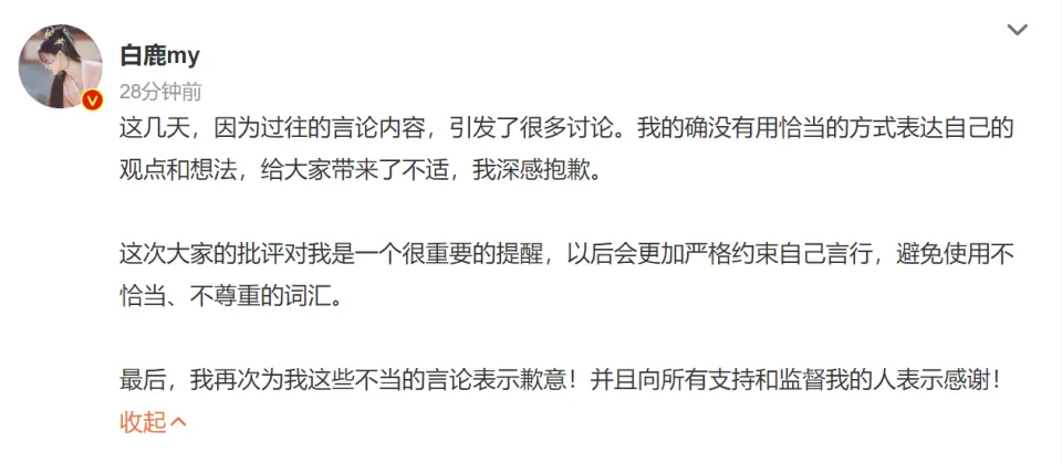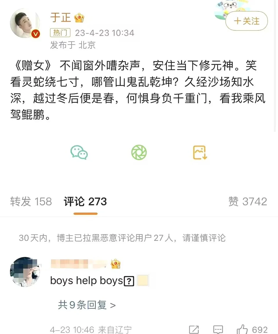 白鹿迩来是真的好火啊。《长月烬明》刚播出的时间,罗云熙太瘦,白鹿太壮的话题就引发了网友们的热烈讨论。 不外当时大部分网友还是站在白鹿这边的,究竟白鹿拍这部戏的时间才85斤,如果这都叫壮,那对女生也太苛刻了。 随着《长月烬明》的热度越来越高,女主白鹿的讨论度也跟着水涨船高。于是白鹿过往的黑汗青,也被扒出来了。 原来白鹿这几年不停在说自己是男子,《凤囚凰》的发布会上,她连续反复夸大自己是男的,让很多网友表现不明白。 厥后她又在节目中吐槽自己的脚色太娘,以致还将男霸总和小母狗与女霸总与小奶狗对标,被以为有媚男辱女的怀疑。 早在19年的时间,白鹿就自称是男朋侪。这些活动都让网友们更加认定她瞧不起女性,这件事也曾经发酵过。 有人渴望白鹿能出来致歉,但白鹿非但没有致歉,反而还对网友发出了状师声明,表现要生存追究网友责任的权利。 这波利用让白鹿的路因缘直接降到谷底,但白鹿好像并不在意。随着她播出的电视剧连续播出,白鹿的人气又逐步回升,这件事也徐徐翻篇。 然而互联网始终是有影象的,如今《长月烬明》大火,白鹿在剧中的表现也引发了高度关注。 一些吐槽白鹿演技和颜值的网友,遭到了白鹿粉丝的攻击。于是白鹿的路因缘再次降落,她过往的黑汗青 也再次被扒。 如今白鹿早期言论更是被各人多次转发,白鹿的口碑再次跌到谷底。有人喊白鹿出来致歉,痛惜白鹿不光没剖析,还删除了微博里大概引发争议的内容。 而作为白鹿的老板,于正也是在此时站出来力挺她。专门为白鹿写了一首诗,《赠女》。 各人品品这个诗的内容: 不闻窗外嘈杂声,安住当下修远神。 笑看灵蛇绕七寸,哪管山鬼乱乾坤? 好家伙,感情白鹿是忍辱负重的修仙者,而吐槽她的网友们都成了乱乾坤的山鬼。看来死丫头是懂得怎么激怒网友的,反正对于明星来说,黑红也是红呗。 有网友立刻在于正批评区问他:boys help boys? 于正智慧的选择了视而不见,反而当另一位网友问他赵丽颖能不能拿到白玉兰奖时,于正的回复让人不得不猜疑,他是在拉赵丽颖给白鹿背锅。 这位网友的提问是:本年白玉兰赵丽颖有时机得奖吗?你怎么看? 于正的回复是:她不管得不得奖在我内心,同年事段的女演员里,演技就是第一名,毋庸置疑。 乍一看,于正这是在夸赵丽颖,而且给了她很高的评价。可细致一品,这味儿就哺咝刷了。 按照正凡人的逻辑,如果你很喜好这个人而且至心渴望她拿奖的话,回复起首应该是肯定的。好比我以为她能拿奖,大概我渴望她能拿奖。 什么情况下,会说“她拿不拿奖在我内心都是第一”?只有对方落第了,才会用这种话来安慰人吧? 如今白玉兰还没开奖呢,于正就在这里说半否定的话,怎么看他也不是至心渴望赵丽颖拿奖。 反面那两句话就更让人不得不多想了,跟赵丽颖同年事段的女演员有谁?不就是85花吗? 85花里的杨幂,和赵丽颖固然没有明面上闹反面,但两人不对付是各人都心照不宣的事故,两家粉丝也常常打斗。 这个时间于正夸赵丽颖是85花演技第一,这明摆着就是踩着杨幂来夸赵丽颖,这不是给她招黑吗? 黑子们可不会管这话是谁说的,他们只会以为赵丽颖不配。杨幂的粉丝也会不高兴,到时间还不是要赵丽颖来买单吗? 在白鹿被骂得最锋利的时间,于正跑来说这种话,很难不让人猜疑他是在拉赵丽颖帮白鹿转移热度。 赵丽颖也是倒霉,人在家中坐,锅从天上来。幸亏网友们都不是傻子,一眼看破了于正的利用。 于正还拉黑了让他回应白鹿“小母狗”言论的网友,更加刚强了各人对他拉赵丽颖下水的推测。 这些活动也让白鹿的口碑再次下跌,以致开始有网友去查白鹿都代言了哪些产物,其他网友也表现要开始抵抗这些品牌。 大概是看到网友们的刻意,担心影响到以后的古迹,白鹿终于姗姗来迟的致歉了。 白鹿表现为自己过往的不妥言行致歉,并对提示和监视她的人表现感谢。这个致歉声明固然来得迟了点,但还算体面。 不外网友们买不买帐,就不好说了。究竟事故刚发酵的时间,她但是傲慢的发过状师声明。 这事儿,你怎么看? ——END—— 作者:钱小刀 声明:原创不易,克制抄袭、洗稿,未经答应克制转载,请恭敬别人的劳动结果和你的脸! |