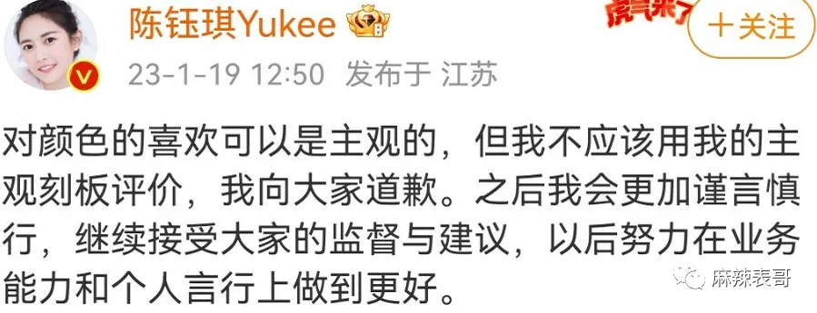 《长月烬明》从播出之后就特殊热闹。 一会儿是罗云熙被扒能不能甩起四十斤战戟,一会儿是白鹿和陈都灵粉丝开撕,一会儿是《长月烬明》被粉丝举报。 现在,轮到白鹿了。 她出了啥事呢? 大翻车,应该是出道以来最狠的一次翻车,缘故原由是踩到了当下最敏感的雷——别人都在女性觉醒,白鹿陶醉在已往的男子人设。 她有过几段发言。 称自己更喜欢霍璇,另一个脚色太娘了,她本人也比力排挤娘的东西。 白鹿反复夸大,自己就跟霍璇差不多,就像个男子一样。 她所说的,是《凤囚凰》里自己饰演的两个脚色。 一个是巾帼不让须眉的女将军霍璇。 一个是心狠手辣、工于心计的王室小妾乐蕴。 两个完全差别有各自魅力的脚色被白鹿简朴说成“男子”和“娘”,观感自己就不太好,她还不绝往自身性格上带,buff叠加。 而雷同发言,在白鹿的诸多采访中出现过多次。 称自己是男孩子的性格。 各人都把她当男子看。 我不是女高朋,我是男高朋。 这是男主该做的事,也是,我也是男主。 包罗微博上,也说过很多遍。 2014年白鹿还没出道,是个模特,其时有相亲节目找她,白鹿称自己才不会去当男高朋。 可见那会她就开起了“自己是男子”的打趣。 这种想法不绝贯穿到白鹿出道,以及至今。 我是个男孩子。 你的男朋侪上线了。 一点都不像男子。 男的。 相对于“男子”说法,对应起来的就是“娘”。 好娘。 娘娘的。 太娘了。 采访和微博被扒出来后,白鹿被喷了。 要是早个五年,大概还没什么,这几年女性意识崛起,各人已经很抵触用“娘”这种自己不是贬义但变成了贬义的词去形容女性。 于正曾有“死丫头”“于妈”等外号,现在各人也不太用了。 对于白鹿的发言,网友批评她显着性别是女,但精神上是个男子,尚有的网友以为白鹿“厌女”。 要说厌女,着实不至于,倒不如说是刻板印象。 “女子本弱,为母则刚”各人都听过,就是把女子弱化,把夫君强化。自古以来,也有男子代表阳刚女人代表柔弱的说法,久而久之,女生性格豪放大大咧咧,就会用“像男子”去形容,相反男子偏柔,就会用“娘”去形容。 很多艺人也有过同样的形貌。 杨幂:各人都是小女孩,我是“直男”。 陈都灵:我有“直男”的一面。 杨紫:都是男子干嘛呢。 杨逾越从出道开始就称自己是“钢铁直男”。 热巴:比男生还man。 倪妮,不少男星都说没把她当女的看。 以为她的性格像男孩子。 连走路,都很爷们。 有一次,倪妮和陈坤担当采访,倪妮撒了个娇,陈坤说倪妮很娘,倪妮愣了一下,反应过来:我不就是个女的吗?陈坤立即说:对对对。 尚有之前刘涛、张天爱、戚薇等都营销过“攻”的形象,粉丝大喊她们老公,可见,“娘”和“男”是大众对于“柔”和“刚”的更换。 不外,“柔”和“刚”更精准,“娘”和“男”就不止于此,更多的时间,“男”是一种褒义,“娘”是一种贬义。 当初,火箭少女团被传反面,孟美岐说,各人好像以为女生在一起肯定就会勾心斗角,这个谁人闹反面,着实各人不知道我们是11个男生。 瞧,这说法就很不对。 她们本就是11个女生,可以用自身去证明女生不肯定爱勾心斗角,但孟美岐选择直接换掉性别来分析。 苗苗也是云云。 在《老婆的浪漫观光》中,苗苗曾称自己是偏男孩子的性格,跟男孩子轻易玩到一起。 如果郑恺身边有很男性化的女孩,一起打篮球,做男孩干的事,她不担心。 但如果郑恺身边是盛饰艳抹的女孩,她就不能担当。 好似,像男孩子性格的女孩就肯定没什么心眼,盛饰艳抹的女孩就大概会有点什么,这都是对男女性别大过于男女实际性格的刻板印象。 性格大大咧咧的白鹿也是一样的题目。 不外,白鹿又不光仅是刻板印象题目。 白鹿是94年的,由于小时间喜欢韩流,2012年去韩国参选练习生,落第之后开始做模特。早早出来打拼,没有颠末文化的浸润,导致出现的题目是——词汇量匮乏。 这一点在很多流量身上都可以望见,就不逐一点名。 详细到白鹿身上,是各人形容一个女孩是“酷”“飒”,是“可盐可甜”,而白鹿停顿在“可娘可man”。 包罗,她的认知也没跟上来。 一个复杂的脚色被她简朴形容成“娘”,她又反复夸大自己排挤“娘”,却说不清楚是排挤哪一点特性,这就是题目地点。 别的,人设前后抵牾也是一大题目。 白鹿一边称自己像个男子,一边又在短视频上跳甜辣女团舞,观感再降一层。 她说“让我撒娇,不如捅我一刀”,对应起她撒娇的舞蹈,就很割裂 不如小作精虞书欣的人设同一。 翻车还不要紧,这个年代只要不是劣迹题目,都可以依附公关和时间把口碑给拉返来。 同样的题目,之前其他艺人碰到过。 工作职员夸穿粉色裙子悦目,陈钰琪说“粉色很娘”,这让她一度被骂。 厥后陈钰琪致歉。 表现对颜色的喜欢是主观的,但她不应该用她的主观刻板评价。 前两天李晨在综艺上称女生是累赘,也被骂了。 由于他下意识指女生体力不可。 厥后李晨也致歉,表现贸然说了一句不应说的话,对任何人都是恭敬的。 白鹿相比力上面两个,题目更突出。 一是“男和娘”提及次数太多,二是人设翻车,三是她还提到了一个词,xmg。 (怕是敏感词汇,我用拼音更换了) 固然粉丝指出,这个词是和小奶狗相对应,但的简直确听起来很不雅。 可白鹿粉丝不绝据理力图,说小母猫没题目,凭什么xmg就是欺侮性词汇,请各人不要污名化。 但在平凡语境当中,“狗”这个词就是骂人的