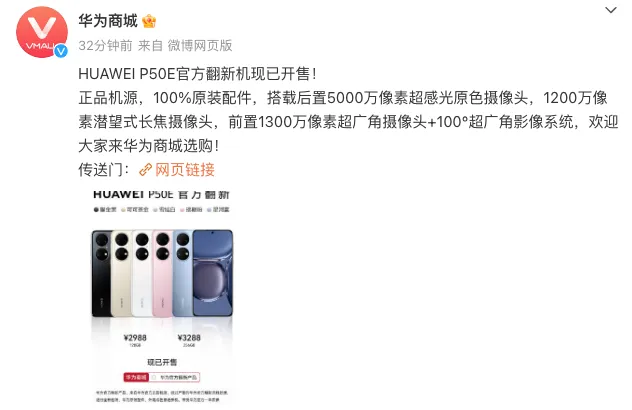 华为P50E手机在2022年3月的时间推出,接纳的是6.5寸屏幕筹划,支持90HZ革新率,1440Hz 高频 PWM 调光,支持 IP68 级防尘抗水。 电池续航方面,华为P50E手机内置4100mAh 电池,支持66W快速充电,在电池续航方面有非常不错的表现。 照相方面,华为P50E手机后置5000 万像素超感光原色摄像头+ 1300 万像素超广角摄像头+ 1200 万像素长焦摄像头组合。前置1300 万像素超广角摄像头 硬件设置上搭载的是高通骁龙778G4G处理处罚器,预装的是鸿蒙2.0体系,而且华为P50E手机支持鸿蒙3.0体系升级更新。 对于喜欢华为P50E手机的用户来说,如今华为P50E官方翻新机正式开售了,根据华为商城发文表现华为P50E官方翻新机现已开售!正品机源,100%原装配件,外貌成色靠近新机,享受华为官方一年质保。 8GB+128GB版本代价为 2988 ,8GB+256GB版本代价为3288。 |