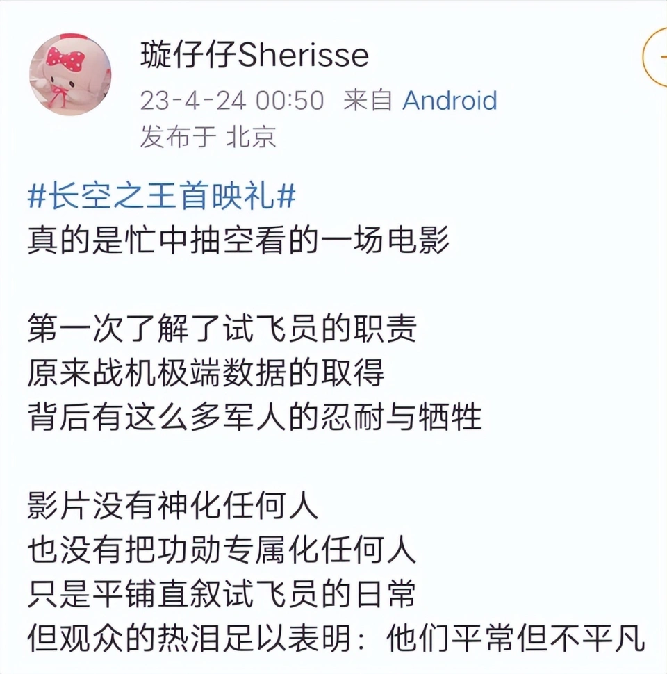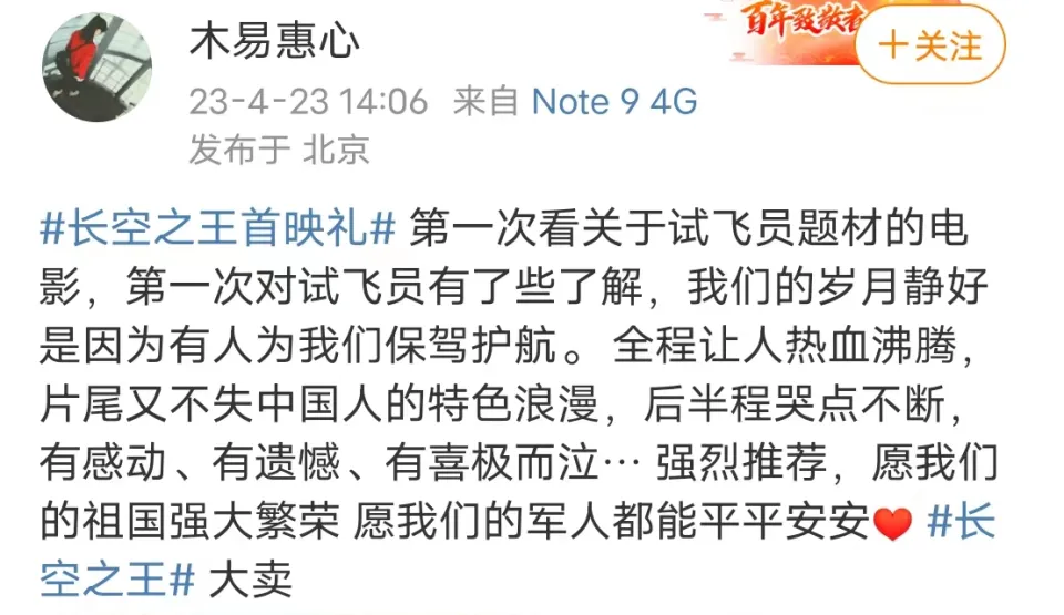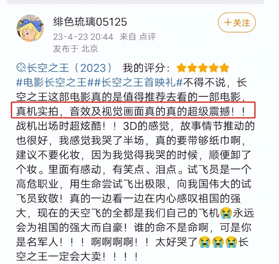 4月23日,《长空之王》在北京举行了影戏首映礼,观众席里出现了一位出人意料的观众。他就是宇航员杨利伟,曾经开过歼击机的飞行员、中国太空第一人也来校阅《长空之王》了,他的到来让影院里响起了耐久不息的掌声。 杨利伟都来恭维了,那么影戏《长空之王》毕竟有何魔力? 着实看名字就知道了,这是一部报告空中故事的影片,主角是我们的歼-10C、歼-20等战机,以及这些战机背后最强的一群人——试飞员。 除了杨利伟,歼-20的首飞功勋试飞员李刚,中国首代试飞员王昂也都以本身的方式力挺《长空之王》。 除了这些航空航天范畴的大人物,当天前来恭维的明星也不少。 第一位是沈腾,作为现在最有票房招呼力的演员之一,沈腾在看完影戏后直呼导演了不得。 第二位是郭帆,他是出了名的技能狂魔,黄渤都说他在制作《流浪地球》时工作室的灯长明到天亮,对视效把控严格的他在看完影戏后对影片的殊效不吝称赞之词。 别的金晨、大鹏、秦海璐、黄建新、韩寒等人也都观看了《长空之王》的首映。 这些名流都支持的影戏,毕竟好不悦目呢? 看过《长空之王》的观众给出的评价是:这是一部高燃热血,又可笑又好哭,而且还能引发民族自负感的超等大片! 估计有人会迷惑:一部报告空军的影戏怎么会可笑呢? 这是由于影戏在展示中国战机的威武和中国武士的英姿的同时,也不忘向各人展示武士们的平常状态。 比方主角雷宇在报道时,战友盯着他看了一眼,然后说了一句:“英俊!” 雷宇以为对方在夸本身,结果他的嘴角刚得意地翘起来,对方又来了一句:“我叫高英俊。” 像如许的包袱,在影戏里另有很多,总是能时不时地逗笑观众。当试飞员们穿上试飞服,他们公理凛然,当脱下这身制服,他们嬉笑打闹,如许的反差着实更让人以为豪杰难得,由于没有人生来就是豪杰,有了责任才是豪杰。 如果说影戏的前半段的主旋律是可笑,那么后半段则是好哭。 一个哭字里包罗着很多种感情。 起首是激动地哭。 《长空之王》史无前例地将歼-20等国之重器的真机搬到了大银幕上,是大多数观众第一次在影戏里看到它们的身影,当飞机轰隆的发动机声响彻影戏院,机翼飞速划破氛围的声音从音响里传来时,我信赖没有人可以大概不激动。 而且这部影戏的剧情也很高燃,试飞员们凶险的试飞履历始终揪着观众的心,让人在看影戏时完全沉醉此中,完全感觉不到时间的流逝。 其次是感动地哭。 试飞员在外人看来,是一项神圣巨大的工作,但是这份神圣和巨大的背后,是以试飞员的生命为赌注。毕竟他们面对的,是一架还没上过天的飞机,一旦踏入机舱,大概面对的是不可推测的各种突发环境。 试飞员也有家人朋侪,他们也会为试飞员感到担心,面对亲人的拘束,试飞员必要在任务和亲人的担心中做选择,但是结果是不问可知的,他们是武士,有着不一样的继承和任务,他们不得不飞。胡军在内里贡献出了最大泪点,详细是怎样,我不剧透,你们本身去看哈! 《长空之王》少看法拍出了武士实利用命前眷属的反应,也让人看到了试飞员的弃取。 知道了这些幕后的故事,会让人对武士的敬佩之意更甚。 末了影戏带来的最大的触动,是引发了我们的爱国情怀和民族自负感。 曾经,我国的航空气力相对单薄,外国权势有着很多的小动作,也时不时地会到中国的领空附近举行寻衅。 但是从1997年开始,我们开始动手研制本身的隐身战机,不停到2017年,拥有完全自主产权的歼-20正式服役,我们用了整整20年,让其他国家不再敢小瞧我们。 在大众看来,歼-20的诞生是水到渠成,但是《长空之王》揭破了第五代战机的腾飞背后有多少人在不停地付出。 试飞员们一次次地试飞,一次次地找出战机的不敷,并提供修改意见,然后计划师和工程师一次次地对战机举行美满。 歼-20的诞生凝聚了很多人的心血,《长空之王》的上映,则让我们看到了这些从前鲜有人知的血汗。 从影戏里看到中国空军是怎样一步步强大起来,让很多观众的民族自负感油然而生。 让观众通过试飞员的种种履历去感受武士的巨大,感受到国家的强大,《长空之王》真的给了我们很大很大的惊喜。如许一部良好的作品,我也猛烈保举你去看看,影片将于4月28日公映,倒计时4天,记得提前买好票。 |