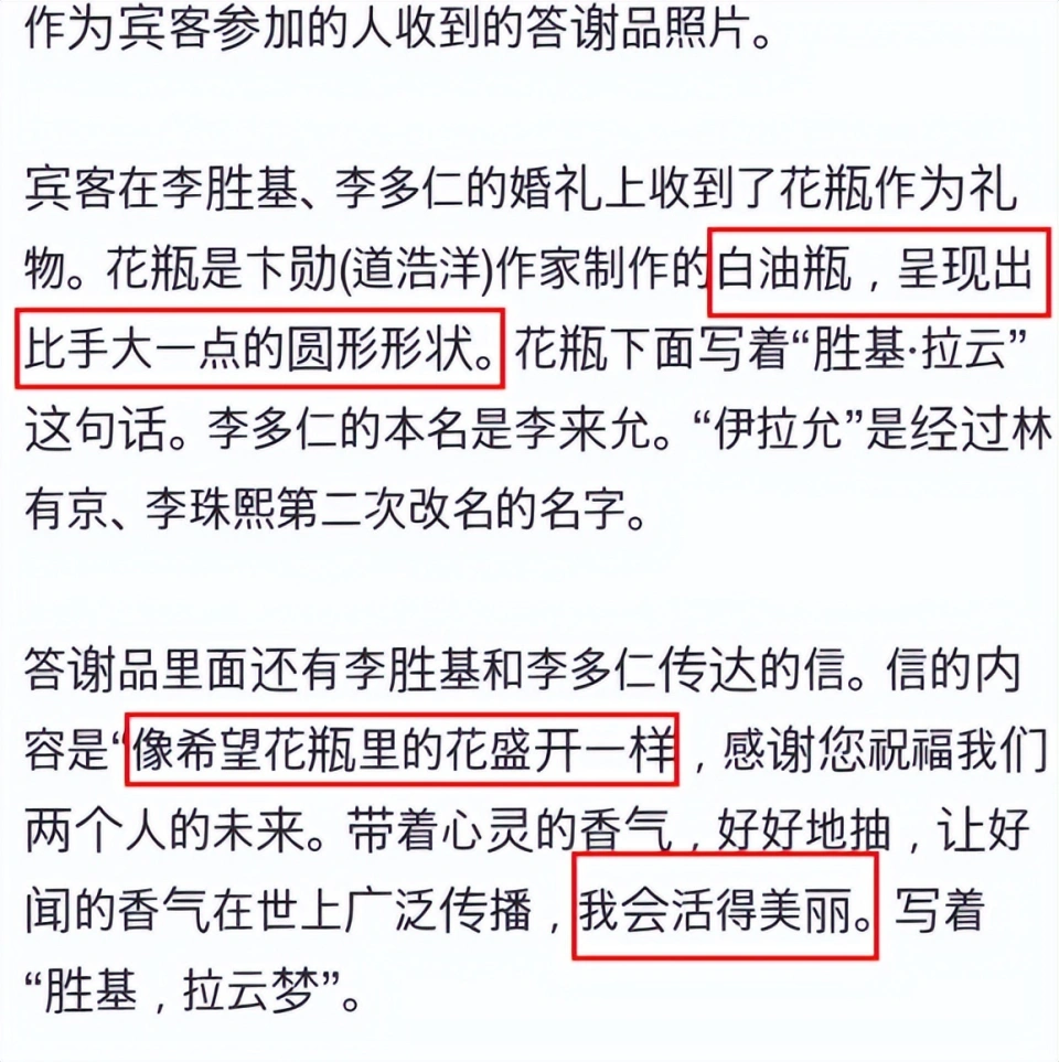 何超莲和窦骁的巴厘岛婚礼犹在面前,从大婚当日到妆奁、婚房,眼见着小一周时间已往了,新话题仍旧层出不穷,故意思的是,同时期韩网也在扒明星婚礼,同样在2023年4月完婚的李昇基、李多寅夫妻二人由于伴手礼曝光受到关注,直接引发全网热议。 不得不说,李昇基、李多寅的伴手礼选择有点难懂,从媒体到网友都体现难以明确。 一方面是由于花瓶自己代价不高,代价7万韩元,换算成人民币也就360元,这个价位的花瓶显着不具有收藏代价,另一方面也是由于花瓶很难携带又易碎,自己寓意就不太得当出如今婚礼场合,偏偏李昇基、李多寅送的白色花瓶外形还越看越奇怪,就像网友说的,似乎谁人骨灰坛哦…… 与花瓶一同赠予给婚礼来宾的,另有一封来自李昇基、李多寅这对新人的感谢信,内容大概表明确他们为什么会送来宾花瓶,只是再怎么用笔墨粉饰,也都不能掩饰花瓶自己代价不高且外形古怪的毕竟,多少有点寒酸吝啬了。 有媒体就直接提出了质疑。 要知道李昇基婚礼险些集齐了半个韩娱圈大咖,好比姜虎东、刘在石,李秀根等名主持,另有韩孝周、李栋旭、李洪基、李赫宰、曺圭贤等着名韩星,由于李昇基允许会募捐礼金,加入明星也都很大方,末了700多位来宾给了上亿礼金。 后续这份上亿礼金还引发了一次争议,如果礼金都募捐出去了,李昇基给来宾300多元的伴手礼,了局就还算得体,然而标题就出在韩网发现,李昇基上亿礼金是给了一个慈善机构,但这个慈善机构是他岳母到场运营的,难怪被猜疑是“左手倒右手”呢! 不但云云,李昇基婚礼上还一度出现了停顿5秒以上的珠宝展示画面,大概率是品牌赞助,就说他赞助都有了,还不舍得用赞助当伴手礼,送珠宝金饰总比送白花瓶科学吧?这对明星夫妻也是有点算计过头了。 ——实在根本上明星的婚礼都有赞助,但大多都会选择用赞助回馈来宾,如许又能做宣传又能省钱,是一箭双雕的事,不外拉赞助这事还得看内娱明星,韩国市场太小,玄彬级别的明星伴手礼都是千元款,但放在内娱千元单品就是底子款,各式伴手礼加起来至少两三千,和李昇基360元的伴手礼一比,分分钟就是十几倍的价差。 唐嫣、罗晋的伴手礼就代价6600元以上,包罗一条3000多元的钻石项链,喜糖的代价都和李昇基的花瓶差不多;韩庚、卢靖姗的伴手礼总代价固然不到三千块,但每样单价都不低,特殊还送了一瓶代价一千多的面霜。 张若昀、唐艺昕伴手礼采取了花朵元素,不外人家送的是代价1314元的永生花,不像李昇基,送个白花瓶,让来宾自己养花。 相比力之下,港台明星比内娱明星就质朴很多,但都比李昇基大方呢——婚礼被吐槽大抵的吴奇隆,娶刘诗诗的时间送出的伴手礼都有一盒850元的巧克力,比李昇基的花瓶贵一倍。 向佐娶郭碧婷,伴手礼一份近2000元,另有一个超千元的单品面霜,原来以为普平常通,但和李昇基一比就以为还不错了。 固然,这里也不优劣要明星在婚礼上花大钱,只是有句话叫“礼尚往来”,伴手礼代表新人对来宾的感谢和心意,李昇基如今就陷入了恶性循环的状态,由岳父诈骗开启的争议,到婚礼、蜜月、伴手礼……全部受到质疑。 之前杨幂也由于区别对待来宾给差异喜糖被吐槽,婚礼是喜事,伴手礼以小见大,这时间还给人一种琐屑比力、抠门寒酸的印象,总归会影响口碑嘛! 本文未经授权严禁转载违者必究! |