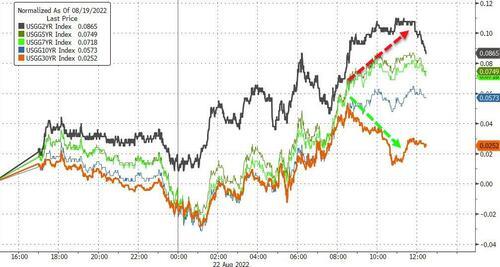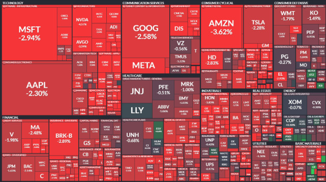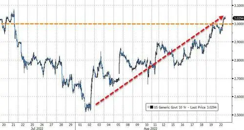 重要国家经济数据不佳。环球经济“金丝雀”预警,韩国8月出口靠近停滞。衡量欧元区恒久市场通胀预期的一个关键指标升至2.207%,至两个多月以来最高。分析人士预计周二公布、反映商业活动的欧元区采购司理人PMI指数大概也不甚乐观,将加剧对欧洲陷入阑珊的灰心预期。 西欧央行态度连续鹰派,明显压低风险偏好。上周多位美联储官员支持继承激进收紧钱币政策,德国央行行长称,纵然“欧洲火车头”经济阑珊的大概性越来越大,欧央行也必须继承加息以克制通胀。钱币市场对9月美联储大幅加息75个基点的概率提升至54.5%,上周还不敷五成。 美股齐创两个月最大跌幅,科技、可选斲丧和电信等利率敏感板块领跌,中概逆市跑赢8月22日周一,西欧股指深跌,美元飙升,部分由于投资者担心重要央行鹰派加息将削弱环球经济并引发阑珊,同时,欧洲面对的能源危急和通胀居高不下的风险令欧元兑美元跌破平价位。 美股大幅低开低走,开盘一小时便全线跌超1%。道指由开盘跌120点扩大至跌近520点,纳指和纳指100指数由开盘跌1.4%或超180点的跌幅扩大至逾2%。收盘前一小时美股跌幅扩大至全线跌超2%,终极收跌在日低附近,标普500指数一度有480只因素股下跌,仅有23只个股走高。 盘中,道指最深跌近700点并下逼3.3万点整数位,标普最深跌近百点或2.3%,失守4200点,纳指最深跌超350点或跌2.8%,纳指100最深跌超380点或跌2.9%,失守1.3万点。罗素小盘股最深跌2.3%。 “恐慌指数”VIX升15%并升破24,至8月3日以来的近三周最高。 制止收盘,美股均连跌两日且创约两个月来最大跌幅,标普大盘上周五曾止步四日连涨: 标普500指数收跌90.49点,跌幅2.14%,创6月16日以来最大单日跌幅,报4137.99点,至两周新低。道指收跌643.13点,跌幅1.91%,报33063.61点,也创6月16日来最大单日跌幅和两周低位。纳指收跌323.64点,跌幅2.55%,报12381.57点。纳斯达克100指数收跌2.66%,与纳指均创6月28日来最大跌幅。罗素2000小盘股收跌2.13%。 标普11个板块三军覆没,对利率政策敏感的信息技能、非必须斲丧品和通讯服务板块跌约2.7%体现最差,金融、房地产和工业板块跌约2%,能源板块跌超0.2%。 热门中概跑赢大盘。中概ETF KWEB涨1.3%,CQQQ微跌,纳斯达克金龙中国指数(HXC)涨1.2%,因素股唯品会收涨7.91%领跑。纳斯达克100四只成份股中,京东和网易涨超1%,拼多多涨4.7%,百度涨1.8%。其他个股中,阿里巴巴涨0.5%,腾讯ADR跌1.3%,B站涨2.7%。“造车三傻”中理想汽车涨超3%。 明星科技股齐跌。“元宇宙”Meta和微软跌近3%,均连跌五日并靠近回吐8月2日来全部涨幅。亚马逊跌3.6%,连跌两日并抹去7月29日来涨幅。苹果跌超2%,连跌三日至两周新低。奈飞跌超6%,回吐8月3日来全部涨幅。谷歌母公司Alphabet跌2.5%,靠近抹去7月28日来涨幅。特斯拉跌3.5%后收跌超2%,连跌五日至8月11日来最低。 消息面上,消息称亚马逊故意与CVS和UnitedHealth竞购家庭康健服务供应商Signify Health,后者最高飙升41%,收涨超32%至13个月新高。着名独立研究公司CFRA将奈飞评级从“持有”下调至“卖出”,称新的广告付费订阅套餐来岁才会成形,令其从7月中旬低点反弹近40%的趋势难以为继。特斯拉将在 9 月将 FSD 高级驾驶辅助软件提价25%,为三年里涨两倍。 芯片股也普跌。费城半导体指数跌超百点或跌3.7%,失守2900点整数位,连跌两日至7月25日来的一个月最低。英特尔跌超4%,革新五年低位,AMD跌超3%,靠近回吐7月28日来全部涨幅,英伟达跌4.6%至7月26日来最低。美光科技跌3.6%至7月11日来最低。 旅游股通盘走低,邮轮股和永利度假村跌近5%,航空股跌约3%。随着比特币一度失守2.1万美元,加密钱币干系个股齐跌,MicroStrategy和Riot Blockchain最深均跌约6%。 不外,由于沙特称OPEC+大概重新减产,国际油价在团体跌超4%后短线走高3美元,动员美股油气板块盘中快速拉升,埃克森美孚、雪佛龙石油等跌超1%后一度转涨。 散户抱团股团体大跌。AMC院线跌近42%,创2021年6月来最大跌幅,连跌四日至5月24日以来的三个月新低。3B家居跌超16%,连跌三日至8月5日来最低。游戏驿站跌超5%。上周刚上市且上周五大涨的GigaCloud盘中由涨29%转跌超35%并触发熔断,收跌近14%。 消息面上,竞争对手Cineworld告诫停业压低AMC股价,AMC上周以特殊股息发放的优先股APE周一开始生意业务,有分析师称现实上即是1比2拆股,通常诱发股价深跌,APE最深跌25%。标普将3B家居债务评级下调至CCC,上周五曾因大股东Ryan Cohen清仓而大跌逾40%。 其他变更较大的个股包罗: Zoom二季度收入逊于预期,称受美元走强的影响,下调整年业绩指引,盘后跌7%。 知恋人士称巴菲特旗下的伯克希尔哈撒韦公司现在不筹划全面收购西方石油,上周五涨近10%的西方石油跌5.6%后跌超3%,本年仍累涨近140%,远跑赢累跌11%的标普大盘体现。 辉瑞制药向美国食药监局FDA申请告急使用针对奥密克戎变异毒株BA.4和BA.5的新肺疫苗加强针,拟实用于12岁及以上人群。 辉瑞跌0.5%,其德国相助搭档BioNTech一度涨1.7%。 福特将在美国、加拿大和印度裁人3000人,包罗2000名受薪员工和1000名条约工,最深跌超6%,回吐月内涨幅,上周五曾因致命的撞车事故被陪审团裁决赔偿17亿美元。 欧股全线收跌。泛欧Stoxx 600指数跌0.96%至三周多新低,靠近抹去7月28日来全部涨幅,汽车股以3.9%的跌幅领跌,全部板块和重要国家股指齐跌,仅医疗保健股逆市上涨。富时泛欧绩优300指数跌超1%,欧元区STOXX 50指数跌2.6%,被阿迪达斯跌逾5%拖累