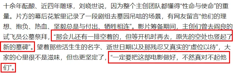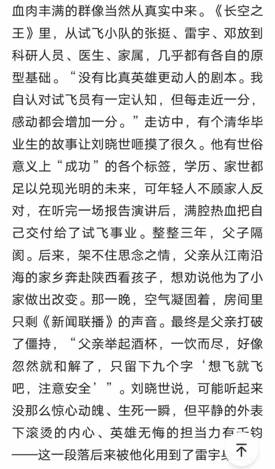 由刘晓世执导,王一博、胡军领衔主演,周冬雨特别主演的影戏《长空之王》定档4月28日,近来开启了首映宣传,日子恰好在中国航天日的前一天,可见专心。 在相识影戏口碑之前,想给各人看一段有关《长空之王》的幕后报道: 导演刘晓世在专访中提到,他在影片准备期间,去试飞员的公墓祭拜过,比及开机的时间剧组又一起去了墓园吊唁,发现原来有一排空着的地方,也都竖起了新的墓碑,影戏中也有场景显现。 《长空之王》的主角团是试飞员,即专门担当飞机飞行试验使命的飞机驾驶员,有关试飞员的先容中,有这么一句话:“试飞员必须具有熟练的驾驶技能、较高的理论水平和献身精神”,《长空之王》乐成将这句话具象化出现,打击力比笔墨更猛烈。 ——以凡人之躯寻衅机器极限,正是试飞员的浪漫与寻求。 首映竣事后,不少观众反馈本身说本身“哭崩了”,影戏后半段,也总有身边人反复拭泪,这种有笑有泪的口碑评价,似乎再难吸引观众,但是确实是现场观影的真实感受,能让观影人共情的影戏,一定有本身的独到之处,《长空之王》一部航空题材影戏,所展示的三大泪点,是让每个身处这片地皮上的平凡人都能了解到的感动。 家国情怀、父母亲情另有国之重器的震撼,三大泪点总有一处能让你鼻酸。 《长空之王》接纳循规蹈矩的方式,举行了情绪推进,没有会合式煽情,不经意间,演员的一个动作、一句台词;镜头的一个定格、一个转换,就能戳中民气田中最柔软的部门。 有人看过《长空之王》再看到飞机破空,会含泪,由于他知道了银翼划过天空那一刹时,有试飞员们的付出,和试飞员的家人们的忐忑期待。 有人看过《长空之王》再听到飞机轰鸣,会含泪,由于他知道了龙吟响彻云霄那一刹时,有试飞员的捐躯,和一代又一代航天人的服从对峙。 《长空之王》前半段,用一样平常细节让荧幕前的观众和每一个脚色都熟悉了起来,他们就像生存中会遇见的平凡人,像朋侪像同事,像能在街上擦肩而过的鲜活生命,随着故事发展,看着他们一个个站出来要求试新飞机,豪杰与平凡人在那一刻重叠——就像观众说的,他们是豪杰,也是儿子、父亲和爱人。 影戏中,针对胡军扮演的队长张挺的家庭描画,惆怅立体,几个情节就丰满了人设。 王一博扮演的男主角雷宇,他由飞行员转试飞员,导演刘晓世也提到,《长空之王》大巨微小的脚色,险些都有原型,但与其他有原型的影戏差别,整部影戏并没有会合一个原型陈诉,而是驻足于每个原型的感动之处。 雷宇这个脚色,就化用了一位清华结业生的履历——掉臂家人反对,放弃学历和家世光环,一场陈诉演讲,就让一个天之骄子毅然决然投身试飞行业,导致了长达三年时间的父子隔阂,父子二人再见面,是从江南到陕西的高出了几千公里的思子之情,父亲心底是期盼儿子回到身边的惦记,但开口却是:“想飞就飞吧,留意安全”。 固然,假如《长空之王》只陈诉各人和小家的故事,难免落入俗套,以是别忘了第三个泪点,也是《长空之王》最大的亮点之一,痛惜偏偏很难用笔墨形貌——说工业化,以为枯燥;谈国之重器,又以为笼统;聊技能发展,照旧以为不敷触动。 末了只能说,《长空之王》的殊效画面与飞行场景展示,极其恰当大荧幕观看,实现了大概引发生理性堕泪的视听结果——有笑有泪,不是说说而已。 本文未经授权严禁转载违者必究! |
