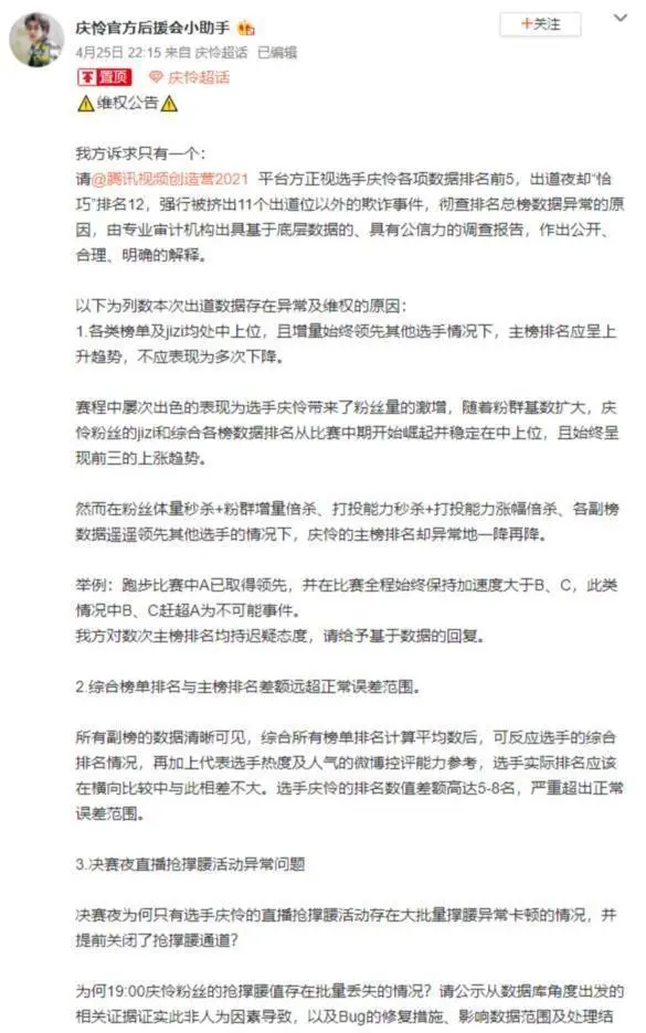 文/紫依 当认识的旋律响起时,全部秀粉们直接把思绪拉回成团的谁人夜晚。 那些年,通过选秀节目脱颖而出,那些为空想而积极的男孩和女孩,他们创建的限定团,现在已经逐一遣散。 4月25日,内娱末了一个限定团INTO1公布遣散,至此,内娱的选秀团已经全部遣散了。 在选秀节目停息的日子里,人们是吊唁,照旧光荣? 从《创造营101》和《芳华有你》两档节目中,成团的有THE9、硬糖少女303、NINEPERCENT、INTO1、R1SE、IXFORM、火箭少女101、UNINE、 SKY天空少年、BlackACE,这么多的限定团,那么多的俊男玉人,现在都开始自谋出路,开始在娱乐圈里的奋斗了。 其时间调回到2021年,选秀节目被告急喊停的时候。 末了一年的选秀季,一点都不平常。 由于闹得沸沸扬扬的“倒奶打投”变乱,不绝是娱乐圈香饽饽的选秀节目,一度被推上了风口浪尖上。 《芳华有你3》的烂尾,成为无数秀粉们心中的痛。 毕竟,那是他们真金白银费钱,多个日日夜夜,熬夜打投,辛辛劳苦做数据,想要助力自己心仪的爱豆出圈,效果,统统都白废了。 再加上爱豆粉丝的集资题目,也面对着史无前例的质疑,就连其时胜利成团的《创造营101》,也就是现在的INTO1也难逃非难,不少网友直接质疑节目标排名有题目。 恶意打投,选手资质和配景有题目,粉丝集资却付之东流的变乱,这统统,都让原来纯粹的选秀节目,变得布满争议。 我们不禁想问,内娱的选秀节目,毕竟是选拔人才的渠道,照旧割韭菜的镰刀? (1)10几年前的选秀和现在的选秀,早已不能等量齐观10几年前,《超等女声》作为选秀鼻祖,一连几届为内娱贡献了气力强劲的歌手。 不管是张靓颖,李宇春,周笔畅,照旧谭维维等,她们现在依然生动在乐坛,为我们带来丰富且质量高的作品,换句话说,他们的气力不容置喙。 包罗男生版选秀节目《快乐男声》,张杰、魏晨、华晨宇等等,就连迩来借着《快乐再出发》翻红的过气男团再就业,都给我们奉献不少梗。 这些固然也是选秀节目,但至少选手们都非常恭敬舞台,岂论是冠军,照旧前10强的选手,每个人都很有影象点,拥有着不错的气力。 因而它们一度作为娱乐圈的“黄埔军校”,给文娱圈保送了像李宇春,张靓颖、张杰等长红的歌手。 可再看看现在的选秀舞台? 不少爱豆反复爆出假唱丑闻,舞蹈划水,一脸被迫休业的样子,可就这,尚有人说他独树一帜,不走寻常路,拥有一大批粉丝。 更有甚者,作为爱豆爱情史不清不楚,有的三观还不正,一点没有作为爱豆的自发性。 但就算如许,也照旧有一大批粉丝乐意跟随你,洗白你,只需你有流量,让他们以为自己可以或许靠自身气力推出一名爱豆。 总有老戏骨说,怪不得现在有一大批人挤破头脑想进文娱圈,是由于门槛真的是太低了。 关于内娱的选秀节目,张艺兴有一句话说得很好,“好苗子都被选完了。” 这范例的节目,之前年复一年的大操大办,阵容浩荡,到底是真的为了让具有艺术抱负的孩子,提供一个展示技能的舞台? 照旧平台和商家一起相助,定期收割以青少年群体为主的“秀粉”的钱包呢? 我们不得而知。 (2)黑幕反复爆出,公信力降落先不说谁人引起热议的倒牛奶变乱了,一群老爷爷、老奶奶围坐在一起,将一瓶瓶极新的牛奶拆封后,逐一倒进了脏乱的沟内里。 而这些牛奶,只是粉丝购买用来打投爱豆的物品。 数据上来了,牛奶就没须要存在了,于是他们便费钱雇人专门倒掉。 在贫富差距云云之大的中国,他们花着真金白银买牛奶又倒掉,可多少深山里的孩子,大概长这么大,都没有机遇喝到牛奶。 双方一对比,视频流出后,社会反响热烈,如许的浪费举动不值得提倡,哪怕把他们捐给慈善机构,让边远地域的孩子们喝到牛奶,也算是做善事啊! 再好比,加入选秀的选手,不绝爆出各种大雷。 有人的父母放下公司涉黄涉毒,有人父母是老赖,本人却不绝炫富,高斲丧等,乃至选手加入的资质稽核不清,对其他选手造成不公平竞争等等。 再加上这些年选出来的限定团,不乏有良好的,但是塌房也非常严峻。 好比RISE在遣散前,团里的小同伴就因抄袭、不当言论、私生存欠好,在团就谈爱情等题目,逐一塌房。 更别说,粉丝质疑排名数据的公证性了。 《创造营101》中的人气学员,好比庆怜、奥斯卡、甘望星、井汲大翔未能出道,简直成为全网的意难平。 于是乎,在节目竣事成团后,庆怜的粉丝后盾会就向节目组发起维权。 粉丝以为,庆怜各方面的数据都在出道位,他们也经心努力集资打投,但终极只能卡位。 只不外,如许的维权,根本没人剖析,成了没人在意的笑话。 而甘望星的后盾会,则被粉丝告状,某电视台报道了“粉丝集资700多万,偶像却未能出道”的消息,粉丝质疑后盾会有“海景房。 后续,后盾会出示了干系的资金运用明细,但效果着实差能人意。 尚有粉丝在担当采访时透露,后盾会用PUA的话术敦促粉丝,“什么本日不打钱,你家哥哥就在家待,什么永久都看不到他了”。 于是,粉丝们为了偶像可以恒久地拥有更好的资源,不时地给后盾会打钱。 固然之后,甘望星后盾会在官方账号上发布了赛时的全部账目明细,并表现每笔明细及流水均可查询,大公至正问心有愧,但这个过程仍引起广泛关注。 结语国内的选秀文化短暂鼓起后,又快速地闭幕了。 而成团的偶像们,背后有大公司支持的,现在发展得风生水起,好比刘雨昕、虞书欣、杨逾越等等,她们不光唱跳,有的还开始反复触影,留下不少影视作品。 可以
