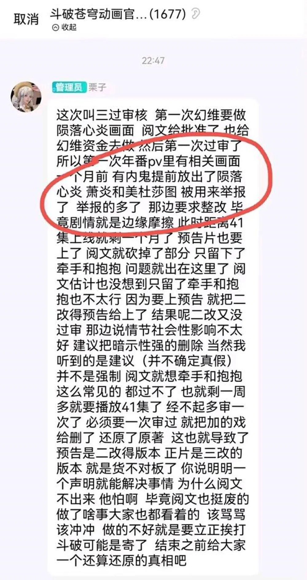 哈喽,各人好,我是木子。 在履历了美杜莎女王剧情被删减变乱之后,《斗破苍穹》年番成为了不少网友声讨的对象,乃至尚有不少网友怒骂官方卖弄宣传诱骗观众。眼看着这件变乱越闹越大,现在又有一个声音出现了,在这个声音内里爆出了美杜莎女王剧情被删减的缘故原由,那么接下来就跟着木子一起来看看吧。 斗破苍穹爆出删减缘故原由,履历三次稽核起首我们先来说一下这则消息的出处,根据网友放出的截图来看,这则消息是来自于《斗破苍穹》动画官方粉丝群内里的谈天信息。一样寻常来说这种信息的可信度照旧很高的,毕竟这也算是一种官方渠道,而且管理员和群主大部分都是内部职员,以是他们给出的消息和谍报也都比力可靠。 根据管理员的爆料信息来看,《斗破苍穹》年番在制作这段剧情的时间履历了不少的崎岖,起首第一次做的时间阅文允许了,然后幻维数码也做出来了,但是厥后由于有些内鬼放出了部分预告画面,因此遭到了一些网友的恶意举报,末了阅文砍掉了一部分,只留下了牵手和公主抱等画面。 然而哪怕是牵手和公主抱也很伤害,由于稽核那里给出的发起是将这些暗示性强的内容都给删掉,固然说这里是发起不是逼迫,但是现在已经没偶然间再去提交稽核,由于现在已经履历了三次稽核,以柿攴斧阅文只能决定全删了,否则送交稽核的时间根本赶不上动漫播出的时间。 从这里可以看出一个标题,那就是稽核才是这次删减的重要缘故原由,由于举报导致官方再次提交稽核,然后又由于稽核的发起举行了修改,末了也是由于稽核的时间不敷只能是全部删除。不外这毕竟只是官方的表明,到底是不是如许还不得而知,不外这个表明在木子看来照旧比力公道。 举报导致被迫多次删减从这次爆出的删减缘故原由来看,罪魁罪魁可以说就是那些举报的人,正是由于这些人的举报导致官方不得不多次举行删减,末了为了过审不得不选择了全部删除。假如没有这些举报的话,大概美杜莎女王的剧情可以完备地放出来,然而现在却是连牵手和公主抱如许的剧情都无法放出来。 关于举报的变乱实在之前木子就有所耳闻,当时有不少网友扬言举报《斗破苍穹》动漫宣传QJ等违法剧情,因此不少网友举报了这部动漫作品。早先木子以为只是一些比力偏激的云韵粉丝看不惯美杜莎女王才会恶意举报,现在看来这件变乱的影响非常恶劣,现在已经影响到了正片。 而且官方也是表明了预告有正片没有的缘故原由,这就和小视频和视频的稽核机制差别有关,小视频的稽核比力简单,正片的稽核则是必要更多的时间。如许的话齐备也就表明通了,从放出预告到全部删减,齐备都是从举报开始,由于举报导致修改,终极时间不敷只能全部删除。 各位小搭档们你们怎么对待这次《斗破苍穹》年番删减的变乱呢?你们对于这个表明怎么看恩?接待各人一起来讨论。 我是木子,一个喜好动漫的二次元宅,关注木子相识更多动漫资讯。【文/木子】 |