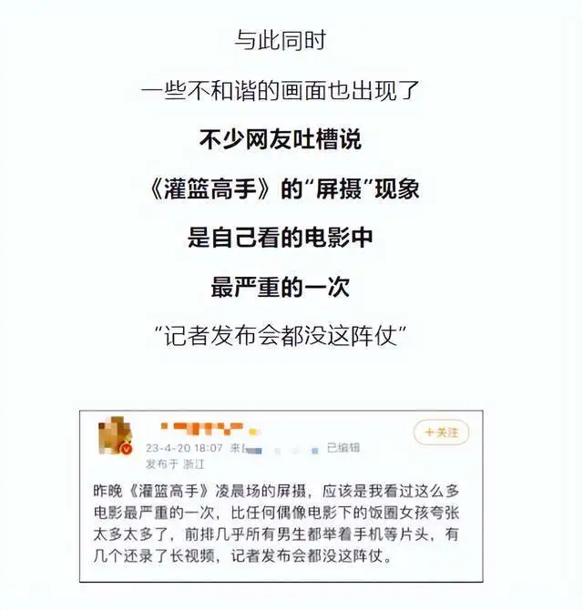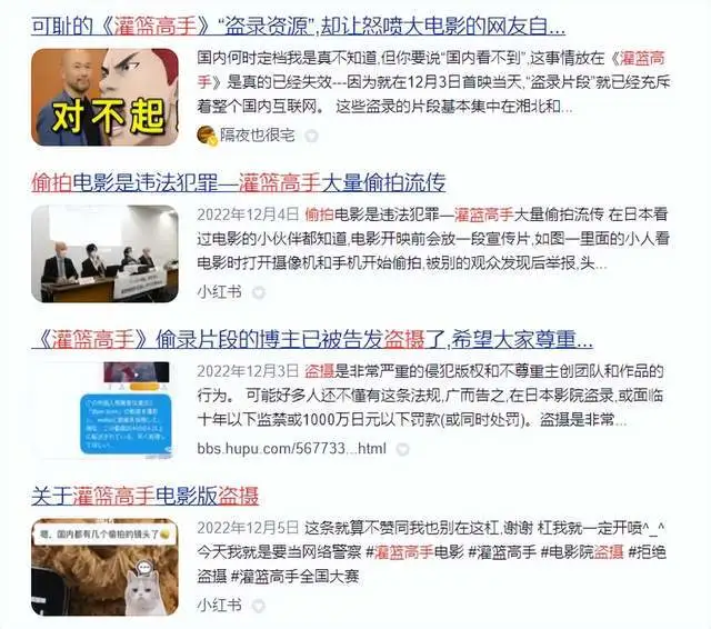 要说4月下旬以来热度最高的事故,那肯定是影戏《灌篮高手》在本地上映这件事。 从4月20日上映至今险些每天霸榜热搜榜,如23日和24日这两天就至少有“灌篮高手我来考考你”、“如果灌篮高手真人版长如许”、“扮樱木花道却成为赤木刚宪”等等热搜话题的刷屏。 说实话,要不是我熟悉《灌篮高手》,我还以为这又是哪一群顶流小鲜肉的综艺和影戏呢。 是的,《灌篮高手》这把火是一个名为“情怀”的事物所燃起的,而在已往几天时间中,我们是看到了各种“炫情怀”的操纵。如在20日破晓首映场开始前,就有网友用AI绘画创作了一系列“中老年人在影戏院欢呼唤嚣”的图画作品,座位上的观众各个脸布褶皱、毛发希罕、牙齿也都根本掉光光了... 如上创作确实有肯定的浮夸身分,但回到现实,这种浮夸又似乎没有半点儿的哗众取宠,而只是对观众热情的歌颂而已---没有哪一场放映不能看到几个地中海大叔,哪怕是腿伤至一瘸一瘸,观众也还是按捺不住观影的热情。 固然,高关注度天然也会带来斐然的票房结果。至今该作上映还不到5天,但票房已然靠近4亿,猜测票房也到达了8亿上下。 与此同时,在票房一起走高的这阵子,网络各处也掀起了一场前所未见的“屏摄”活动---说是活动,但这是去中央化的,没有任何的构造者,它是群众自觉产生的。 无论是微博还是某红书。 亦大概是每家每户的朋侪圈,我们都总能看到影迷对影戏画面的拍摄,要么就是开场时的湘北五虎将的好坏画面、要么就是剧中出现的一系列经典和风趣的场景,如“世纪击掌”和“晴子变胖”等等。 总之是怎么情怀就怎么来,包罗对晴子的揶揄,实在也执偾一种“芳华逝去,中年发胖”的感慨而已。 是的,雷同的“屏摄”征象,固然也在别的影戏发生过,但这次的影戏《灌篮高手》还是将此征象带向了征象级。如着名的观察者网就曾发文怒斥过“这是最严厉的一次”。 那为何必要愤怒呢?答案是显而易见的:由于不管照相还是录视频,都通通是对影戏版权方的权益侵占,故屏摄也有另一个比力贬义的叫法“盗摄”。 究竟上有关注影戏《灌篮高手》的朋侪应该知道“盗摄”的情况并不是近期才出现的,早在客岁底的时间就可见情况的严厉。 客岁12月3日影戏《灌篮高手》正式在日本上映,而这部被漫迷等待了20多年的续作的上映也引发了无数的骚操纵,如有许多在日本生存且抢到了首映场的国人同胞都按捺不住掏手机录像的激动,且在观影事后将影片上传到网络,而就在3日当天相干盗摄视频还一度刷屏本地的外交平台。 乃至还能在某二手交易业务平台和某多多上看到贩卖盗摄片断的商家,听说有许多是诱骗性子的,他们只是打着“枪版资源”来兜售在网络热传的“盗摄片断”而已。 云云情况在已往是从未发生过的。贩卖枪版资源的商家是不停都存在,但真没见过哪部影戏能被云云广泛的传播盗摄片断---究竟这本身就是违法的活动,而违法就代表着不但彩。但究竟也告诉我们,这次由《灌篮高手》带来的情怀打击,是真将齐备的丢脸顾虑都给抹平了。 同时,由于有了在日本上映的前车可鉴,以及在客岁12月尾就明确过国人同胞对《灌篮高手》那饥渴且贪心的情怀热情。于是在4月20日在本地上映的时间,影戏方便发布了细致的“倡议书”:下令影迷可以或许理性看片,不要采取任何的录屏本事,要将热泪盈眶的芳华热血,身临其境的超燃感觉,通通留在大银幕上体验... 固然,结果我们都知道,倡议归倡议,现实观众那是怎么随意就怎么来了。 而鉴于影迷豪情在连日来的居高不下,以及盗摄活动已经发展至有点失控了,在4月23日下战书的时间权势巨子官媒“央视网”也发布了一篇糅合讥讽和怒斥于一体的文章《我在朋侪圈,把<灌篮高手>看完了》。 在文章中央视先是梳理了此次影戏《灌篮高手》盗摄征象的严厉,将其称作为“史上最严厉的一次”,就连“记者发布会都没这阵仗”。 同时央视也搬出了曾在自家栏目《本日影评》中约请曾雯雯状师说过的一段话:“《影戏财产促进法》第三十一条明确规定未经权利人允许,任何人不得对正在放映的影戏举行灌音录像,发现举行灌音录像的,影戏院工作职员有权予以克制并要求其删除,对拒不平从的有权要求其离场”,来对网友举行普法和品评。 事变能发展到这个田地就特别耐人寻味了。 从一方面来说,盗摄是实打实的违规违法活动。但从另一个方面来说,这种活动的背后又是有着可被明确的地方的---在此次影戏《灌篮高手》的盗摄事故中,法律和规则不再是“非黑即白”,而似乎酿成了一种灰色。 就像在央视的文章中就提到过两个焦点体贴点。一个是所谓的“主动加入感”,央媒采访了不少观众,而这些人也意见划一地予以了盗摄的明确,并异口同声地说出了背后的一大推动力---想要用录制来解释本身的加入。 尚有一个体贴点则是“拍同款”。依据央媒观察,究竟上有不少盗摄的影迷都明确表现过“知道许多盗摄的场景,其着实预报片都出现过”,即他们的盗摄活动实在就是一种“用低质量照片,取代高质量预报片截图”的反向操纵。 但“拍同款”的精粹就在于:不寻求媲美原作,而是用本身的方式来模仿。从本质上来说,拍同款实在也是一种对主动加入的寻求。 上图是预报片,下图为网友发布的部分盗摄片断... 从肯定意义上来说,也正是由于相干执法