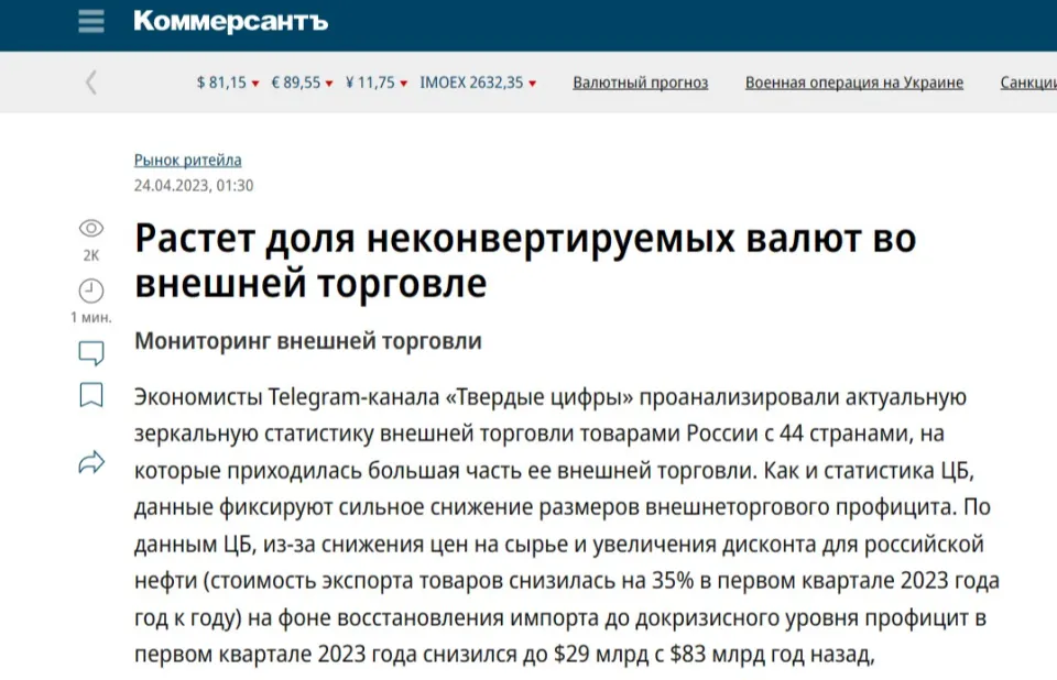 4月14日的俄罗斯《交易人报》报道说,迩来俄罗斯电报频道“硬数字”的经济学家,分析了现在俄罗斯与44个国家的货品外贸的镜像统计数据,这些国家占俄罗斯对外商业的大部分。“硬数字”的经济学家在研究陈诉中披露,与中央银行的统计数据一样,他们的研究发现,外贸顺差规模的大幅降落。 根据中央银行的数据,由于大宗商品代价下跌和俄罗斯石油扣头增长,2023年第一季度商品出口代价同比降落35%。在入口规复到危急前程度的配景下,2023年第一季度的收支口盈余从一年前的830亿美元降至290亿美元,大幅度镌汰了65%,靠近三分之二。根据硬数字电报频道的分析陈诉,商业顺差的国家数目也从一年前的37个镌汰到31个。 陈诉称,通过收支口额盘算出的一个告急观察结果是,2023 年 2 月,印度在总顺差中占最大份额,为当月俄罗斯的货品商业顺差中提供了 32%——即在290亿美元的总顺差中提供了92.8亿美元。 一样平常来说,拥有商业顺差就 会带来雷同规模的外汇收入。但令人头疼的标题出现了:在顺差不停累积的条件下,俄罗斯出口商贩卖的外汇收入反而镌汰了。这是由于因对乌战争被西方制裁之后,俄罗斯与印度、中国等友爱国家推行了收支口本币结算机制,可自由兑换货币从外贸结算中被代替。但我们与这些国家通过商业顺差积累的外国货币,好比卢比、人民币,都具有不可兑换性。 根据俄罗斯中央银行的数据,到 2022 年底,美元和欧元在商业结算中的份额在俄罗斯从前苏联独立出来的汗青上初次不到一半。 在 2023 年 1 月呆板和装备入口代价同比降落 6.3% 的配景下,我们的本币结算机制用印度卢比、土耳其里拉和人民币填满了出口商的账户。 入口的车辆增长26.6%,服装增长13.7%。在此配景下,在未经版权全部者答应向俄罗斯联邦出口和贩卖商品增长的配景下(平行入口),同期欧盟在俄罗斯商品入口中的份额从31%降落到16.3%,中国的份额从29.8%增长到34.6%,土耳其的份额分别从1.7%增长到4.5%,独联体国家的份额从3.6%增长到6.5%,印度的份额为1.2%,与一年前稳固。 陪伴着本币结算的连续,纵然商品商业仍旧存在顺差,但俄罗斯外汇收入的降落显然将继承下去。这已经导致俄罗斯入口商越来越多的抱怨和不满。由于结存下来的那些友爱国家的货币,只能用于从货币发行国购买商品,但俄罗斯须要的商品,他们通常并不生产,固然也无法向俄罗斯提供。而非友爱国家的货币,才被俄罗斯人称之为“外汇”,由于西方货币可以很轻易地在恣意国家入口俄罗斯所须要的商品。 友爱国家的货币结存越来越多,也和俄罗斯使用平行入口模式来突破西方的商品封锁存在严峻辩论。现在G7和欧盟正在讨论全面克制向俄罗斯出口和过境货品,涉及到的商品约莫占2023年2月俄罗斯入口总额的18%左右。本来这部分可以按照以往的平行入口模式来获取,只不外代价要贵三分之一,采购时间须要增长3-5周。但按照以往平行入口的履历,这类中转商百分之百要求提供欧元、美元或英镑,这对严峻萎缩的俄罗斯外汇收入而言,将构成严厉的磨练。 假如不能与友爱国家商量压缩本币结算比例,增长一部分国际货币结算业务,恐怕卢布汇率将由于西方货币的匮乏而出现连续性的大幅度贬值,这将动摇俄罗斯的经济稳固。 【作者:徐三郎】 |