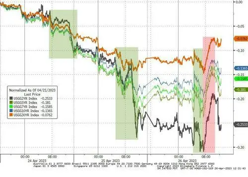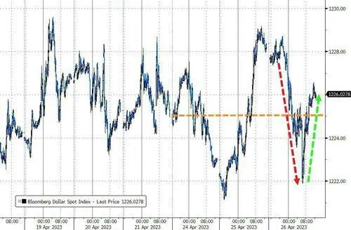 美国第一共和银行本周财报重新引燃对银行业稳固性的担心,但云与AI科技巨头微软财报利好提振纳指盘初涨超1%,“元宇宙” Meta一季报和二季度预测好于预期,盘后涨超12%。 期货市场对下周美联储加息25个基点的押注从几天前的90%降至77%,仍属于“板上钉钉”,对6月继续加息25个基点的押注从8%升至18%,年底之前多次降息仍为主流预期。 美国3月耐用品订单环比初值增3.2%,远超预期的增幅0.7%,暗示经济有韧性。但扣除飞机的非国防资源耐用品订单环比初值降落0.4%,连降两个月且降幅超预期,这表明更高的借贷本钱和不清朗的经济远景正在克制资源投资,令美元指数下行。 摩根大通固收部门首席投资官Bob Michele预计,美联储将从9月开始降息,由于经济数据表现美国正迈向阑珊。当前美联储的紧缩周期尚未竣事,5月将再举行一次“不须要”的加息。 投资者将下周欧央行鹰派加息50个基点的大概性从约30%下调至20%,上调加息25个基点的概率,以为欧元区利率在9月见顶且峰值利率3.69%低于一周前的预期。 道指跌近230点,与标普齐创附近新低,Meta财报利好盘后涨12%,第一共和银行跌30%4月26日周三,受微软财报利好的提振,美股团体高开,纳指盘初便涨超1%。开盘不到一小时,道指抹去115点的涨幅转跌,标普500指数随后也转跌,道指最深跌170点。 午盘时美股反弹,标普大盘重新转涨并升至日高,最高涨0.4%,纳指也革新日高并涨1.4%,道指和此前跌0.6%的罗素小盘股均短暂转涨。 尾盘时,美国第一共和银行的负面消息频出,除纳指外的美股重要指数重新转跌并收于日低附近,纳指涨幅显着收窄。 道指连跌两日至3月31日来最低,标普连跌两日至3月30日来最低,均创近附近低位,罗素小盘股创3月23日来最低,但纳指和纳指100脱离3月28日以来最低: 标普500指数收跌15.64点,跌幅0.38%,报4055.99点。道指收跌228.96点,跌幅0.68%,报33301.87点。纳指收涨55.19点,涨幅0.47%,报11854.35点。纳指100涨0.6%,罗素2000跌0.9%。 标普11个板块普跌,仅科技板块涨1.7%“佼佼不群”。公用古迹板块跌2.4%,工业、医疗保健、能源、原质料跌幅介于1.87%-1.18%,金融跌近1%,可选消耗板块跌0.38%跌幅最小。 明星科技股涨跌不一。 “元宇宙”Meta涨近1%,止步七日连跌、脱离近附近新低,由于一季报和二季度预测好于预期,盘后涨超12%。苹果涨近1%后微跌,再创两周新低。周四公布财报的亚马逊涨超2%,奈飞转跌0.4%至五周最低。微软涨超7%至一年新高,但同样财报利好的谷歌A涨2.4%后转跌0.1%,革新月内低位。特斯拉跌超4%,再创三个月最低,市值跌破5000亿美元。 消息面上,市场看好微软的云收入增长、AI远景和第二季度收入指引乐观,连带提拔了对亚马逊云收入的预期,后者周三起在云盘算和人力资源部门裁人。谷歌一季度营收和收入超预期并公布700亿美元股票回购,但焦点广告收入同比下滑。Jefferies取消对特斯拉的“买入”评级,称贬价推动销量增长的计谋或有损利润率,“持有”评级下的目标价从230美元下调至185美元。 芯片股尾盘涨幅收窄。昨日跌超3%的费城半导体指数转涨0.6%,脱离两个月新低。AMD涨2.6%脱离六周低位,英特尔涨0.6%,止步六日连跌,与涨近3%的英伟达均脱离五周最低。 AI概念股反弹。C3.ai抹去超3%的涨幅,止步六日连跌但倘佯三个月最低。SoundHound.ai涨4%,脱离月内新低。BigBear.ai涨近19%,止步六日连跌,脱离三周新低,根本收复上周四以来跌幅。 热门中概强势跑赢。中概ETF KWEB涨超2%,CQQQ涨超1%,纳斯达克金龙中国指数(HXC)涨1%脱离五个月最低。纳斯达克100四只成份股中,京东和网易涨1.6%,拼多多涨近1%,百度靠近抹去3%的涨幅。其他个股中,阿里巴巴涨2.8%后转跌,腾讯ADR涨近4%,B站涨3%,蔚来汽车跌近3%,小鹏汽车涨近4%,抱负汽车涨近2%。 大型银行股表现不佳。行业基准费城证交所KBW银行指数(BKX)跌超1%,连跌五日至近五周最低。KBW纳斯达克地区银行指数(KRX)涨超1%,SPDR标普地区银行ETF(KRE)涨0.6%,均止步四日连跌,昨日均跌约4%并创2020年11月以来最低。 “美国四大行”中,摩根大通、富国银行和花旗团体均跌约2%。地区银行中,西平静洋合众银行(PacWest Bancorp)一度涨超17%至五周最高,收涨超7%周内仍累跌,一季度存款流失逾16%,但3月20日至今的一个月里存款净流入。 因一季度存款锐减四成而股价腰斩的美国第一共和银行最深跌超41%,收跌近30%再创汗青新低,盘中数次熔断交易业务,市值一度跌穿10亿美元。媒体称美国当局不愿脱手干预接济,市场担心该行很快倒闭,除了思量变卖高达1000亿美元资产,还大概增发股票。最新报道称,美国联邦存款保险公司FDIC威胁下调该行评级,将限定第一共和银行从美联储取得融资的渠道。 其他变更较大的个股包罗: 视频游戏发行商动视暴雪跌超11%,至两个月最低,英国反把持羁系机构克制微软收购该公司,称会克制云游戏范畴的竞争,微软将上诉。动视暴雪一季度净预订额利好,月活用户数逊于预期。 进军电动汽车充电范畴的美国光伏逆变器公司Enphase Energy跌近26%至11个月最低,创2020年6月来最大跌幅,一季度营收和红利超预期,但二季度收入指引不佳。美国银行下调评级至“卖出”,摩根大通、德银等诸多投行低沉目标股价。竞争对手Solaredge Technologies 跌超10%。 波音涨近5%后收涨0.4%,预计本年仍将交付400至450架飞机,飞机需求强劲和交付速率加速,令一季度收入同比增28%、净亏损收窄,本年会增长737 Max和787空想客机的月产量