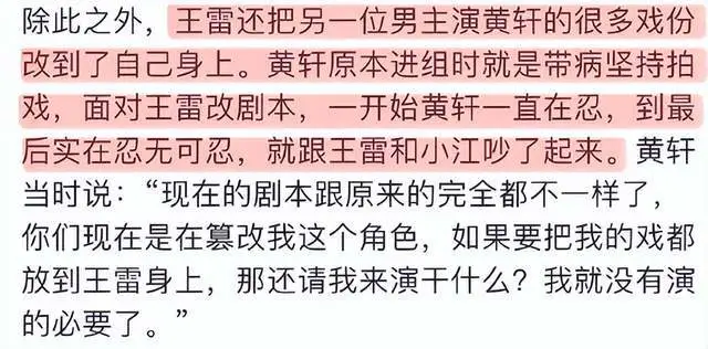 北京时间4月27日,根据着名记者超能照相阳阳透露,一位大导演正在筹拍一部电视剧,而剧中的两位主演黄轩与王雷由于戏份和剧情之间的标题大吵一架,以致导致黄轩直接罢演。现在黄轩方面及时出来回应,表明没有从剧组中罢演,但并未给出更多的消息。 根据黄轩交际媒体回应的图文来看,黄轩给各人晒出来了他在这个电视剧剧组当中的排班表,可以清楚望见黄轩照旧在剧组内里有拍戏的。同时黄轩也晒出了一些剧组的内部照片,可以望见是一群身穿戏服的人正在苏息,而黄轩更是直接配文拍戏ing,又是繁忙的一天。 可以说黄轩方面的回应已经让之前阳阳的消息不攻自破了,只管王雷方面还没有给出消息,不外从这一点我们也可以看得出来这个剧组现在的环境照旧比力寂静的。固然按照阳阳之前爆料的环境来看,就算有辟谣也不代表变乱没有发生过,而现在这个剧组的环境仍旧值得各人关注。 阳阳给出的消息表现王雷和黄轩两人重要是由于戏份的标题而在片场吵了起来,听说王雷作为本剧的男一号,他不但在片酬方面要比正常的生存高出三分之一,而且剧组还给到很多特权王雷,导致他在拍戏的过程中不绝修改本身脚色的戏份,疯狂给本身加戏。 以致另有知情人士透露王雷在拍戏的时间是直接将编剧带在身边改脚本,由于王雷和本剧的制片人曲吉小江的关系很好,这也导致王雷在剧组的职位更高。他们以致连合起来一起倾轧剧组当中的小导演闫宇彤,终极就导致了后续的种种变乱发生。 作为这部剧当中的别的一个男主演,黄轩从根本上来说在剧组中的职位着实应该要比王雷只差一点,大概说两个人原来应该是划一的。然而由于王雷反复修改脚本,将很多原来属于黄轩的戏份加在了本身身上,以是才引发了黄轩的罢演。 变乱的来龙去脉大概就是云云,很多人看完这些爆料之后也都以为王雷确实是存在这种戏霸的环境,由于这已经不是王雷第一次被曝光存在这些标题了。而现在在这么多证据的环境下,王雷戏霸的名头再一次被坐实,这也真的很耐人寻味。 即便现在黄轩片面的发声辟谣也并不代表什么,毕竟除了这些消息的爆料之外,也有人晒出来关于小导演闫宇彤的朋侪圈照片,指出闫宇彤受到倾轧已经脱离剧组了。那么在这么多的证据眼前,黄轩这么简单的回应确实是不敷分量。 不外按照黄轩和王雷现在的环境来看,他们就算之前已经发作过抵牾,现在应该也已经和洽了,两人至少可以对峙将这部剧拍完。这部剧早前已经颠末了多次宣传,而且宣传力度还不小,作为一部主旋律电视剧,肯定可以得到不少人的喜欢。 假如说现在由于王雷和黄轩的抵牾导致这部剧被腰斩,那不管是导演照旧制片人方面都不会答应的,投资方更加是会非常生气。由于在这种环境下,就算黄轩和王雷面和心反面,信托他们也只能选择将这部戏拍完再说了。 |