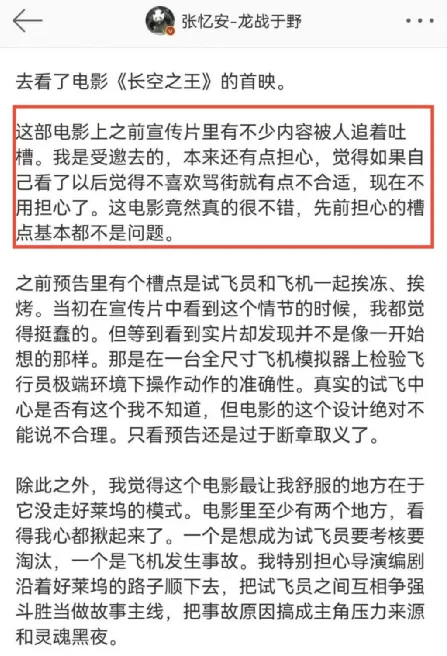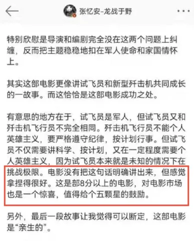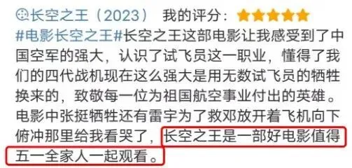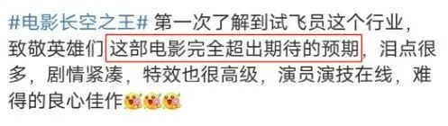 固然另有一天才公映,但是随着首映礼和各地路演的睁开,不得不说,《长空之王》是真的火。就连我的朋侪圈,也有不少朋侪对其赞誉有加。 影片的预售票房更是直线上升,已经突破了近5年五一档新片的预售票房记载,上映前突破一亿元大关。 但是信赖有不少朋侪和我一样,一开始对这部影戏并不抱多少等待,以为这就是一部平平无奇的流水线工业片,但是看完影戏后,我想说我错了,这部影戏不但画面炸裂,而且能让人又哭又笑,远超预期! 就连之前“吐槽”过影戏的军事迷,也在看完影戏后表现被“打脸”了,给影戏打了五星。 起首作为一部航空片而言,《长空之王》绝对是良好之作。 影戏围绕着战机和战机背后的人两个角度睁开。 一方面,它经心努力地向观众显现中国空军开始进的各种战斗机,包罗了歼-10、歼-16、歼-20等多种机型,让人直观地感受到了我国空中力气的强大。 而且影戏中的这些战斗机并非模子,而是真逼真切的真战机,这就为影片的质感上了一层保险,更添几分震撼。要知道,这但是一部让歼-20的真机出如今镜头里的贸易大片。 另一方面,影片除了显现国防硬气力外,也显现了国防的软气力,也就是影戏的主角试飞员们。 这个名字对于很多人而言是生疏的,由于他们属于小兵种,天下200多万现役解放军中,试飞员仅有100余人。 人数少并不是由于他们不告急,而是由于门槛高。 试飞员的重要任务是对新战机举行全方位的性能测试,这就要求试飞员们不但要具备飞行员高超的战机驾驶技能,同时也要求他们对战斗机有着深刻的相识,才气在测试过程中出现题目时找到根结地点,将其反馈给战斗机的计划师和工程师。 试飞员这份工作也被称为是“刀尖上的舞者”,由于他们就像是战机的试刀石,要不停地去寻衅战机的极限,而在极限状态下的战机,伤害系数不问可知。 《长空之王》作为航空片,从战机和试飞员两个角度充实展示了我国空中力气的强大,让人逼真了解到了国家的强大。 而作为贸易大片,它无可指摘,视觉打击震撼,战机直冲云霄轰鸣声效,冲动民气,最好IMAX大厅享用,结果最佳! 影戏中的歼-20战机自己就具有很强的震撼感,哪怕它一动不动地停在那,也能让人聚精会神。歼-20在影戏里,上演了各种寻常难过一见的高难度动作,低空穿越雪山,破空而出,飞掠海面,乘风破浪等诸多震撼镜头,大片既视感拉满,好一个爽字了得! 影戏的剧情里,很好的出现了武士的亲情、友谊和任务感等多种感情,让我们在震撼感动之后,更多的相识到试飞员背后那些鲜为人知的真人真事,尤其是影戏末了出现的画面和声音,那句“告诉我的家人和兄弟们,我爱你们,我已无法返航,你们继续积极。”直接让全部人都破防了! 影戏里,有很多画面都让人感受到了温情,让人不由得泪目。 一位平常的父亲只盼望儿子可以或许安全顺遂,以是盼望儿子可以或许停飞,但是儿子告诉他这是武士的任务,自己不得不飞。末了父亲的一句“注意天气,想飞就飞吧”一句话出现出哑忍的父爱。 试飞员走下战机后,第一时间发信息给家人孩子报到,表现安全落地,让老婆孩子放心。影戏里那一整盒火车票,看得民气伤,看得人泪如泉涌! 但是这绝不是一部煽情的影戏哈,试飞员遇到险情告急跳伞,原以为主座会过来安慰几句,但是万万没想到,他说的是:“跳伞是每个人的本能,但你要记着,你起首是一名武士。”武士的格局一下子就打开了。 而且让人意想不到的是,《长空之王》竟然还不乏搞笑细胞。 影戏里另有不少突如其来的包袱,就像神来之笔,调治了整部影戏的氛围,一整部影戏看完让人又哭又笑。 《长空之王》真的有很多让人意想不到,想不到会有歼-20的真机出镜,想不到会那么搞笑,想不到剧情非常走心,想不到竟然是一部云云悦目影戏。 这真的是一部经得起审判的影戏,不管你之前对它有什么样的看法,它都会远远超出你的预期。末了,我想说一下,网上的舆论不告急,片子悦目才是硬原理! |