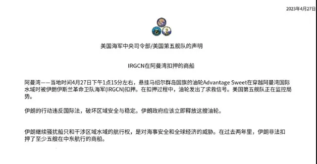 文/君剑 27日,据环球网援引外媒消息,美国军方突然责怪伊朗,声称伊朗扣押了一艘油轮“Advantage Sweet”,事发所在在阿曼湾的“国际水域”,伊朗革命卫队水师接纳了举措。美国水师中心司令部证实白事故的存在,美军声称还接到了油轮的“求救信号”,现在在中东活泼的美军第五舰队闻讯之后已经敏捷赶来,对局面睁开监控。同时,美军直接向伊朗发出告诫,要求立即放船。 伊朗方面声明则是声称印度洋北部发生伊朗船舶和未核实身份船舶之间的辩说事故,事故导致伊朗船舶上面至少2人殒命,另有多人负伤。伊朗以为,不明船只横冲直撞违背国际法。得到接济信号之后,伊朗海上气力立即追踪拦截,但对方船舶试图逃跑。终极,伊朗出动直升机将船舶扣押,并押送到伊朗领海,之后证实,这是美国的船。 干系信息表现,“Advantage Sweet”其时挂的是马绍尔群岛旌旗,但马绍尔群岛在防务上受美国支配,处于“美国托管”状态。而且,这艘油轮其时是从科威彪炳发,根据卫星数据,其终极目标地是美国得州。油轮的载货本事很大,其原油携带量到达100万桶。如果满载的话,则意味着伊朗大概在扣船之后,直接“截胡”最多100万桶原油。 以是美国急得上蹿下跳也就可以明白了,毕竟以往都是美国抢别人的石油,没想到这一次轮到美国的石油被别人“截胡”,美国心内里肯定一万个不乐意。 美国责怪伊朗在2年时间内,扣押了至少5艘商船。然而美国也没少干如许的事变,在2021年,美国就曾在海湾地区公然拦截伊朗油轮,其时美军试图对油轮举行围追截堵。同时,美国计划转移伊朗的油轮,以及油轮上的大量原油。 但伊朗敏捷反应,派出直升机和快艇群,闪电夺回了油轮。美军不绝念,直接出动伯克级驱逐舰和直升机,试图再次夺取油轮。然而伊朗的速率更快,油轮已经被转移到伊朗领海,美国扑了个空。而其时伊朗舰艇武器对准美国伯克舰的“名局面”,也让人捏了一把盗汗。 2022年,美国贼心不死,又授意希腊,在地中海扣押了一艘伊朗油轮,该船听说载有原油11.5万吨,而且船只大概是俄罗斯企业在运营。原来美国的意思,是要求希腊将原油转交给美国。结果伊朗也不客气,很快就出动直升机等气力,在海湾地区扣押2艘希腊油轮,并告诉希腊,另有17艘希腊船只也在海湾,希腊看着办吧。终极希腊认清局面,照旧决定把伊朗油轮给开释了,美国再次扑了个空。 而这一次,美国被反将一军,显然是更加丢人了。固然对于详细情况,还得看伊朗怎么阐明。但不管怎样,美国显着都已经没了从前的嚣张气势。随着反霸权成为环球共识,美国胡作非为的小日子也早就一去不返了。 |