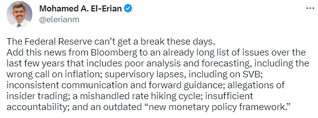 (观察者网讯)在美联储是否再次加息引发市场关注之际,美联储主席杰罗姆·鲍威尔被曝成了俄罗斯政治恶作剧二人组“沃万和雷克萨斯”(弗拉基米尔·库兹涅佐夫和阿列克谢·斯托利亚洛夫)的最新中计者。 综合彭博社和《纽约邮报》4月27日报道,变乱发生在本年1月,鲍威尔以为本身在与乌克兰总统泽连斯基通话,回复了从通胀远景到俄罗斯央行行长表现的一系列题目,猜测美联储大幅加息肯定水平大将放缓本年经济增长,以致大概导致经济阑珊,其时还预报美联储会加息两次。 固然美联储27日称相干视频“似乎被剪辑过”,但认可鲍威尔简直接了这通电话。彭博社称,此事大概会引发人们对美联储安全性的质疑。 4月27日起,相干录像在推特走红。视频中,70岁的鲍威尔对着镜头认真分析经济远景的样子,引发热议。 他以为电话的那一端是泽连斯基,实际上对方是捉弄了浩繁西方政客和着名流物的俄罗斯政治恶作剧二人组,网传视频片断累计时长高出15分钟。 彭博社称,俄罗斯媒体放出了这些视频。据英国广播公司(BBC)报道,鲍威尔在电话中歌颂了俄罗斯央行行长纳比乌琳娜在西方制裁下调控俄罗斯经济的本事,还论述了美国经济增长放缓的情况。 鲍威尔在这通年初的对话中,对2023年经济的预期是:“经济阑珊的大概性险些与经济增长非常痴钝的大概性一样大。”他认可出现这一情况肯定水平上是由于美联储大幅加息,但称加息是低落通胀、让市场降温的须要条件。 财经网站“Investing.com”称,此中一段视频表现,鲍威尔其时称,美联储将再加息两次。 相干舆论发酵后,当地时间4月27日,美联储发言人回应称:“鲍威尔主席本年1月与或人举行了一次对话,对方假冒乌克兰总统。这是一次友好的对话。” 该发言人称,这次对话“没有涉及敏感或机密信息”,网传视频似乎颠末了“剪辑”,无法证明其正确性,此事已移交相干执法部门处置处罚。 这位发言人不肯批评这通电话是否表明美联储存在安全毛病或美联储以后将接纳何种步调防止此事再次发生。 彭博社称,鲍威尔接到这个电话的究竟,大概会引发人们对美联储安全性的质疑。 由于鲍威尔发表的经济观点经常影响金融市场,他云云容易地在一通恶作剧电话里输出观点引发外界担心。 “美联储这段时间不能苏息了。”美国经济学家、英国《金融时报》特约撰稿人穆罕默德·阿里·埃尔-埃利安发文称,加上这条消息,美联储近几年已经累积了一系列题目:对通胀的错误猜测、羁系失误(包罗硅谷银行停业变乱)、沟通和前瞻性引导前后抵牾、面对内幕生意业务控告、加息周期处置处罚不当、问责不敷以及过期的“新货币政策框架”。 美国金融分析师杰西·科恩也以为,此事对美联储来说是一个“尴尬时间”。 本文系观察者网独家稿件,未经授权,不得转载。 |