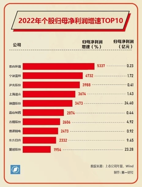 A股上市公司2022年年报披露进入尾声。Wind数据表现,停止发稿,在A股5164家上市公司中,有5159家公司披露2022年年报。已披露年报的上市公司合计营收71.63万亿元,同比增长7.3%;合计归母净利润5.21万亿元,同比增长1.5%。 在已披露年报的上市公司中,超4100家公司实现红利,占比近80%;2453家公司实现净利增长,占比近48%。 分行业看,电力装备、有色金属、煤炭、石油石化等行业净利润增速居前,房地产、钢铁、传媒、修建质料等行业净利润位列增速榜单末了。 个股方面,在2022年营收排行榜中,有6家公司营收高出万亿元,中国石化、中国石油、中国修建位居营收前三位,中国中铁、中国安全、中国铁建营收也突破万亿元。 从营收增速看,上海谊众营收增速“一骑绝尘”,高达5687%。公司年报表现,营收与同比大幅增长的缘故起因是,2021年第四序度公司焦点产物注射用紫衫醇聚合物胶束获批上市后,公司正式开展紫衫醇聚胶束的商业化生产及贩卖工作,2022年销量大幅增长。除了上海谊众之外,神州细胞-U、康乐卫士、盟科药业-U等个股营收增速也居前。 红利方面,归母净利润排名前10名重要来自于金融业,此中9家公司客岁归母净利润超千亿元,工商银行、建立银行、农业银行归母净利润排名前三位。 从净利增速看,农尚情况净利增速最高,同比增5337%。宁波富邦、沪光股份、上海谊众净利增速靠前。 别的,客岁中国国航、中国东航、南边航空合计净亏损超千亿元。蓝光发展、海航控股、荣盛发展、百济神州-U、华侨城A净亏损均超百亿元。 |