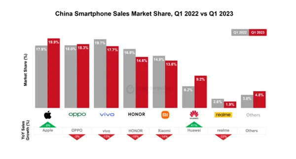本年第一季度,别的国产手机品牌纷纷销量下滑,华为手机销量却逆势大涨41%,成为苹果之外,唯一正向增长的手机品牌。 市调机构Counterpoint日前发布的调研数据体现,2023年第一季度,中国智能手机销量同比下滑5%,创2014年以来第一季度最低销量数字。 此中,体现最为抢眼的当属华为,销量同比大涨41%。华为Mate 50系列、P60系列和新上市的华为nova 10系列固然都不支持5G,但照旧受到了市场的欢迎。 数据体现,华为第一季度市场份额已经回升到9.2%,仅次于苹果、OPPO、vivo、光彩和小米。 3月31日,华为2022年年报发布会上,对于5G手机何时回归,华为轮值董事长徐直军表现,手机业务受制裁影响最大,从举世第二,现在到了others。 美国商务部只允许了4G芯片,我们只能制造4G手机。华为手机通过摄像、折叠屏等方面的提拔,照旧有人乐意用4G手机。要买到华为5G手机,还要等美国商务部的允许。 毕竟上,除了产物竞争力之外,从以往的实测来看,华为手机的信号优化,让4G手机在现实体验中和5G手机差距并不显着,在一些弱网情况下,体现反而能“倒挂”好一些优化欠好的5G手机。 |