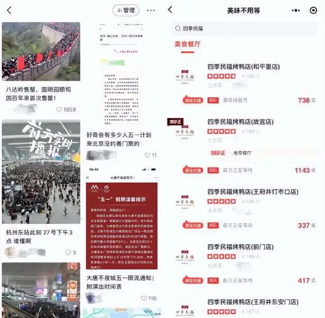 燃次元(ID:chaintruth)原创 作者丨谢中秀 陶 淘吕敬之 曹 杨 冯晓亭 马舒叶 李 欣 编辑丨谢中秀 出行的年轻人已经感受到了“最火”五一的热情。 “我们4月28日晚上八点出发,车程预计29日破晓两点到达太原,但实际上早上五点钟,我们才到太原。”没抢到高铁票,只能先搭顺风车从北京到太原,再从太原搭高铁“曲线回家”的叶子说道,“堵,着实是太堵了。” “在搭公交去顺风车上车点的时间,我挤了三趟都没挤上公交车。”叶子无奈道。 堵在路上的也不但有叶子,燃次元看到,4月28日晚和4月29日,不少出行人士晒出车站、高铁人挤人,以及高速公路拥堵的照片。 有人堵在深圳到江西的高速上,在4月29日早上四点发布小红书条记表现,“堵车堵到猜疑人生,高速上的人都出来散步了。”也有人晒出高铁上无座职员满满当当的图片直言,“高铁坐出了地铁的感觉。” 4月28日薄暮,北京遭遇雷雨、大风气候,尚有调休想早点出行的人士,却遭遇机场滞留,“特意调休了半天,定的4月28日下战书四点的飞机,效果延误到晚上八点还没信,末了晚上十点半腾飞了。” 这个五一,堵在路上只是第一步,到了各大景点,仍然是人挤人。南京路步行街、圆明园、昌成、鼓楼、顺德金榜街、泉州……各地都有人晒出人挤人的照片。 究竟,这是2.4亿人出行的五一。据央视消息报道,猜测数据表现,本年“五一”假期预计有凌驾2.4亿人次出游,规复到2019年的104%。 火热的出行热情之下,无论是铁路照旧航空,均呈“满载”状态。4月28日,上海虹桥站还发布公告称,“当日虹桥站发往天下各站的车票均已售完。”4月29日,中国国家铁路团体有限公司数据表现,4月29日天下铁路预计发送游客1950万人次,创铁路单日客流汗青新高。 在航空方面,五一假期开始前,便有部门航线机票售罄,好比南航由北京飞往珠海、汕头、大连的旅游热线,东航由上海前去西安、兰州、大理、长沙、桂林、厦门、北海、张家界的航线。 尚有不少景区门票售罄。4月28日,北京发布消息表现,故宫、恭王府“五一”沐日5天门票均已约满,八达岭长城4月30日-5月2日门票已约满,颐和园、天坛、景山公园4月29日-5月2日,北京动物园4月30日至5月1日门票均已约满。 别的,上海迪士尼、泰山、南京博物院、陕西汗青博物馆、上海博物馆、三星堆博物馆也有部门日期门票已售罄。 各餐厅也排起长队,有人晒出北京四序民福烤鸭店各门店列队时间的图片表现,各店如今线队都在200桌以上,最火的四序民福烤鸭店(故宫店)当前线队1223桌。 这个五一的火爆水平可见一斑。 本期小酒馆,燃次元就和出行的年轻人聊了聊他们的履历,他们之中,有人家在淄博周边,却买不到票回家;有人原来两小时回家的车程,由于拥堵酿成了五小时;也有人前去近期热门都会淄博,早上四点出门、八点列队,终于错峰打卡了景点、吃上了烧烤;尚有人为了避开人群爬长城,早上七点便起床出门;固然尚有不少人,根本没抢到回家或观光的票,只能“家里蹲”…… 这是疫情阴霾完全褪去后,第一个五天长假,也是打工人难过的休闲放松时间,大概这就是本年五一云云拥挤的缘故因由。无论是选择在家放松,照旧出门感受天下,祝各人都有一个惬意的五一。 01 特种兵在淄博,四点逛景点、八点等烧烤 睿睿丨21岁 大门生 淄博火了,谁能不想来感受一波小饼撸串的快乐呢,但我千万没想到,和我一样同舟共济的吃货,全都挤在了五一假期。 畏惧4月29日太堵,我和男朋侪特意选择了坐28日最早的一班车前去淄博。但当我拿着行李踏上那一趟28日破晓三点的火车,我就愣在了当场,不管是有座的照旧无座的,全都挤在过道上,根本无法挪动。 纵然我和男朋侪买到了坐票,也难从前去我们的位置,终极只能在夹缝中腾挪,我荣幸找到一个位置坐着,男朋侪则全程站到了淄博。 在火车上,我一边心田吐槽“我们这是去淄博旅游,不是去攻打淄博”,一边荣幸地料想,大概这一车搭客并不是全前去淄博。但当列车员喊出“淄博站到了”的一瞬间,车厢内全部的人都站了起来,那一刻,我似乎已经预见了本日淄博之旅,肯定会陪伴着“人从众”的拥挤局面。 幸亏我提前做了攻略,也发挥了大门生特种兵的特质,4月28日破晓四点多,我和男朋侪就直接抵达了传说中“堵爆了”的八大局,由于是破晓的缘故,我荣幸没有受列队之苦,网红的紫米糕、炒饼都逐一举行了打卡。 一起逛逛吃吃,等从八大局出来,已经近8点,此前我就从短视频平台刷到,许多去烧烤城的游客,从早上取了号,晚上才吃上,罗致教导,我们转道恣意从小红书选了一家烧烤店,8点就到了门口。 不外,我想要“错峰烧烤”的筹划又一次落空。由于淄博烧烤太火,全部的烧烤店都不继续预约,只能现场列队取号,而8点就蹲在烧烤店门口的,显然不止我们一批。 从8点开始拿号,门口的人已经有序列队,比及11点老板开门,门口已经站了满满一圈人,等门一开,全部人蜂拥而入,店里瞬间满客,不敢夷由,我赶紧落座下单,店里的打单机早已响个不绝,一瞬间,我都有些暗昧,“感觉本身不想来用饭的,像是来砸店的。” 就如许,从8点到11点多,我才吃上了烧烤,望动手里鲜味的烧烤,捏着本身挤了一天酸软的小腿,我决定,这次五一来淄博肯定要多吃一点。 02 游客扎堆去撸串,淄博周边人没票回家 Shirley | 30岁 科研职员 本日是五一节第一天,我和双胞胎妹妹在北京家里蹲,没能和