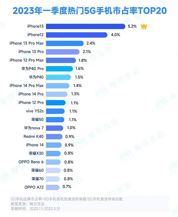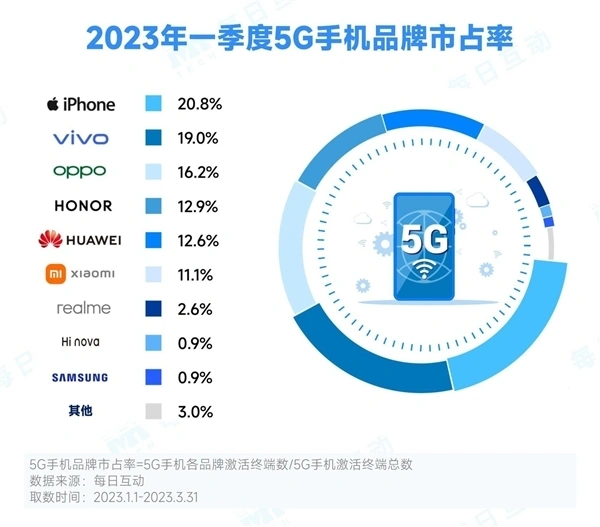 快科技4月30日消息,日前,逐日互动发布《2023年一季度5G手机陈诉》,陈诉表现,2023年一季度5G手机在智能手机市场占据率达48.2%,同比增长32.8%。 具体来看,iPhone 5G手机以20.8%的市占率排名第一,vivo以19.0%市占率排名第二,OPPO 5G手机排名第三,市占率达16.2%,光彩第四,市占率12.9%,华为5G手机固然“断更”,但市占率依然有12.6%,进入前五。 值得留意的是,在热门5G手机市占率中,前五名均被iPhone包办,而华为P40 Pro排名第六,成为国产手机第一,也是唯一能和iPhone抗衡的国产物牌手机。 因众所周知的缘故原由,华为在Mate 40系列后,5G手机就“断更”了,后续推出的各种新机包罗旗舰,都只能利用4G网络。 但依靠此前多款5G手机,华为5G手机至今仍在市场有一席之地,市占率以致还能与其他主流厂商中分天下。 华为常务董事余承东此前表现,“若不是由于美国的打压,大概环球重要的手机厂家就是华为和苹果,其他都是小厂家。包罗那家韩国企业,大概重要在美国和韩国两个市场,其他市场根本都被干得差不多了。” |