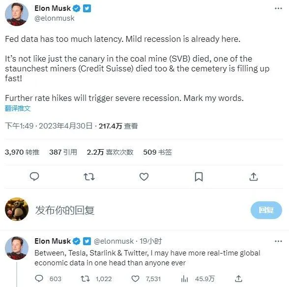 财联社5月1日讯(编辑 潇湘)马斯克并非经济学家,因此他的品评者常会说,当涉及评价环球以及美国经济的康健状态时,马斯克的意见并没有什么参考代价。 不外,马斯克本人显然并不这么看——在上周日最新发布的一系列推文中,这位环球瞩目的亿万富翁就以为,其作为一位旗下拥有多家环球尖端科技范畴企业的贸易首脑,完全有本领正确评估出环球经济的温度和脉搏…… 这位亿万富翁在当地时间周日的一系列推文中写道:“在特斯拉、Starlink和推特之间,我一个人把握的实时环球经济数据大概比任何人都多。” 马斯克以为,与美联储相比,他拥有的数据才是反映经济形势的“实时景像”,这让他能更好地相识了眼下经济范畴真正在发生的事故。 毕竟上,已往数月这位环球风头无二的亿万富翁就不绝对美联储的钱币政策非常不满。自客岁3月以来,美联储就不绝在激进加息,以试图遏制消耗者和企业所面临的高通胀。但包罗马斯克在内的经济学家和商界首脑已一连告诫称,这一汗青有数的紧缩举措将削弱经济,并有大概导致阑珊。 在马斯克看来,假如美联储继承加息,现在已经处于“轻微阑珊”的经济将履历“严峻阑珊”。他是在哈佛大学经济学家、美国前财长拉里·萨默斯(Larry Summers)发表的推文下做出这一推测的。 萨默斯在4月29日发表的推文中写道,“假如美联储继承采取紧缩步调遏制通胀,我预计经济放缓大概会到来。我以为,将来12个月某个时间发生这种情况的大概性相称大,概率大概为70%。” 马斯克对此复兴称,“美联储的数据有太多的延长,暖和的阑珊已经出现。” 为了证明本身的观点,马斯克辩称,银行业危急是经济放缓已经开始的一个迹象。他以“煤矿中的金丝雀”和“坟场”来比喻并形貌眼下的这场危急…… “不但仅是煤矿中的金丝雀(硅谷银行)死了,最刚强的矿工之一(瑞信)也死了,坟场很快就被填满了!进一步加息将引发严峻的阑珊——记取我的话,”马斯克写道。 从某种意义上来说,马斯克的上述观点着实也不无原理。即便是美联储官员也通常不得不认可,官方的宏观经济数据通常会存在肯定的滞后性,而市场上某些行业或私营部分的高频指标,反倒通常能更为敏锐地捕捉到经济运行状态的玄妙厘革。 马斯克在推文中提到了他执掌下的特斯拉、Starlink和推特。而确实,作为全美最大电动汽车制造商,人们对特斯拉汽车的需求趋势中,也能在肯定水平上大抵反映出消耗者付出的情况。 推特自然更不必说,重要交际媒体上热词的厘革通常也是经济学家关注的一处范畴,通常能更为直观地反映人们的真实感情。而有鉴于这家交际媒体平台的大部分收入来自广告商,企业广告付出的变更也大概反馈出企业根本面的运营状态。 波士顿学院(Boston College)的经济学传授Brian Bethune近期就体现,他以为美国通胀正在降温,其幅度足以让美联储停息加息。“假如我是美联储公开市场委员会的成员,我会投票赞创建即停息加息。美联储有肯定的大概是已颠末分紧缩了。” (财联社 潇湘) |