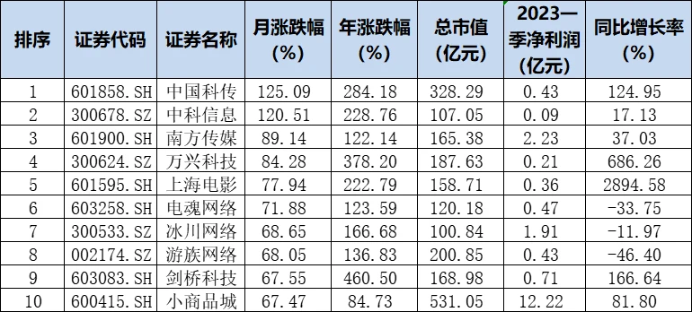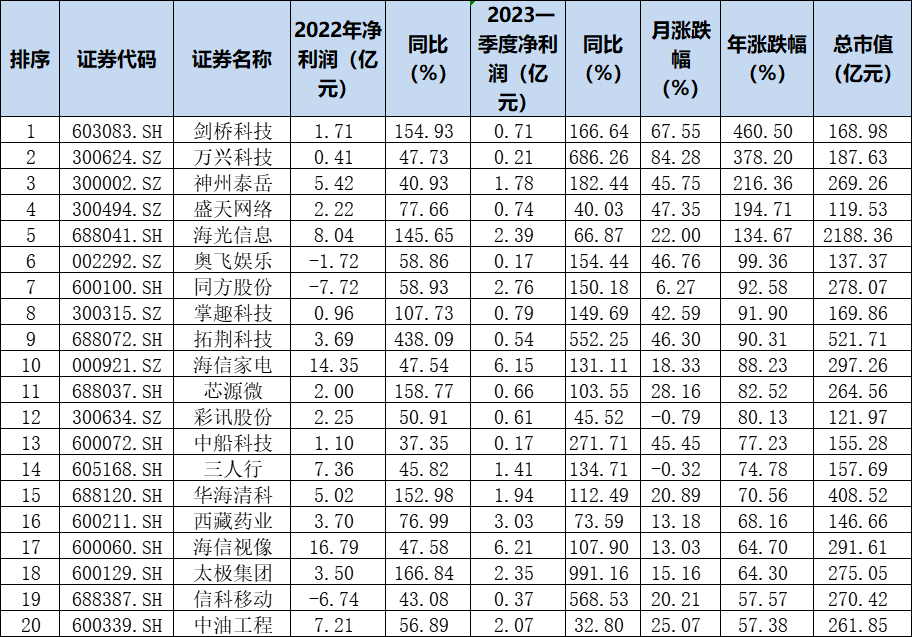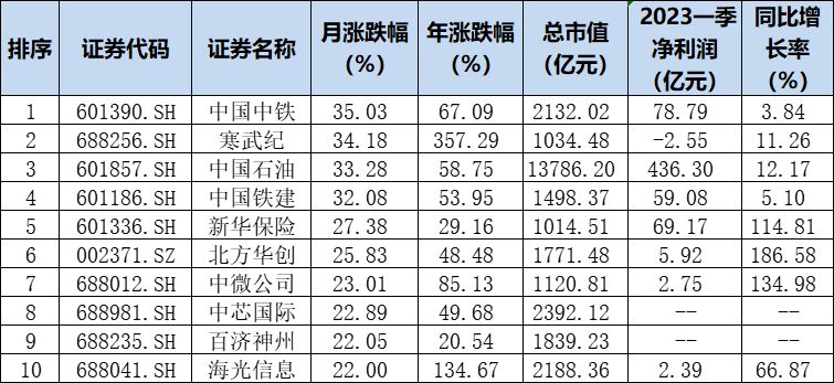 代价线|出品 鸡毛信|栏目 边江|作者 代价线导读 五一长假后半段,美港股市生意业务! 昨日港股恒指高开2%左右一起向下,险些平盘收盘,本日港股大幅低开后,恒生指数盘月朔度重挫近2%,恒生科技指数一度跌近3%。停止收盘,恒生指数跌1.24%,恒生科技指数跌1.63%。热门科技股普跌,蔚来-SW股价创上市以来新低。 美股方面,周一三大指数险些报收平盘,而周二均大跌1%以上。 全天下都在鉴戒翼翼等候周四破晓美联储加息的消息。美联储为克制高通胀,自客岁开始的连续暴力加息,引发环球资源市场动荡。来日诰日早上或是本轮加息周期的末了一次,大概也是最温暖的一次(25基点)。美联储嫡破晓加息消息后,美股走向将成为投资者关注核心。 A股五月走向何方?本年连续大热AIGC会否连续?年报季报业绩的关联度有多大?五月会否进一步分化,借局面借业绩借人气催生新的十倍牛股?五月,消耗等新的热门会否破壳而出? 代价线研究院本日有特别关注。 最新数据里藏有暴涨的机密 话不多说,直接看数据: 1、年报、一季报同时增长30%以上且市值100亿以上公司达213家,此中本年股价上涨有138家,涨幅前20公司如下: 2、本年4月涨幅前10名公司(100亿市值以上): 3、本年1-4月涨幅前10名公司(100亿市值以上): 别的,代价线研究员对上市公司4月份涨幅靠前的公司举行了分段研究: 1、1000亿市值以上公司4月涨幅前10及其一季度业绩体现 2、100-1000亿市值公司4月涨幅前10及其一季度业绩体现 3、100亿元以下市值公司4月涨幅前10及其一季度业绩 本年前三月股票上涨的特性告急是借势,借的是中特估和人工智能的势。 而进入4月以来,A股上涨靠前的公司不但仅停顿在借势、借人气,更告急的是借业绩。不难发现,同样是处于风口,有业绩增长的公司的股价上涨会更长期。 举例来看,对比算力赛道中尽快会开释业绩的几家光模块公司:4月之前,新易盛、华工科技、中际旭创均是大幅上涨,但是4月以后,走势上中际旭创显着强于华工科技,华工科技显着强于新易盛。从披露的业绩也很显着,中际旭创年报、一季报均大幅上涨,而新易盛的一季报显着出现了下跌。 做大模子的几家公司也是一样的原理:4月之后有业绩发展支持的昆仑万维(一季报扣非后增长70%)的走势显着要强于没有业绩支持的360(一季报扣非后亏损)。 将来在TMT大赛道的选股中,不但要关注概念的发酵,同时更要器重公司将来是否有相应的业绩开释,密切关注这个赛道在本年可否冲出哪些10倍大牛股。 受益于AIGC,现在市盈率较低、涨幅不大的游戏股五月重点关注,如三七互娱、吉比特等。 马斯克再次喊话美联储停息加息 本轮末了一次加息? 在中国投资者即将竣事漫长的“五一黄金周”假期之际,在大洋彼岸的美国,今晚也即将迎来一个关键时候——美联储将于北京时间周四破晓2点公布5月利率决定,美联储主席鲍威尔则将按惯例在2点半召开消息发布会! 现在,业内人士广泛预计美联储将在今晚的这个议息不眠夜连续第十次加息,而这很大概也将是本轮美联储紧缩周期落下的末了一枚加息“棋子”。 随着美联储徐徐濒临紧缩周期的尾声,鲍威尔重新来到了一个须要决定将来政策鹰鸽倾向的“十字路口”。 这轮最激进的加息周期已连续了一年多,劳动力市场仍相对强劲,赋闲率保持在3.5%的附近,靠近数十年低点,初请赋闲接济人数才刚刚开始上升。 与此同时,通胀继承向央行的目标放缓,团体CPI从客岁炎天的9%以上降至5%以下,美联储一如既往看重的核心PCE降至4.6%,但仍远超2%的目标(主流观点以为这一目标很难实现)。 有机构亮相,美联储或即将于美东时间5月3日开启自客岁3月以来的第10次加息,并将联邦基准利率提升至5%-5.25%的概率已高达94.2%。 嘉盛团体环球研究主管韦勒体现,美联储激进的紧缩政策是否会产生额外的负面溢出效应尚有待观察。本周末第一共和国银行被拍卖给摩根大通表明,银行体系的压力还是一个关键标题,但到现在为止,鲍威尔及其同寅不会对当前的宏观经济趋势感到不满。在如许的配景下,美联储大概会对峙照本宣科,再次加息25BP也就不敷为奇了。市场的核心将敏捷转向将来——生意业务员迫切地想知道加息周期是否或何时竣事。 高盛近期提及,“我们预计美联储将发出信号,预计将在6月停息加息,但仍将保持鹰派倾向,比最初假想的更早制止加息是由于银行压力大概导致信贷紧缩。整年余下的时间将保持利率稳定。” 克日,特斯拉首席实行官马斯克再次喊话美联储停息加息。他体现,当前美国经济已经进入煤矿里的金丝雀殒命的阶段,进一步加息将引发严峻的经济阑珊。 来日诰日破晓,美联储动向及美股体现将影响环球资源市场。 五一假期,尚有哪些大事发生? 1、据CNN最新消息,美国驻华大使尼古拉斯·伯恩斯体现,美国“准备好与中国对话”,并体现渴望北京“在这方面与我们相向而行”。此前也传出过美国财长耶伦和商务部长雷蒙多想要访华的消息。 2、国家统计局:4月官方制造业PMI为49.2% 4月份,制造业采购司理指数、非制造业商务活动指数和综合PMI产出指数分别为49.2%、56.4%和54.4%,低于上月2.7、1.8和2.6个百分点,三大指数差别水平回落,但总体产出继承保持扩张,企业生产策划活动连续规复发展态势。 3、五一旅游火热:中国旅游研究院猜测,本年五一假期会有2.4亿人次出游,到达2019年同期的104%,会创造1200亿以上