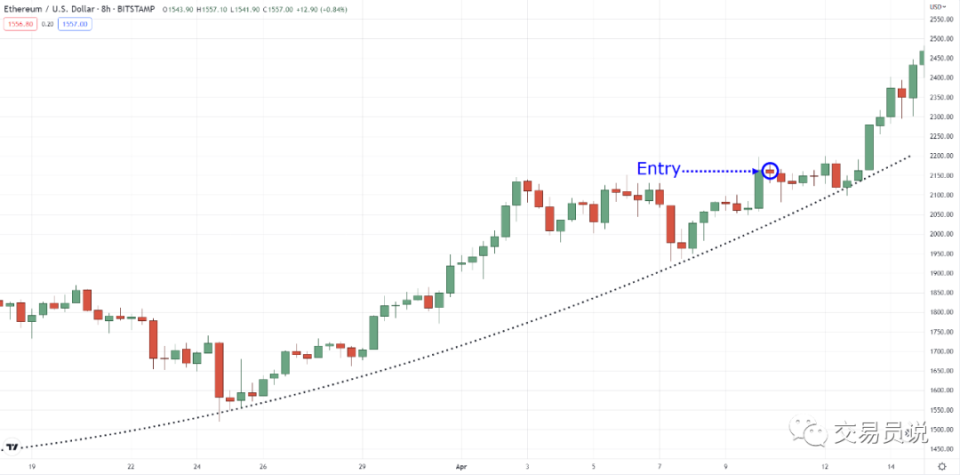 Rayner Teo是独立生意业务员,曾经是一名自营生意业务员。他生意业务汗青也有12年左右了。现在他自己的生意业务博客相当受欢迎。他重要跟随趋势举行生意业务。他以为,除了生意业务本领和战略之外,生意业务者可否服从原则、可否有良好的生理都很紧张。 假如你是新手生意业务者,大概会学习支持和阻力、移动均匀线等知识。 但很少有人关注“趋势线”。说实话,这很痛惜,由于趋势线就像瑞士军刀一样,可以说是多用途的“旷野生存”工具。 因此,在本文中,你将相识到: 什么是趋势线以及怎样辨认它? 为什么不是全部的趋势都是雷同的,以及你可以做些什么? 每个生意业务者必须知道的3种差别范例的趋势线 怎样生意业务和从差别范例的趋势线中赢利? 看完这些你是不是很感爱好呢? 什么是趋势线以及怎样辨认它 让我们一起往返首这些底子知识... 趋势线是一种技能分析工具,它可以资助你在趋势中探求代价地区。 假如代价已多次测试或突破趋势线地区,那么代价大概会再次从趋势线的阻力地区反弹。 没错,它是一个代价地区,而不光仅是一条单独的线! 那么,为什么你应该把趋势线绘制成一个地区,而不是一条线呢? 通常,这办理了生意业务者在使用趋势线时面对的一个常见标题。 这里举个例子... 你应该像如许绘制你的趋势线吗? 呃!!!!,好像不对... 那这个呢? Emm……看起来还是哺咝刷... 现在让我们实验将其绘制为一个地区。 Bingo!!! 以是,你看到了... 将趋势线绘制为一个地区,思量到了市场中全部的汗青数据和颠簸性! 不光云云,它还能给你更正确的信息,告诉你何时捉住趋势的回调... 是不是有原理? 现在你已经清晰了什么是趋势线以及它应该怎样绘制... 那么,怎样使用它呢? 假如你不知道怎样使用它在市场中赢利,那么相识怎样分析它就没有什么意义。 在此之前! 有须要谈谈我们使用趋势线的根本缘故因由,以及为什么我们必要使用差别范例的趋势线。 没人告诉你的差别范例的趋势 正如你所知,不是全部的趋势都是相当的。 那么,假如不是全部的趋势都相当,会发生什么? 这意味着绘制差别范例的趋势线也是不相当的! 这就是为什么你必须相识这三种范例的趋势: 强劲趋势 康健趋势(良好趋势) 弱势趋势 我来表明一下... 强劲趋势 在我们评论其他任何变乱之前,这是我想让你知道的: 强劲趋势不会一连太久。 没错。 这些范例的趋势是双刃剑,你赢利的速率也大概和你亏钱的速率一样快! 有许多工具和指标可以用来界说这些范例的趋势。 但是它们都有一个共同点: 代价在短期内急剧上涨,图表上的低点出现向上倾斜。 这通常表明资产的需求强劲,生意业务者经常试图在这种趋势中以较低代价买入并以较高代价卖出。但必要留意的是,强劲的趋势也大概是不稳固的,并大概突然反转,导致未实时平仓的生意业务者丧失惨重。因此,在生意业务强劲趋势时,订定稳妥的生意业务操持和风险管理战略非常紧张。 简而言之,强劲的趋势就像“短跑活动员”一样。 他们尽大概快地奔向止境! 那么缺点是什么? 他们很快会以为累,必须苏息,强劲的趋势也是云云。 那康健趋势呢? 康健趋势是我最喜欢的趋势范例。 为什么? 由于它们通常比强劲趋势一连时间更长! 你大概会想知道: “为什么它被称为康健趋势?” 这是由于它在突破和回撤之间取得得当均衡! 假如说强劲趋势像短跑活动员,那么康健趋势就像“慢跑爱好者”,痴钝而稳固地进步。 你懂了吗? 弱势趋势 Emm……弱势趋势就像一个迷路的游客实验走差别的路,试图到达目的地。 固然,假如你从大局上看,它仍处于降落趋势中。 但正如你所看到的,这个趋势中存在着多个趋势和区间! 这就像迷路的游客试图花时间去探求目的地一样! 这些市场通常是最具寻衅性的生意业务市场。 只管云云,弱势趋势的一个重要特性是回撤非常长,突破并没有走得太远。 你懂了吗? 由于存在差别范例的趋势,你现在将知道怎样使用差别范例的趋势线来生意业务它们。 那么,你大概会问差别范例的趋势线是什么? 它们是: 直线趋势线 曲线趋势线 反转趋势线 让我们深入探究一下这个主题,看看你怎样使用这些差别范例的趋势线正确入场、风险管理和退出生意业务...... 趋势线的范例:直线趋势线 直线趋势线并不是什么特别的事... 我已经向你展示了一段时间了! 但是这里是我还没有答复的标题: 什么时间直线趋势线是有效的? 在第二个波段高点(或波段低点)时,直线趋势线是有效的: 假如你只依靠一个波段高点或低点,那么在差别角度上绘制随意的趋势线是没故意义的,对吧? 而且假如你还记得的话... 肯定要确保将其视为一个地区,而不是单一的一条线! 是不是很轻易明白? 以是,让我们回首一下... 差别范例的趋势必要差别范例的趋势线。 话虽云云...在什么市场条件下,直线趋势线最具上风呢? 固然是康健趋势! 由于康健趋势有相当多的突破和回撤,因此使用直线趋势线举行绘制和生意业务更轻易。 但是……并不是全部的市场趋势都是相当的。 那么,当市场看起来像如许时,你会怎样使用直线趋势线? 你不能像下图一样绘制趋势线。 如许的直线趋势线就没什么用了! 那么办理方案是什么呢? 趋势线范例:曲线趋势线 还记得加密货币在消息中第一次出现的时间吗? 那是生意业务中的新高潮! 这以致是一些人开始生意业务的缘故
