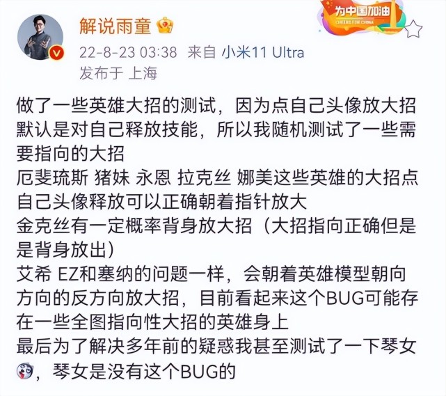 LPL夏季赛TES和EDG的季后赛,终极TES乐成以3-2的战绩击败EDG,晋级胜者组决赛。固然TES得胜了,但是JKL在第五局的一波操纵也引发了热议,就是两边下路团战中,JKL的赛娜从塔姆嘴里出来后,反向R,刚好那波团战TES溃败,以是许多人以为JKL的反向R也是导致团战失败的缘故原由之一。而就在角逐竣事后,LPL教学雨童发文表现:这波不是JKL失误了,而是BUG。 雨童的具体发言如下,他先是表现JKL赛娜反向R真的是BUG,本身测试过,在赤色方点到本身豪杰的头像,就会反向R。 随后雨童发长文表明,由于有些豪杰点本身的头像放R,是对本身放R,以是本身测试了一些大招,有几个豪杰点本身的头像是正向R,但是金克丝偶然间会反向R,艾希、EZ和赛娜则是反向R。雨童本身表明就是全图流大招会反向R。 而从JKL角逐中的第一视角可以看出,在赛娜放R的刹时,JKL的鼠标指针确实是不警惕点到了本身的头像,重要是对手也在本身头像旁边,按理说应该是朝着下方放R的,由于鼠标指针在下方,但是由于点到了头像,就向上方反向R了。 贝塔以为:这个到底是机制标题,照旧BUG,大概还须要后续官方的公告,由于举世流大招都有这种标题的话,着实还不好说。但是也可以确定,在这场角逐之前,JKL本人是不知道这是BUG的,由于他赛后采访的时间还认可本身失误了,没想到着实并不是失误。不外这个大招就算是正向放出来了,也改变不了那波团战TES溃败的了局,由于背面纳尔把凯南拍AD脸上了,这个擦?鲱关键的失误,只是由于JKL,以是才让这波反向R关注度这么高。 这个BUG应该已经存在好久了,不停没有被触发过,以是不停没人说,固然如果是机制标题的话,只能说背面LPL的选手们要注意一下了,特殊是天下赛的时间别再点错了,这场角逐BUG没有影响到终极结果,盼望背面不要再有类似的变乱发生了吧! 那么,对于这件变乱,你们有什么想说的吗? |
