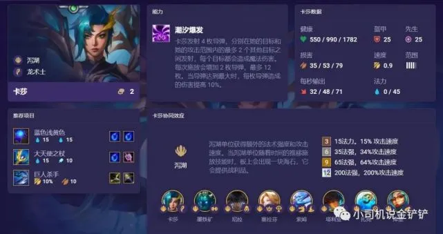 现在,S7已经进入赛季未,S7.5赛季即将到来,履历过前几个赛季的玩家都知道,每次这种大版本更新,变更都非常大,就如S6到S6.5,就删除了永恩,并新上架了一批好汉。S7.5赛季也是云云,删除了库奇、奥恩、妮蔻、瑞兹、慎、艾妮维亚、派克等20多名好汉,同时,也新加入了20多名新好汉,下面,就捡一些告急的为各人说说: 内瑟斯(1费) 狗头召唤圣光护体,得到生命值提拔,一连6秒,在此期间,每秒对附近的仇人造成邪术伤害。狗头的拘束有:金鳞龙、掩护,这也就意味着以后各人玩金鳞龙的时间,可以自带两掩护了。 孙悟空(1费) 猴子使用金箍棒猛击目的,除了造成肯定比例的攻击伤害之后,另有击晕结果。他的拘束是玉龙和狂刃兵士,蓝量50点,不知道以后会不会成为热门的赌狗阵容。 贾克斯(2费) 贾克斯在2秒之内闪避全部攻击,竣事之后对附近仇人造成邪术伤害和晕眩结果,玩过福星版本的话应该对这个技能非常认识。贾克斯的拘束有:玉龙、金鳞龙和格斗家。 厄斐琉斯(2费) 厄斐琉斯向前发射多颗子弹,每颗子弹对第一个目的造成肯定的肯定比例的物理伤害,后续子弹对同一目的造成的伤害低沉60%,然后击晕全部被掷中的仇人。这个好汉也是福星版本各人比力认识的好汉,当时间的厄斐琉斯固然也是2费,但由于可以升到四星,后期可屠神。 婕拉(2费) 婕拉向仇人最多的一排召唤滕蔓,造成邪术伤害的同时,附带晕眩结果,这个和上个版本中的辛迪加婕拉技能差不多,特殊克制后排好汉。她的拘束有:幽影龙和魔导师。 卡莎(2费) 卡莎向目的和攻击范围内的其他两个目的发射4枚飞弹,造成邪术伤害,每次开释增长2枚,最多12枚,当数目到达最大值时,每枚飞弹的伤害提拔10%。卡莎的蓝量是45点,给个蓝霸符之后,开释的技能频率非常快。可以推测,卡莎必将成为热门赌狗。卡莎的拘束有:碧波龙、神龙尊者。碧波龙是新增的拘束,可以增长法强和攻速。 泽丽(3费) 泽丽朝两格内近来的仇人发射水脉冲,如果两格内没有仇人,就会向棋盘中心发射,脉冲在打仗时会发生爆炸,造成肯定比例的物理伤害,与此同时,会在目的死后形成一道激光,对掷中的全部仇人造成邪术伤害。与上个版本中的五费泽丽相比,显着要弱很多,再也不是后排杀手了。 格雷福斯(四费) 被动:格雷福斯寻常攻击发射4颗子弹,每颗子弹造成90%物理攻击伤害;主动:冲向目的,一连攻击两次,并得到护甲和魔抗,一连4秒。格雷福斯的拘束有:炮手、风暴龙,蓝量是40点,攻击隔断3格,可谓能打能抗。 杰斯(4费) 杰斯酿成近战形态猛击地面,造成邪术伤害和击飞结果,之后技能酿成范围邪术伤害,每掷中一个仇人就能得到护盾和额外的生命值,一连3秒。 诺姆希(6费) 诺姆希向目的扔火球,撞击之后爆炸,对一格内的目的造成邪术伤害,之后向外弹射小火球,造成50%的伤害。诺姆希有两个拘束,一个是龙族小天才,一个是龙神,龙族小天才可以让诺姆希每一局在法师、魔导师、炮手三个职业中随机选择职业。也就是说,从前是驯龙大家召唤诺姆希,S7.5是诺姆希召唤驯龙大家。 斯维因(7费) 斯维因由3费变为7费,技能是召唤8条龙攻击附近的仇人,每条龙造成肯定的邪术伤害后,然后返回为斯维因复兴9%已损生命值。 PS:图片上的内容为软件翻译所得,错误地方可以忽视。 |