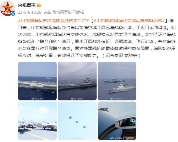 泉源:央视军事 连日来,山东舰航母编队赴台岛以东海空域开展远海战备训练,于克日返回母港。此次训练,山东舰航母编队初次成体系、成规模远赴西清静洋海疆,到场了环台岛战备警巡和“连合利剑”训练,同步开展战斗值班、课题演练、飞行训练,并在岛链外与多军兵种开展连合演练。面临外兵舰机轮替侦察探索的复杂局面,编队始终积极应对、稳妥处置处罚,有效提升了实战本领。(记者安妮 龙驰等) |