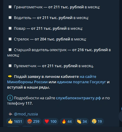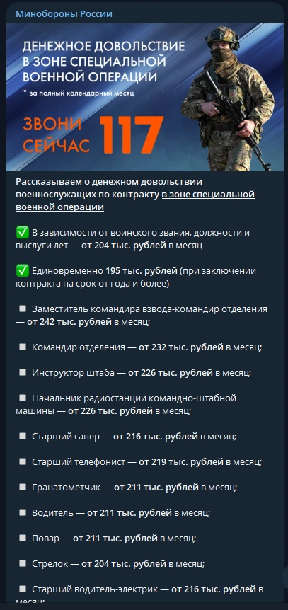 5月6日,俄罗斯国防部公布了加入特殊军事举措的条约制武士工资情况。 根据军衔、职位和服役年限,每月20.4万卢布起。 一次性补贴19.5万卢布(如果条约期为一年或以上)。 副排长:每月24.2万卢布起; 班长:每月23.2万卢布起; 顾问:每月22.6万卢布起; 指挥部和顾问部车辆的无线电台长:每月22.6万卢布起; 高级工兵:每月21.6万卢布起; 高级电话员:每月21.9万卢布起; 火箭筒手:每月21.1万卢布起; 司机:每月21.1万卢布起; 厨师:每月21.1万卢布起; 步枪兵:每月20.4万卢布起; 高级电工司机:每月21.6万卢布起; 机枪手:每月21.1万卢布起。 按照当前汇率,1人民币=11.1802俄罗斯卢布,请各人自行换算。 上述工资标定的都是士官和技能兵种的军饷,你没看错,厨师也是技能兵种。折算成人民币的话,大抵是一个月2万左右。作为对比,俄罗斯天下收入的中位数大抵4000人民币,至少在俄罗斯,这绝对算是高工资了,但这个钱并不好拿,由于是以命相搏的。紧张是能赚到这个钱的人数只有不到30万人,占全俄生齿的比例仅为0.2%。他们中的绝大多数是职业武士,属于条约兵,和咱中国的任务兵是两种概念。 有人大概要问一年才26万人民币就把命给卖了,是不是有点低呀?这是活着的能拿到的钱,如果战死大概伤残,俄罗斯政府还会一次性给予其遗孀和眷属一笔不菲的抚恤金。别的,有后代的国家还会相应的抚养成人。 有不少简中乌友艾特过肥鹅,寻衅说你应该去俄乌辩论火线向你主子俄罗斯效忠。我看到这种家伙就以为可笑。 起首,俄罗斯与乌克兰抓壮丁大相径庭,俄罗斯送往火线的武士都是有作战技能的职业武士,不会让毫无军事履历的人去送命,就连其国内的任务兵都不答应出国作战,更况且抓壮丁呢?大概有个别腐败征象,但那都是个别地方征兵办职员铤而走险的违法举动,抓到了是会被判刑的,可不像乌克兰明火执仗地当街抓人。这是俄罗斯与毫无人性的基辅政权最大的区别之一。 其次,绝大多数被你们这群真亲美假挺乌的家伙扣上“俄粉”帽子的中国网民爱的是中国,他们是站在故国的长处上对待俄乌辩论题目,由于他们知道俄罗斯一旦倒下,美西方下一个要围堵和肢解的国家肯定是中国。固然,真亲美假挺乌派们会继续偷换概念的诡辩,这种征象实在挺讽刺的。它们这些平常暗戳戳地反政府,一说到俄罗斯就摇身一酿成了“爱国者”。别忘了,沙俄侵华屠杀中国同胞最多的就是乌克兰哥萨克,而现今的基辅政权紧跟美国步调,支持台独和港独,亚速营成员跑到香港生事的事变就不消我多说了吧。这些家伙支持乌克兰早就袒露底色了。 (2023年5月6日,作者:彼得堡的肥天鹅) |