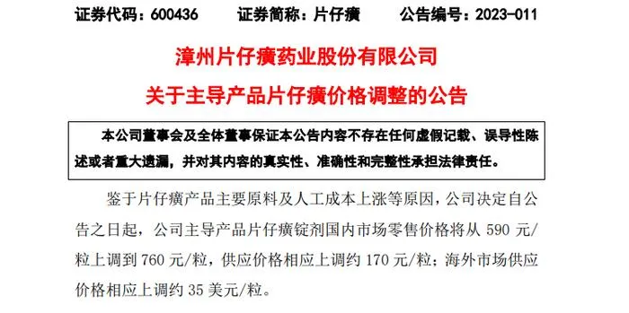 涨价170元!片仔癀时隔三年再涨价 5月5日晚间,片仔癀公告称,公司主导产物片仔癀锭剂国内市场零售代价将从590元/粒上调到760元/粒,代价涨幅到达28.8%,同时供应代价相应上调约170元/粒,外洋市场供应代价相应上调约35美元/粒。 这是片仔癀2016年以来第4次提价,也是片仔癀积年来提价幅度最大的一次。已往20年间,片仔癀曾多次公布提价。 根据西南证券此前统计,2004年至2020年,片仔癀锭剂产物一共提价19次,零售价从325元/粒升至590元/粒,提价幅度81.54%。从出厂价来看,片仔癀锭剂提价共计10次,从2004年的125元/粒升至2020年1月初的390元/粒,提价幅度212%。 2016年6月,片仔癀的市场零售价由460元/粒上调为500元/粒;2017年由500元/粒上调至530元/粒;2020年初,片仔癀零售价上调为590元/粒,三次累计提价130元/粒,涨幅约为28%。 药品代价315网表现,一粒装的片仔癀天下各地的零售药房报价均在1000元以上,此中哈尔滨一家药房报价已经到达1950元/粒,而一年前的2020年6月片仔癀在该网站的最低成交单价仅为458元/粒。 片仔癀在公告中表现,此次调价紧张是思量到产物紧张质料及人工资本上涨等缘故因由。 片仔癀的紧张原质料包罗麝香、牛黄、蛇胆和三七,此中麝香和蛇胆都须要严格按照国家有关规定构造采购。停止2016年,我国仅有14家企业有天然麝香的利用权,片仔癀便是此中之一。根据西南证券研报,天然麝香和牛黄是片仔癀的两大焦点质料资本,两者所占原质料资本的比重到达90%。 康美中药网表现,近一年来,天然牛黄的代价一起上涨,如今市场代价约莫为800元/克,较2021年初的代价上涨约100%,天然麝香的国家统购代价则为400元/克。 华安证券研报指出,原质料的稀缺性拉升了资本代价的同时,也限定了公司产能,因此,进步出厂代价可以对冲质料上涨和其他资本上升的压力,肯定水平上提升公司的业绩。 百度百科表现,片仔癀具有清热解毒、凉血化瘀、消肿止痛的功效。紧张用于热毒血瘀所致急慢性病毒性肝炎,痈疽疔疮,无名肿毒,跌打损伤及各种炎症。 2022年财报数据表现,片仔癀客岁实现业务总收入为86.94亿元,此中,公司片仔癀系列产物贩卖数目为1508.78万盒,贩卖收入为36.05亿元(外洋市场4.01亿元)。实现净利润24.72亿元,同比增长1.66%,是2015年后片仔癀业绩增长最为迟钝的一年。 2023年,片仔癀业绩徐徐回暖,一季度实现业务收入26.3亿元,同比增长11.98%;实现净利润7.70亿元,同比增长11.66%。此中,2022年片仔癀系列产物贩卖量到达1508.78万盒,2023年贩卖量到达498.14万盒,分别为公司带来了36.05亿元和13.71亿元的贩卖收入。 片仔癀焦点产物为片仔癀系列产物,对单一产物依赖严峻。比年来营收、净利增长双双放缓,这也迫使片仔癀不绝在别的范畴,以致化装品、日化等范畴寻求新的增长点。 根据公开资料,漳州片仔癀公司如今在研发项目有6个。为摆脱对大单品的太过依赖,片仔癀也早早开始举行转型升级。2014年,片仔癀董事长刘建顺提出“一核两翼”的发展战略,“一核”即以片仔癀为主的焦点产物,“两翼”指化装品、日化及保健产物。 片仔癀化装品业务主体系子公司片仔癀化装品,旗下拥有“片仔癀”和“皇后”等品牌,涵盖护肤、洗护类产物。日化业务则由片仔癀上海家化负担,其产物以“清火”为焦点定位,涵盖牙膏及漱口水种别。2022年,公司化装品业的业务收入为6.34亿元。 片仔癀想通过多元业务转型,但如今来看依然道阻且长。如果仅仅依赖提价和炒作将很难一连发展,市场终将回归理性。 停止5月5日收盘,片仔癀报273.81元/股,涨0.06%,市值超1600亿元。 |