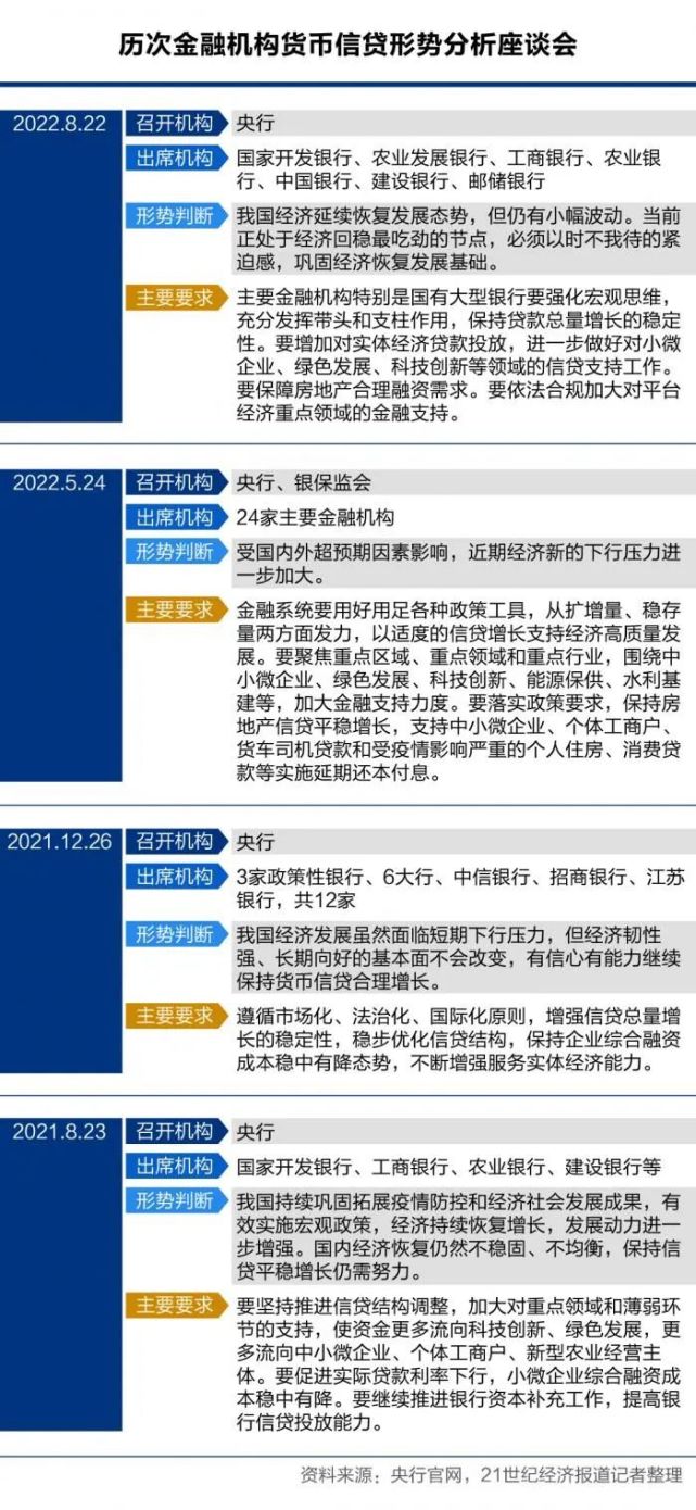 作 者丨李愿 编 辑丨曾芳 图 源丨图虫 8月22日,央行官网表现,当日央行召开部分金融机构货币信贷形势分析座谈会,央行行长、国务院金融委办公室主任易纲主持集会,分析研究当前货币信贷形势,摆设推进当前和下一阶段货币信贷工作。 集会指出,我国经济一连规复发展态势,但仍有小幅颠簸。当前正处于经济回稳最吃劲的节点,必须以时不我待的告急感,巩固经济规复发展根本。紧张金融机构特殊是国有大型银行要强化宏观头脑,充实发挥带头和支柱作用,保持贷款总量增长的稳固性等。 21世纪经济报道记者留意到,这是一年内,金融管理部分一连第四次召开货币信贷形势分析座谈会。前三次召开时间分别为2021年8月23日、2022年5月24日、2021年12月26日。 从参会机构来看,政策性/开辟性银行、大型银行是出席集会的常客,个别股份行、城商行两次出席集会。且昨日的集会也对大型银行、政策性/开辟性银行提出了新的要求。 “作为我国金融业的排头兵,在宏观经济运行承压的关键时候,大型商业银行积极作为,自动负担,通过精准直达的信贷投放助力实体经济走出疫情逆境。”中国银行研究院杜阳博士后表现。 中信证券首席经济学家显着以为,从汗青复盘看,货币信贷形势分析座谈会都表现了央行宽光荣目标,预计后续宽光荣效果徐徐显现的过程中也会陪同着资金利率向政策利率靠拢。 集会时点的选择 一年前的2021年8月23日,是央行比年来初次在8月召开货币信贷形势分析座谈会,令外界感到不测。一样平常来看,央行会于每年11月召开一年一度的货币信贷形势分析座谈会,如2018年11月15日、2019年11月19日(2020年未召开)。 “2021年货币信贷座谈会在8月下旬就早早召开,反映出央行对5月份以来信贷需求一连偏弱的担心,下一阶段,加大信贷投放力度、加强信贷总量增长,根本已经箭在弦上。”彼时,国泰君安证券分析师覃汉分析称。 从集会摆设来看,易纲在集会上夸大要继续做好跨周期计划,衔接好本年下半年和来岁上半年信贷工作,加大信贷对实体经济特殊是中小微企业的支持力度,加强信贷总量增长的稳固性,保持货币供应量和社会融资规模增速同名义经济增速根本匹配。 其时,这一集会的配景是2021年7月30日召开的政治局集会指出,“要做好宏观政策跨周期调治,保持宏观政策一连性、稳固性、可一连性,统筹做好今明两年宏观政策衔接,保持经济运行在公道区间。” “央行这一表述的涵义是督促银行及时放贷,平滑信贷节奏,赶早形成对实体的信贷支持,不要按照传统节奏本年四序度银行储备项目冲刺来岁开门红。”广发证券资深宏观分析师钟林楠分析称。 统计局数据表现,2021年一季度至四序度当季GDP增速分别为18.3%、7.9%、4.9%、4.0%,处于不绝下行的趋势。央行在2021年四序度货币政策实行陈诉中表现,妥当的货币政策机动精准、公道适度,强化跨周期调治,统筹做好跨年度政策衔接,货币政策服务实体经济的质量和服从不绝提拔。 2021年12月16日,央行例行召开集会,但集会时点较往年有所推迟。 本年5月23日,则是央行、银保监会团结召开金融机构货币信贷形势分析会,出席机构也是这四次集会中最多的一次。5月尾那段时间,单子出现了本年来的第三次“0利率”征象,预示着信贷投放较弱。 在央行、银保监会以及金融机构的积极下,上半年信贷投放同比客岁多增。央行数据表现,上半年人民币贷款增长13.68万亿元,同比多增9192亿元。 不外,7月信贷投放再次低于市场预期:7月份人民币贷款增长6790亿元,同比少增4042亿元。显着表现,7月金融数据表现显着走弱,实体融资需求不理想的同时,还必要鉴戒活动性陷阱。预计下一阶段团体以抓好政策步伐落实为主,对峙不搞“洪流漫灌”,结构性货币政策工具有进有退,政策性金融工具精准支持。 有哪些最新要求? 本年以来,在一系列政策组合下,6月以来宏观经济形势在徐徐规复,但并不牢固。 “当前正处于经济回稳最吃劲的节点,必须以时不我待的告急感,巩固经济规复发展根本。”央行货币信贷形势分析座谈会指出,金融体系要进一步进步政治站位,加强责任感,全面落实疫情要防住、经济要稳住、发展要安全的要求,将党中心、国务院各项决定摆设落实落细,保持经济运行在公道区间。详细来看: 紧张金融机构特殊是国有大型银行要强化宏观头脑,充实发挥带头和支柱作用,保持贷款总量增长的稳固性。要增长对实体经济贷款投放,进一步做好对小微企业、绿色发展、科技创新等范畴的信贷支持工作。要保障房地产公道融资需求。要依法合规加大对平台经济重点范畴的金融支持。 政策性开辟性银行要用好政策性开辟性金融工具,加大对网络型根本办法创建、财产升级根本办法创建、都会根本办法创建、农业农村根本办法创建、国家安全根本办法创建等重点范畴干系项目标支持力度,尽快形成实物工作量,并动员贷款投放。要对峙市场化、法治化原则,统筹信贷安稳增长和防范金融风险之间的关系。 大行方面,央行数据表现,停止7月末,中资大型银行各项贷款余额为987415.95亿元,较客岁末增长80462.55亿元,客岁同期增长62299.47亿元,本年同期同比多增18163.08亿元。 近期,多家银行一连召开年中工作集会,均聚焦稳经济。如工商银行表现,下半年要尽力以赴服务稳增长,进一步发挥大行引领作用,带头落实逆周期调治要求,高质量落实