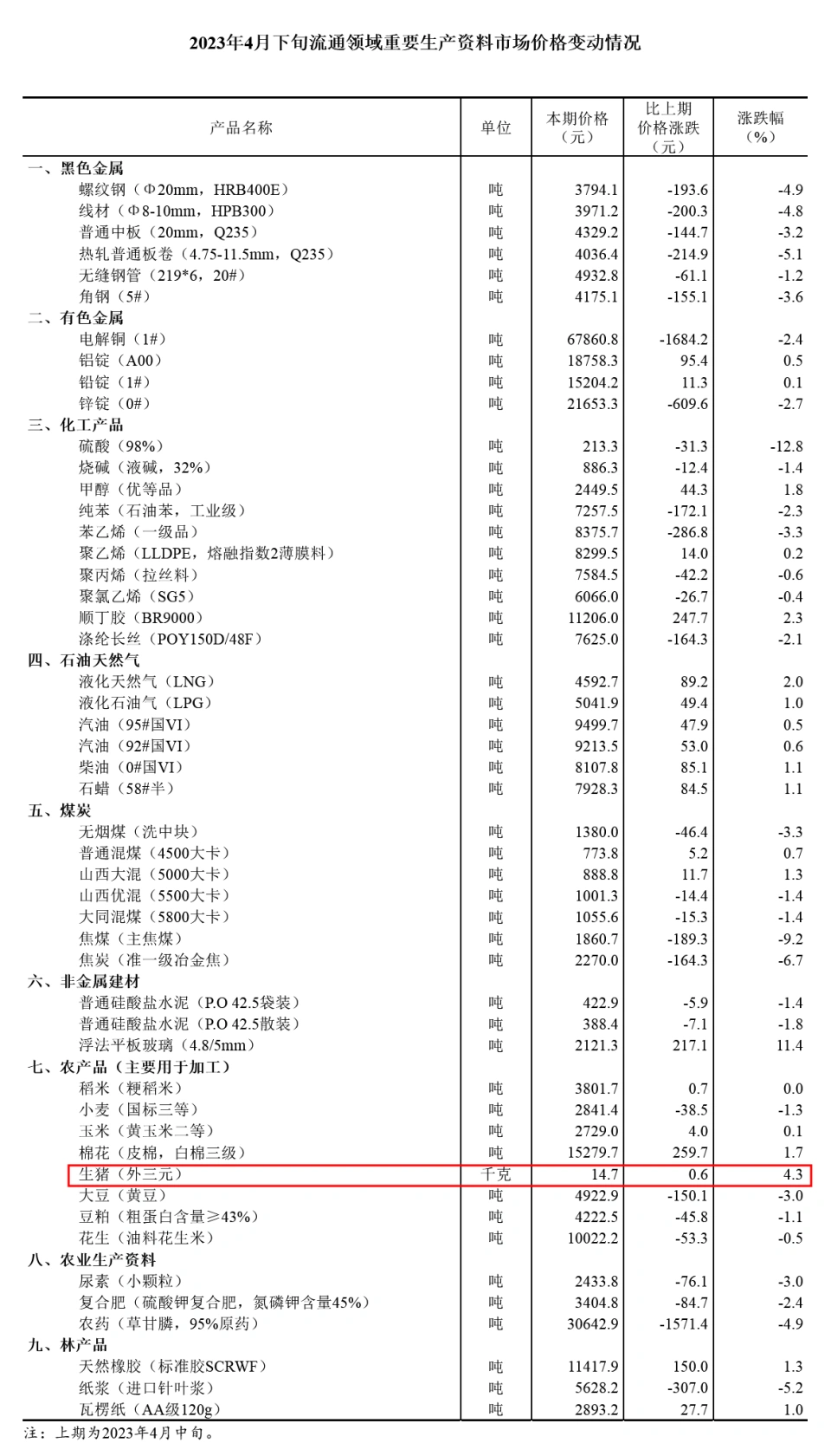 中新经纬5月7日电 国家统计局7日发布数据表现,据对天卑鄙畅范畴9大类50种紧张生产资料市场代价的监测表现,2023年4月下旬与4月中旬相比,19种产物代价上涨,30种降落,1种持平。此中,生猪(外三元)代价为14.7元/千克,比上期上涨4.3%。 从详细项目看,玄色金属产物全部下跌,热轧平凡板卷4036.4元/吨,下跌5.1%;螺纹钢3794.1元/吨,下跌4.9%;线材3971.2元/吨,下跌4.8%。 化工产物方面,硫酸(98%)跌幅最大,比上期降落12.8%。 农产物方面,生猪(外三元)代价为14.7元/千克,比上期上涨4.3%;大豆(黄豆)4922.9元/吨,比上期下跌3%。(中新经纬APP) |