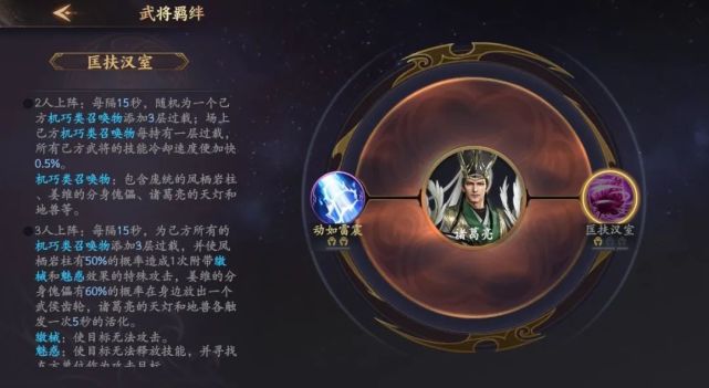 本日盟战公测正式开启,8月23日5:00-8月28日5:00,除了七大福利、全新"韬略"玩法、全新的养成,另有同盟顶峰赛火热PK中,这一战且看鹿死谁手? 颠末两日的火热报名,本日同盟顶峰赛将开启第一轮比赛,孰能率先拔得头筹?让我们一起拭目以待!各位请做好预备,让众人领教一下自己的风采! 不但云云,本日还给各位带来了玩家投稿的诸葛亮攻略,争先解锁八卦天灯,开释它的威力,率先赢下胜利! 01东风献好礼 · 金色马超皮肤免费送! 五虎上将之一,被关内诸侯称为锦马超,更被西凉人叫做神威天将军的悍将,焕新归来!作为单体伤害天花板之一,马超拥有超快的技能CD与暴击本事,在着上一身金色流光后更彰显强盛的发作力,可以大概助力各位驰骋浊世,涤荡风云!只需关注平台推送活动,即可领取~ · 卧龙诸葛、东吴大帝为你效力! 杜甫笔下“功盖分三国,名成八阵图”的卧龙诸葛亮借东风,匡扶汉室;而辛弃疾笔下“生子当如孙仲谋”的孙权也同样有着浊世王者之风。“卧龙兴汉”限时卡池开启,诸葛亮、孙权招募概率提拔,祝各位一发入魂! · 剑戟丛生扶蜀汉! 诸葛亮、姜维、庞统同时上阵即可触发强力拘束“匡扶汉室”,赋予三名武将更为强力霸道的特别攻击效果。别的,获取三名武将还能领取最高700元宝嘉奖! · 宝刀磨砺,且试锋芒! 琢磨了一套组合,不知道威力强不强盛?来全新福利活动“且试锋芒”,在这里可以寻衅包罗诸葛亮在内的浩繁武将,以及对应的强力拘束,而完成寻衅即可解锁关卡宝箱,领取超多福利! · 招募越多,嘉奖越多! 为强盛自己的队伍,招募富足的武将,为他们升品级乃重中之重!现累计斲丧不等数量的招募虎符,即可得到对应嘉奖:招募虎符、低级技能券以及铜币等;当累计斲丧肯定的虎符时,还能解锁得到周瑜永世皮肤—江左风流! · 奇珍异宝随心换? 珍奇宝库限时开启,珍稀道具自由兑换!各位只需完成逐日寻衅即可得到海量珍宝币。斲丧对应珍宝币,即可在珍奇宝库内为所欲为的兑换,招募虎符、中枢令、低级技能券、心得·佳等各种珍宝等着你! · 观天象,测方位! "风动溯江"于8月27日5:00—8月30日5:00期间限时返场!各位只需化身诸葛孔明,预判天象,投放战船,即可根据战船所处的位置解锁对应嘉奖,看看你的预判准禁绝! 注意:以上全部福利活动,除金色马超皮肤外,别的需开服8天以上的服务器方可参加~ 02诸葛亮攻略 千里东风献礼,七大福利活动,连大汉卧龙诸葛亮都助各位一臂之力,固然,本日也给各人准期奉上玩家投稿的诸葛亮攻略,让各位快速上手诸葛亮,解锁八卦天灯! 独家分析 在游戏中,诸葛亮是一名长途发作输出型武将,他的参加,无疑使得庞统、姜维的召唤流体系得到了完备的增补。 诸葛亮的焦点技能武侯八卦是一个发展性的技能,随着卦象的不绝解锁,为每次开释技能带来额外的收益,而且能产生额外的联动效果。完全体的诸葛亮八个卦象分身控制、范围伤害、连续伤害、单体伤害、增益效果、负面效果,一人便可掌控战场。 而庞统的控制及姜维的坦度包管了以诸葛亮为焦点的BD的启动时间,同时诸葛亮拥有极快的主动技能CD,在"匡扶汉室"拘束的加持下,极限CD可低沉至3秒,共同解锁武侯八卦强化主动技能,会是一场单方面碾压性的演出。 实用玩法 玩法:死守樊城、竞技场、战场夺魁等玩法 技能先容 天赋技能:"八卦乾坤" 发挥天卦召唤天灯,天灯会向迩来的敌方武将移动,每隔一段时间会电击四周的敌方对其造成伤害;若天灯已在场,则改为对天灯施加过载和护盾,并使天灯触发一次活化。 ▲天赋技能 -八卦乾坤 触发技能:"衡善机巧" 使天灯大概地兽活化,低沉二者的伤害时间隔断。 被动技能:"风劲泽困" 解锁可击退敌将、增长友将免伤率的巽卦和低沉敌将攻击速率、移动速率的兑卦。 被动技能:"制胜千里" 根据上阵的己方弓兵兵团数,增长诸葛亮的技能伤害。 被动技能:"高山流水" 解锁可令敌将寒冷的坎卦和可眩晕敌将并造成伤害的艮卦。 拘束阵容搭配 上周留给各位的线索非常显着,"匡扶汉室"的末了一人便是:卧龙—诸葛亮!除了"匡扶汉室"此等强力拘束之外,搭配郭嘉、夏侯惇、夏侯渊产生的效应也黑白常的强! 诸葛亮+姜维+庞统 主拘束:匡扶汉室(诸葛亮、姜维、庞统) 保举缘故原由:匡扶汉室可以大概最大水平的增强拘束武将的机巧类召唤物本事,而且提供的过载也能促使机巧类召唤物快速发展。 诸葛亮+郭嘉+夏侯惇+夏侯渊 主拘束:孟德腹心(郭嘉、夏侯惇、夏侯渊) 保举缘故原由:孟德腹心可以大概为己方武将提供复兴,并驱散负面状态,包管己方武将撑到战斗后期,通过数量浩繁以及高度强化的机巧召唤物摧毁对头。 除了以上两种搭配,"匡扶汉室"干系的拘束武将能提供大量的控制本事,为队伍夺取大量的时间,得当发展型、防守型队伍;大概搭配其他发作类武将构成"动如雷震"拘束,在开释主动技能时通过天雷或是地火造成大量伤害。 装备、宝物、战形、阵法保举 强力拘束的加持,显然是没办法发挥诸葛亮的本事最大化,还须要各种装备来共同! 【装备选择】 武器:八面玉环刀,可增长暴击率,搭配技能【八面惊岚】增长伤害。 饰品:卧狮白玉佩,可增长暴击率和破甲率,搭配技能【领田主宰】为己方武将增长免伤、增伤率。 【宝物选择】 宝物输出选择【上古珍宝套装】 当诸葛亮开释主动技能后,得到斗阵buff再次增长其伤害。 【战