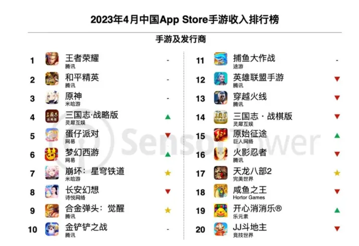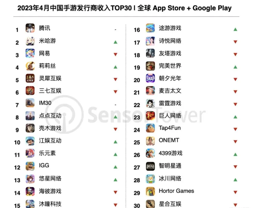 IT之家 5 月 5 日消息,Sensor Tower 市肆谍报平台体现,2023 年 4 月共 40 个中国厂商入围举世手游发行商收入榜 TOP100,合计吸金近 20 亿美元,占本期举世 TOP100 手游发行商收入 40%。 IT之家从排行榜中获取到,米哈游银河冒险计谋游戏《崩坏:星穹铁道》于 4 月 26 日上线,随即登顶中国 iOS 手游脱销榜,进入美日韩等重要市场前三。上市首周,该游戏在举世移动市场的下载量到达《原神》上市同期的 1.6 倍,收入为 1.3 倍。加上《原神》3.6 版本 「盛典与慧业」,4 月米哈游移动端收入环比增长 45%,重回榜单第 2 名。 在 SLG 新游《Call of Dragons》在西欧收入大幅增长、《Dislyte》登岸日韩市场的推动下,莉莉丝 4 月收入环比增长 39%,到达 1 亿美元。榜单之外,入围举世收入 TOP100 的中国手游发行商依次是好汉游戏、柠檬微趣、Mattel163、游族网络、有爱互娱、竞技天下、友爱韶光、波克都会、雅乐科技和多益网络共 40 家厂商。 由 SNK 正版授权的横版动作射击手游《合金弹头:觉醒》在 4 月 18 日上线,连续 5 天位列中国 iPhone 手游下载榜榜首,跃居 4 月 iOS 手游收入榜第 9 名,上线至今 5 星好评率凌驾 92%。 《原始征途》于 3 月 24 日上线,在 4 月进入 iOS 手游脱销榜第 15 名。巨人网络收入相应的环比增长 206%,初次入围发行商收入排行榜第 23 名。 |