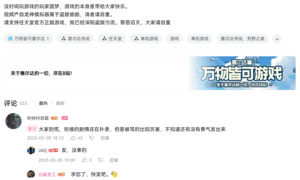“我不知道你想要什么,而我有的只是一些特别的本领,从我漫长的工作生活中学到的本领,足以成为你们这种人的噩梦的本领。” 这是影戏《飓风营救》中的一段经典台词,男主角是一名退休特工,而他珍视的女儿在观光途中遭遇了拐卖。老父亲接通了拐卖者的电话,向对方撂下了这段狠话,随后睁开了他的救济及复仇举措。 两天前,一名推特用户晒出了自己正在嬉戏偷跑版《塞尔达传说:王国之泪》的照片,随后已退休的美国任天国前总裁雷吉转发了这条推特,并配上了这段台词。 没过多久,该账号便从网络上消散了。 雷吉的品评区里,人们欢欣鼓舞。几天以来,《王国之泪》的偷跑玩家们在交际网站上频仍“跳脸”,雷吉的活动多少算是打压了这股嚣张气势。 但好景不长,很快就有人在品评区留下自己正在用电脑模拟器玩《王国之泪》的照片,并放话“我挑衅你,雷吉,来抓我呀”。 与此同时,岂论是在外洋的油管照旧国内的B站,《王国之泪》的偷跑嬉戏片断以致了局动画早已传得满天飞。 没什么人再数着倒计时 “隔断《王国之泪》发售另有X天”,由于这很大概引来那些“我都已经通关了,你还没玩儿上呢?”的留言;此前PV接连公布时的狂欢氛围消散不见,那些不肯意嬉戏偷跑及模拟器版本的玩家们纷纷选择当“鸵鸟”,不敢多去关注相干信息。 本来的“酸中带甜”的等待,化作了真正的苦等与煎熬。 1 自5月1日游戏内容公开泄漏以来,从外洋到国内,险些全部相干论坛上,支持与反对嬉戏“偷跑版”《王国之泪》的群体之间都早已吵翻了天。 国内也有不少人制作了视频或文章,向不太相识情况的轻度玩家表明“什么是偷跑”“游戏为什么会偷跑”。 可毕竟上各人心知肚明:“偷跑”反倒是这桩事故中不那么紧张的部分,但凡同步发售实体版本的游戏,险些都逃不开“偷跑”的运气。所幸如今大多只有主机版游戏还会发行实体版,即便有少部分泄漏,源文件也难以被举行翻录。 但是《王国之泪》不在此列。由于NS主机早被破解,PC上也已有相对美满的模拟器存在,偷跑的卡带很快被提取了源文件并传播,只要有台设置尚可的电脑就能直接玩上……这才有了如今“预购正版的玩家还没拿到游戏,却已经被玩通关的盗版玩家们困绕”的状态。 换而言之,“偷跑”只是一个引子,事故性子早已比这严峻得多。而之以是各人只公开谈外貌上的“偷跑”部分,肯定水平上是由于游戏圈子里曾经形成过一种“避谈破解”的默契。 已往有一段时间,国内的游戏媒体以致连播报游戏偷跑或是主机被破解的相干消息,都会招致玩家品评,被以为是一种“变相宣传”。 但随着国内玩家基数扩张以及《王国之泪》的“破圈”,这种默契实质上已不复存在。 即便游戏媒体对相干讯息避而不谈,其他有关无关的媒体仍会推送 “《王国之泪》已被破解”的消息,以致还会将“模拟器可玩”标红,就仿佛这是什么值得到处奔告的打折讯息。 在这类消息的品评区里,也很轻易找到“破解玩家”们的留言,差异于所谓的“跳脸”或是“讽刺正版”,这些玩家实在表现得相当坦然,说自己玩破解就好像在说“已预购”“已下载”,像是完全没有思量过“正版、盗版”之类的标题。 对于国内一些玩家而言,《王国之泪》的偷跑事故就像是捅破了一层窗户纸,让很多人意识到“支持正版游戏”如许看起来理所固然的事,实在远未成为共识。 如许的现实打击给“正版玩家”们带来的委曲与苦闷,肯定水平上凌驾了游戏偷跑和剧透自己。 2 正版玩家们想不明白:“玩就玩了,明显是见不得人的事,破解玩家为什么非要来跳脸”;盗版利用者好像也搞不懂:“我玩都玩了,游戏公司都不能拿我怎么样,凭什么还要看你正版玩家的心情”。 如今在百度“塞尔达传说吧”,吧主将《关于王国之泪偷跑、剧透、破解资源的处置惩罚》的帖子挂到了置顶,只管克制了用户们在吧内发布相干内容,但吧务团队照旧在文中表达了一些态度“各人要偷跑就偷偷玩”。 这同样是长期以来玩家间徐徐形成的一种默契:“正盗版之争”由来已久且得陇望蜀,身处同一社区的人们终极选择在肯定水平上搁置争议,来变更一个相对有益的讨论情况。 但这种默契只能存在于有着职员管理或是用户高度自治的小型社区内,在更多的开放社区,如今围绕着《王国之泪》的闹剧足以用“群魔乱舞”来形容。 B站上,只管一些剧透视频已经被举报删除,但仍有UP主前赴后继地举行上传,一边嘴上说着“请支持正版”,一边又在品评区里问自己的受众“还想看什么?” 有UP主直播玩《旷野之息》,却被误以为是在玩破解版《王国之泪》,引来一众人弹幕留言:“你也有本日”“思量过正版玩家的感受吗?” 在知乎,偷跑相干标题下得票数最高的是所谓的“回旋镖语录”,答复者和附和者们以为当初《原神》等手游遭遇内容泄漏时,塞尔达玩家都是报以幸灾乐祸的态度,如今该轮到他们被雪上加霜了。 在贴吧和NGA,都有用户声称自己发动了“核武器”,已向海关总署举报《王国之泪》涉嫌私运,言下之意:“看不起玩盗版?那正版也别想玩了!” 就连面对这些举报者,玩家们的态度也算不上同一——有人以为这种举动纯属挑梁小丑,不会造成现实影响;有人则反驳以“那你如今给我去网店找找《生化危急》和《动物森友会》”,以为前者说风凉话的自大来得毫无原