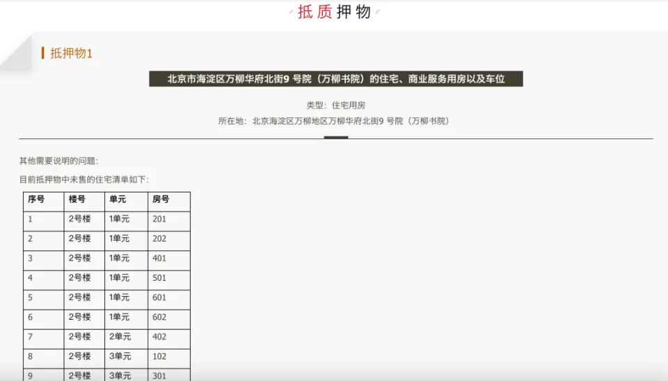 每经编辑:程鹏,盖源源 年初,一段5秒的“万柳书院少爷”视频让北京万柳书院豪宅火出圈,天下皆知。迩来,该豪宅陷入了抵押风波。 5月7日,京东拍卖网站挂出了一则“北京赫华恒瑞房地产开辟有限公司不良债权转让项目”推介信息,中国信达北京分公司对47亿不良债权举行转让,对应的抵押物中便包罗万柳书院75套住宅。制止发稿,这则公告引来1万+次围观以及吸引了30名意向人。是现在中国信达全部招商债权中关注度最高的一个。 万柳书院是北京着名豪宅项目,开辟商中赫置地11年前击退一众房企,以26.3亿元的代价拿下这块地,并在2015年以14.5万元/平方米的代价推出项目。客岁该小区一套300平方米的法拍房,拍出36万元/平方米的高价,再次在业内名声大噪。 据中国基金报援引此前公开报道,万柳书院共14栋板楼,5-7层南北通透花圃洋房,一梯一户,2-3个单元,每套房在205-558平米之间不等,统共301户,而且早已售罄。 但是在此次京东拍卖公告详情里,万柳书院小区此次被挂牌转让的75套住宅楼号、单元号和房号均已详细列出,房源状态为“未售”。 一次债权转让,折射了北京顶豪万柳书院的“家底”。 万柳书院75套未售住宅被抵押 知情人士:属通例融资举动 日前,京东法拍上架了一则来自中国信达的资产推介消息,中国信达资产管理股份有限公司北京市分公司(下称信达北分)作为处理主体,转让北京赫华恒瑞房地产开辟有限公司(下称主债务人)46.9505亿元的不良债权,此中债权本金达37.5亿元,利钱和其他费用暂不详。 这次推介之以是引发关注,重点在于主债务人拿出的抵押物——北京着名豪宅万柳书院75套房产。 如果根据这次债权上拍的46.9505亿元盘算,这75套房源的均价约6266万元。若按中原地产这5套房源中面积最小的218平方米盘算,单价也要约28.7万元/平方米。 但如果企业是多年前做的抵押,而抵押价低于时价的话,则现在仍难以全面归还债务。 现在,这笔推介已经有30位意向人,围观次数已达1万+。 根据推介公告,中赫团体是共同债务人。万柳书院是主债务人名下现在唯一开辟和贩卖的楼盘,属于现房贩卖,已售房产已经正常交房和入住。项目到期日为2025年3月份,债务人曾存在逾期等违约情况。 北京豪宅圈有句顺口溜“万柳的墙,西宸的缸,霄八的顶,融创的湖,紫辰院的树,北平府的院子住着谁”,起首提到的就是万柳书院。由于绝佳的地理位置和教诲资源,万柳书院备受高净值人群青睐,网传遐想团体首创人柳传志、滴滴出行总裁柳青等均在此有房。 在此次法拍之前,百万元天价停车位、法拍房36万元/平方米成交等,都是围绕在万柳书院身上的秘密光环。海淀焦点区位,名校围绕,早已一房难求。且动辄数万万元以致上亿元的房价,让万柳险些成为都城顶豪的代名词。 然而,此则京东法拍公告曝出后又疑云重重。据此前媒体报道,万柳书院统共301户,而且早已售罄。但现在75套住宅全部体现未出售。据第一财经,也有未经证实的消息称,这75套房现实已经卖出、只是还没网签。一位专做北京豪宅的中介张峰(化名)告诉记者,万柳书院前两年就卖完了,这70多套房子已经卖出,客户交完钱、大部门已经入住了。但是开辟商之前把这些房子抵押出去,现在还没资金解抵押,以是不能网签、没办房本。 《逐日经济消息》记者相识到,债务所涉75套抵押房涉及2、3、4、5、6、7、8、9号楼,以及12、13、14、15号楼。随跋文者从北京市建委网站查询,抵押房属于未贩卖状态。 以15号楼为例,北京市住建委网签表中的“未签约”状态房源,与京东法拍给出的15号楼抵押房源划一,为101、102、301、302。 据北京市住建委数据,万柳书院2015年1月拿到首张2号楼的预售证,答应贩卖套数56套,拟售代价14.1万元/平方米;已签约住宅套数38套,成交均价15.36万元/平方米。 2015年7月,万柳书院拿到12号楼5套房的预售证,拟售代价来到16.5万元/平方米,现在网签2套,成交均价20.8万元/平方米。 记者从知情人处获悉,房企由于借债而抵押的住房,只能是未贩卖房源,否则会出现一房两卖。也就是说,现在已购房的业主没有丧失,“房子未出售就抵押了,业主长处没有丧失。” 另据央广网,北京金诉状师变乱所实验主任王佳红状师则表现,如果房屋已经售卖,就要确定业主是否拥有优先权,同时业主可以提出实验贰言,如许房源或不能被抵押查封拍卖。 靠近中赫团体的知情人士对记者表现,对不良债权的处理属于通例融资举动,现在中国信达北分与中赫团体正在就抵押物处理等题目举行积极协商,或将于近期有新动作。 一套房过亿 秘密开辟商却成了“老赖” 在北京,顶级豪宅小区万柳书院着名度极高,超40亿元的债权转让更是让背后开辟商也走入大众视野。 据第一财经,作为万柳书院的开辟方,中赫团体在业内较为低调,首创人周金辉也非常秘密,他曾被选为中国文化财产协会副会长,同属该职位的人另有马云、马化腾等大佬,厥后周金辉卸任了该职务。 现在可见的信息体现,周金辉1974年出生于河北定州市,父亲是寻常工人。周金辉从前在唐山做小交易,之后与李彩霞等人涉足房地产,创建了唐山新绿洲房地产开辟有限公司,在唐山得到第一桶金之后,周金辉开始赴京发展。 2005年,中赫团体在京创建,最开始业务会合在投资房地产开辟以及装饰工程等范畴。2006年,中赫置地创建,是中赫团体旗下全资子公司,开始走高端豪宅蹊径,在