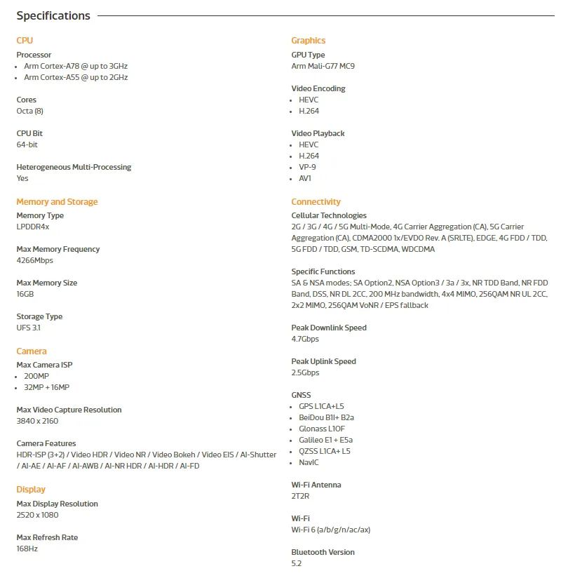 IT之家 5 月 9 日消息,联发科技(MediaTek)本日发布了天玑 8050 处置惩罚器,但这并不是一款新处置惩罚器,由于它与天玑 1300 和 1200 根本类似。 这款芯片接纳台积电 6 纳米工艺制造,集成了 5G 调制解调器,支持 5G 双卡功能。天玑 8050 拥有八核心 CPU,此中四个是性能强劲的 Arm Cortex-A78 核心,最高主频可达 3GHz,别的四个是节能的 Arm Cortex-A55 核心。别的,天玑 8050 还配备了九核心的 Arm Mali-G77 GPU,支持四通道 LPDDR4x 内存和双通道 UFS 3.1 存储,支持最大分辨率为 2520x1080px、最大革新率为 168Hz 的表现屏。 天玑 8050 支持最高 2 亿像素的摄像头,可以拍摄 4K HDR 视频。天玑 8050 还利用多核 AI 处置惩罚器 APU 570 实现了 AI 降噪、AI 曝光和 AI 物体追踪等功能,提拔了图像质量和精度。别的,天玑 8050 还支持 HDR10 + 视频播放和 AV1 硬件解码。 IT之家留意到,天玑 8050 已经搭载于刚刚发布的传音 Camon 20 Premier 5G 手机。 |