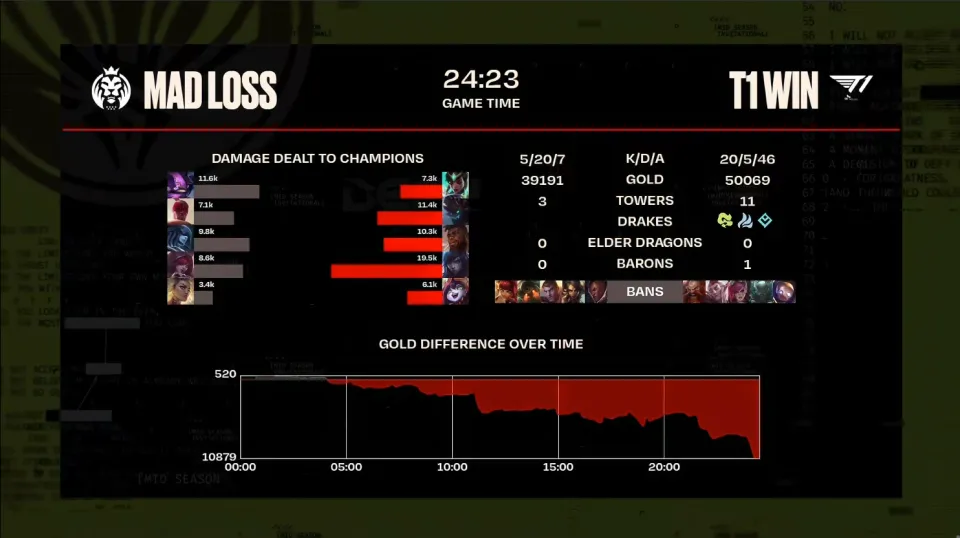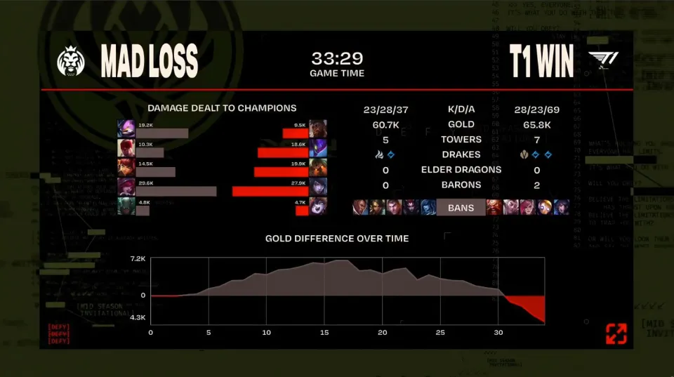 随着LCK一号种子碱基,轻松的以三比一的比分,横扫了LEC二号种子,S9 MSI冠军G2之后,本届MSI的八强镌汰赛就正式拉开了帷幕。 八强镌汰赛第二天的比赛,由LCK二号种子T1战队,对阵LEC一号种子MAD战队。坦白地讲,看过G2的体现之后,囧王者不再等候这一届的LEC战队能玩出任何所谓的“文艺复兴”大概黑科技了。两个赛区之间的差距,已经可以说是天差地别了。。 在赛前的数据对比中,更是用冷冰冰的数据具体的论述了两支队伍之间的差距。除了场均时长和场均15分钟经济差之外,其他的数据诸如“场均小龙”,“一塔率”,“一血率”等,MAD均大幅落后于T1。坦白地讲,这一场BO5,除了T1自行拉垮之外,囧王者看不到MAD任何得胜的盼望! 第一局比赛,MAD蓝色方,禁用卢锡安,豹女,杰斯,蜘蛛,冰女,选用凯南、盲僧、安妮、霞、派克;T1赤色方,禁用酒桶,洛,蔚,呆板人,阿狸,选用奎桑提、螳螂、泰坦、厄斐琉斯、璐璐。 让人千万没想到的是,赛前都以为MAD会玩花活儿,效果却是T1玩了花活儿,他们让Faker玩了一个深海泰坦。而故意思是,在T1整活儿的时间,MAD简直就是天胡开局,他们通过中野联动强行逼团,一招打懵了T1。MAD在前15分钟,竟然打出了高出7000的经济上风。有这么大的上风,放在任何一支队伍内里,都可以滚雪球平推得胜(EDG除外)的局,竟然被MAD活生生的给玩输了。 T1在Faker的带领下,韧性十足,多次在经济落后的环境下,泰坦白先开团,频仍打赢小规模团战后,T1完成绝境翻盘!终极33分29秒,Faker的泰坦再次先手开团,霞直接被秒后,T1完成一波0换3团战,一波闭幕比赛。 第二局比赛,MAD留在蓝色方,禁用卢锡安,豹女,杰斯,泰坦,安妮,选用凯南、盲僧、冰女、霞、芮尔;T1赤色方,禁用酒桶,洛,蔚,派克,呆板人,选用扇子妈、大树、奎桑提、厄斐琉斯、露露。 MAD输掉天胡开局的第一局后,在第二局比赛中原形毕露,完全不是T1一合之敌。第二局的T1,小吕布站了出来,以冠绝全场的伤害值,带领T1在24分23秒内,轻松刷了一波数据。这种速胜局,没有复盘的须要!在这里,囧王者等候一波,T1会不会人情调皮一局! 第三局比赛,MAD头铁蓝色方,禁用卢锡安,豹女,厄斐琉斯,璐璐,杰斯,选用奎桑提、盲僧、卡牌、伊泽瑞尔、安妮;T1赤色方,禁用酒桶,洛,蔚,派克,凯南, 连输两局的MAD,在第三局比赛中直接被打至崩盘,全队毫无节奏和战斗欲望。碱基对阵G2时,好歹还“人情调皮”的放了一局水,效果面临过于弱势的MAD这一局,T1连演都不想演了,直接1650速通。这就是电子竞技,过于弱势的战队,连人情调皮都没有了! 本届MSI两场八强战看下来之后,囧王者以为LCK和LEC的差距越来越大了。从前还可以依附黑科技和文艺复兴打法,和LCK掰掰手腕,乃至夺冠的LEC,已经渐行渐远。这一届的LEC春季冠亚军,大抵是欧洲最弱的冠亚军了。而T1就不谈了,第三局玩一把向1557致敬的1647,也算是不错了。坦白地讲,这两场比赛应该把欧洲打醒了吧?假如不调解,就和LCS一起去养老吧! |