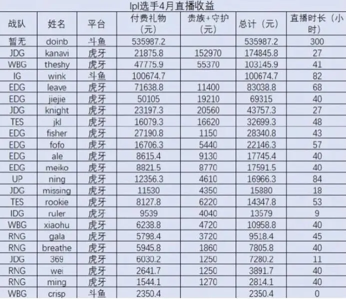 迩来关于电竞圈的热度是许多人在讨论的,信赖各人也时间在关注,这两人msi的赛事相称出色,不外各人也不要把全部的留意力都会集在msi上,着实电竞圈尚有许多好玩的事变发生,好比迩来LPL选手直播收入榜公布了。 这次统计的数据是4月份一个月了的数据,许多职业选手在这段时间都直播了,由于选手们签条约是有直播时长要求的,一样平常一个月是不低于40小时,他们通例赛一样平常没直播,用心打角逐,到赛季竣事的休赛期才会直播,于是4月份就成为了选手直播的最佳时间。 从这个名单内里可以看到,选手之间的差距照旧非常大的,不能以偏概全,不外可以看个大概,这个排名内里doinb是毫无疑问的贫困了第一名,由于他一个月在线的时间达300小时,也就是每天大概直播10小时,一个月狂赚53万的礼品。 不得不敬佩doinb的铁人精力啊,着实这也正常,之前就有关于doinb一年的直播时长,其时他还在打职业角逐,以是直播时间没如今长,但是一年下来也直播了2000个小时左右,算下来一天也有5个多小时在直播,如今暂离赛场,那就把更多的时间投入直播,因此有了如许的数据。 而第二名居然是JDG的打野kanavi,他直播只有27小时,但是也收入了17万多,也是相称可骇的存在,然后是theshy,刚好卡住40小时的门槛,一个月直播了41小时,收入也有10万左右,尚有wink直播了82小时,收入也是10万,这几个人就是收入10万以上的选手,其他人都是10万以下了。 从这个名单内里可以看出来,一些顶级选手的收入都不会低的,而且他们直播也不须要向粉丝要礼品,偶然候乃至连粉丝送礼的感谢都不须要,他们是通过本身的力气征服粉丝的,并不须要和其他主播一样要继承。 固然了,doinb完满是一个例外,他的力气被各人认可,而他的性格又非常外向,有礼品也会高声的感谢,也是由于他风趣的性格,他的直播热度不停都很高,各人为本身的笑声送礼品也无可厚非,盼望他能来越好吧,早上回归职业赛场,对此你们有什么想说的吗? |