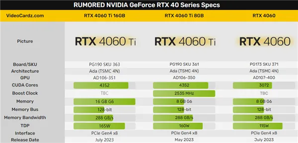 NVIDIA这两年在显存上特殊吝啬,无论位宽照旧容量都舍不得给,面临高分辨率高画质游戏显着力有未逮,AMD也以此大做文章。 即将在本月第发布的主流新卡RTX 4060 Ti,标配128位8GB GDDR6显存,仍然抠抠索索,不外这一次,NVIDIA还准备了一个16GB版本。 换言之,RTX 4060 Ti的显存容量,要比RTX 4070系列都大,直接媲美RTX 4080。 这也不是NVIDIA第一次这么干了,RTX 3060 12GB版就直接盖过了RTX 3080 10GB,RTX 2060 12GB版力压RTX 2080 Ti 11GB…… 根据最新曝料,RTX 4060 Ti 16GB的焦点编号为AD106-351、公版PCB编号为PG190-363,有别于8GB显存版本的AD106-350、PG190-361。 这暗示着,显存容量翻番的同时,GPU物理焦点应该也略有差别。 RTX 4060 Ti 16GB的焦点规格保持划一,照旧4352个CUDA焦点、128-bit位宽、PCIe 4.0 x8体系总线,不外功耗会稍稍有所增长,从160W来到165W。 至于显存容量是否保持在18GHz,暂时不详。 |