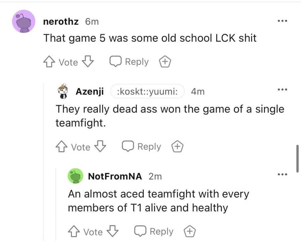 MSI胜者组T1和GEN的比赛,双方打满5局之后,T1拒绝让二追三,乐成以3-2的战绩有惊无险击败GEN,晋级下一轮。很快这场比赛也引发了大量外洋网友的热议,一起来看看他们的观点是什么吧! -就如许竣事了? -说真话有点有头无尾。 -这是什么了局? -看起来两队气力靠近,然后突然天平倾斜,很扯的了局。 -全坦克装的奎桑提团战切死了ADC,确实不错。 -GEN输给奎桑提真的该死。 -由于Doran选了格温。 -奎桑提这个豪杰真的做坏了,我不敢信任Riot让这个豪杰出现在MSI上,他的伤害太高了,而且生存本事太强了。 -天啊,T1队员们没有头昏。 -别担心,由于这不是决赛。 -第五局看到一半我去上厕所了,返来后比赛竣事了。 -Bengi和T1应该松了一口吻,由于这场比赛原来应该是3-0。感谢T1队员们没故意态瓦解,由于第三局他们送输了,第四局又被暴打了,大多数选手都会心态瓦解的。这场BO5的FMVP我会给Gumayusi。 -T1战术性地输掉2场比赛,以便可以尽早降服他们第五局的生理停滞,他们做到了! -Gumayusi是T1最稳固和最可靠的选手。 -第五局有点LCK的复古味道了。 -在赢下一波团战后游戏突然竣事。 -险些可以说是团灭了对手,而T1每个都康健地在世。 -25分钟5个击杀,26分钟团战得胜比赛竣事。 -GEN将成为败者组的威胁。 -我承认在第三局之后,我对于T1有点畏惧和担心,但是感谢天主这不是决赛。 -T1真的必要这场胜利,无法想象如果他们输了这场BO5,生理压力会有多大。 -想象一下如果GEN赢下了这个BO5,该有多传奇。 -想象一下卡车。 -LCK战队一天输了5场比赛,太菜了。 -Faker照旧打得很好,他依然是最佳中单。 -GEN不幸在决赛前遇到了T1。 -像奎桑提如许的豪杰很容易让玩家提前退出游戏。 -我不敢信任Faker在10年后打得这么好。 -没关系的,GEN会从败者组返来的。 -Doran和delight打得太差了。 -经典的LCK比赛。 -2023年版本的IG vs KT。 -我发誓T1最大的仇人就是他们自己。 -Faker在团战中干掉了Peyz,太锋利了。 -固然打得很好,但是我仍然信任T1会输掉决赛。 -2016年天下赛总决赛复赛! -我不高兴目到这种比赛,就是双方在很长一段时间里旗鼓相当,然后突然一波团战就赢下了比赛,感觉很无聊。 -Gumayusi是Peyz的爸爸。 -Doran的格温是我见过最糟糕的格温。 -刚去倒了杯咖啡,返来T1已经在拆GEN基地了。 -这才是我想看的国际大赛,就是这个,我想看更多这种对决。 -为什么不绝让doran玩非坦克豪杰? -等不及看T1和JDG的比赛了。 那么,对于这些外洋网友们的观点,你们有什么想说的吗?接待在品评区留言探究。想看更多外网热议的话,关注贝塔吧! |