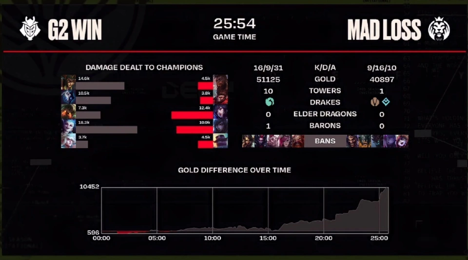各位LPL的观众和洽汉同盟召唤师各人好,这里是天鄙俚戏汇。 MSI季中冠军赛进入全面内战环节,昨天晚上率先举行一场,然后在破晓0点,留给欧洲观众的角逐也竣事了,终极败者组的G2是以3-0的比分轻松横扫MAD。 完成横扫后,MSI的复仇脚本因此诞生,MAD被彻底钉在MSI汗青的羞耻柱上。 欧洲雄狮MAD,突破汗青下限MAD在以0-3输掉与G2的对决之后,成为了MSI汗青上第一支在正赛阶段中未能拿下一场胜利的队伍,在两轮胜负分组赛中,MAD均被横扫,终极战绩0胜6负,作为LEC赛区的一号种子,率先被镌汰出局,也被钉在了汗青的羞耻柱上。 在MAD突破汗青下限之后,欧洲观众开始细数MAD这支队伍这几年的一个天下赛汗青,这支队伍自从崛起之后,在天下赛舞台上就没有打出过什么好效果。 在S10和S12天下赛,MAD在入围赛阶段就被镌汰出局,2021年拿下春夏双冠军,被DK双杀,唯一拿得脱手的战绩就是和DK打到第五局,除此之外再无高光。 客岁天下赛,MAD是欧洲赛区唯逐一支一场BO5不赢就晋级天下赛的队伍(由于赛制),而本年春季赛,MAD是实现了史无前例的一穿六神迹,在季后赛阶段从败者组杀上来后百战百胜拿下冠军。 过程中也包罗了对阵G2的角逐,打满五局乐成击败G2。 MSI复仇脚本诞生,JDG要鉴戒了MSI进入到全面内战的环节之后,前两场角逐,全部出现了复仇乐成的脚本,此中T1对阵GEN的角逐是现在MSI季中冠军赛中唯逐一个打满五局的BO5,末了T1是拒绝让二追三乐成复仇GEN。 着实第三局角逐T1有时机完成横扫,但两波决议上的失误被GEN捉住了时机完成翻盘。 加上MAD被G2复仇,MSI已经出现了两个复仇乐成的案例,接下来还剩下两场比力,分别是LPL的春决和LCS的春决。 看到如许的复仇脚本,观众们也是直呼JDG要鉴戒了,对阵BLG的角逐须要做好准备。 从硬气力的角度而言,更多观众看好的是JDG,但BLG这支队伍不绝以来带有不可猜测的属性,有大概在对阵JDG的角逐中发作出让人意想不到的能量,好比上一场BLG对阵C9的角逐中,Bin就显现出了最好的竞技状态。 而且BLG还在隐蔽本身的气力,可以预见的是BLG打JDG,会拿出一些让人意想不到的好汉套路,JDG方面也是一样,也没有拿出尽力,面临BLG准备见招拆招。 胜者组紧张性,非赢不可的战斗这里须要提示各人的是,MSI本次接纳的胜负分组赛,第二轮的紧张性好坏常高的,就是这一组内战的胜者组角逐,赢家着实可以占据非常大的上风,乃至比胜者组决赛还要更紧张。 T1现在就站在一个非常有利的位置,GEN方面,须要起首面临GG和C9之间的胜者,赢了之后,大概率要打一场中韩赛区队伍之间的存亡战,只有赢下这一场才华进入前三,而T1现在已经锁定了前三的位置。 由于T1赢了,晋级胜者组决赛,就算输掉胜者组决赛,也可以等在守擂的位置,只要再赢一个BO5就可以重返决赛。 BLG和JDG方面,谁赢谁就站在和T1划一上风的位置,输掉的队伍就没有容错。 这是胜者组队伍应得的上风,对于LPL赛区的队伍来说,进入败者组的队伍也会被观众寄予厚望,渴望这支队伍可以或许在即将举行的未来的中韩赛区存亡战中拿下角逐。 |