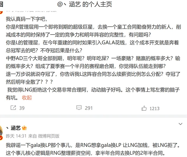 前导:迩来有各种RNG“拆队”的消息,我们已经见责不怪了。每个赛季都有类似的说法,比如RNG没钱留住选手,小明退役、呼吸哥、wei、gala等人离队等等。不外,这次的说法好像有点“新意”,LPL多位知情人爆出RNG拆队的历程。 RNG把别队当成大冤种?知情人:打野、ad都往外送 起首是恋恋红茶,观众问gala去了那里,她表现要看LNG愿不肯意买。我们本以为RNG不想放人,LNG对峙拿一万万买gala,还附带一个LP,恋恋红茶否认了这种说法,是RNG想转会LNG不要;其次是涵艺,他详细表明白RNG为什么想卖gala,以及LNG为何拒绝一位明星选手。 缘故起因很简朴,Gala的条约只剩下半年了,RNG知道留不住大概不想留他,用一个gala换一万万加上LP,可太划算了。LNG拒绝生意业务的缘故起因也很简朴,他们已经有了明星中野,淹灭不少。假如再买一个gala须要花更多钱,但LNG不确定能不能出结果。左雾不敢花这么多,否则下个赛季没法买人了。就算真的夺冠,如今条约也不符合,gala跟RNG之间只剩半年条约,意味着就算他跟LNG签约也只能打半年。夏季赛竣事条约到期,续约薪资怎样分配,岂非让LNG成为下一个DRX吗? 思量到以上这些因素,LNG是不敢让gala转会的。不如等条约到期再去夺取他,省下一笔转会费不说,还偶尔机与gala签长条约。末了,电竞圈77号提到了打野wei的归属,原来RNG还想把他送走,真的要拆队了。 一份半年条约,只打夏季赛却要价九百万以致一万万 根据77号的说法,RNG以致不想彻底放手wei,只允许租借选手,半年时间就要八百万以致九百万,真的把其他队伍当“大冤种”了。gala的半年条约一万万加一个lp,wei的半年条约要价九百万,RNG高看这些队伍了。 着实我们都知道,LPL战队越来越“节流”了。一来赛区有工资帽规则,不能给太高年薪;二来战队没钱,只能得当降薪;三来很多选手没了直播条约,赢利越来越少。我记得RNG曾与BLG互换上单,操纵呼吸哥和bin的转会,为的就是省钱。 为什么RNG还会以为其他队伍很有钱,可以花近万万买一份半年的条约呢?这也太高估别的战队了。RNG本身都不肯意费钱买明星选手,能抽卡就抽卡,抽不了就等转会竣事再“捡漏”,却要其他队伍拿高转会费,有点能人所难。 总结 固然这些都是知情人的消息,我们无法确认其真实性。不外按照过往的履历,一个人说RNG“拆队”有大概是假的,几个人都说选手转会的话,真实性较高。恋恋红茶说RNG买不到符合中单,以为夏季赛打不成结果想“拆队”,租借wei的话下个赛季可以买返来,简直对上了。 |