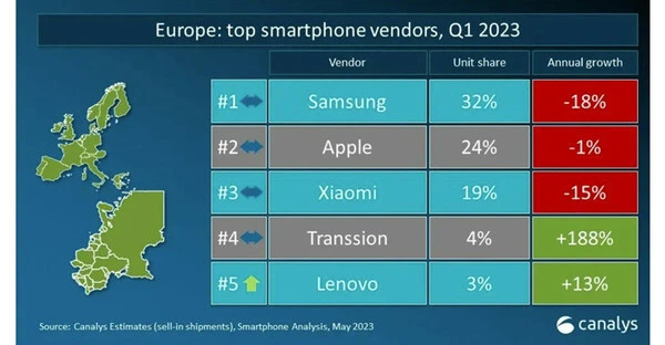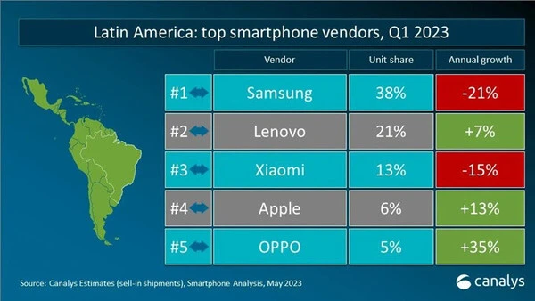 【手机中国消息】5月15日,Canalys公布了2023年第一季度举世智能手机重点市场厂商排名,从总榜单看,三星以6030万部的出货量排名第一,苹果则以5800万部的出货量位居第二,国产物牌小米则以3050万部的出货量排名第三。不外值得一提的是,遐想旗下的手机品牌摩托罗拉在本年一季度体现抢眼,在欧洲、拉美等重点地区均实现逆势增长。 摩托罗拉 数据体现,在欧洲手机市场,一季度销量最高的品牌为三星,市场份额为32%,不外增长率却降落了18%,排名第二的苹果和第三的小米也都出现了下滑趋势。不外和上述三家差别的是,排名第四的传音和第五的遐想却出现逆势增长,此中传音年增长率高达188%,而遐想则依附13%的增幅杀到了第五。 欧洲手机市场数据 而在举世五大市场之一的巴西和其地点的拉丁美洲,遐想手机所占的市场份额更是仅次于三星稳居第二。其一季度在巴西的手机市场占据了31%的市场份额,年增长率为5%。而在整个拉丁美洲,遐想一季度市场份额为21%,年增长率为7%。 巴西手机市场数据 拉丁美洲手机市场数据 此前有消息称,遐想即将在6月发布新折叠屏手机摩托罗拉Razr 40 Ultra。据悉,新机或将配备一块尺寸达3.5英寸-3.6英寸的超大副屏,内屏尺寸则为6.7英寸、1080P分辨率高刷屏。新机将接纳第一代骁龙8+移动平台,并配备12GB+512GB存储。 |