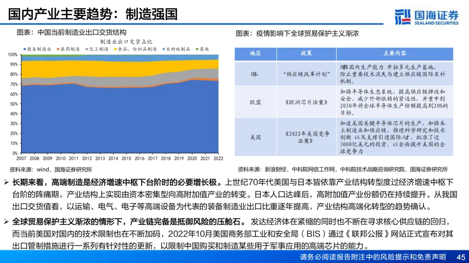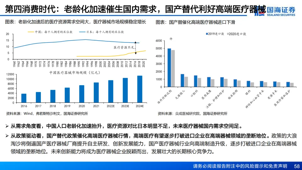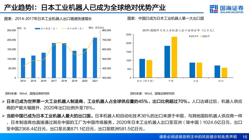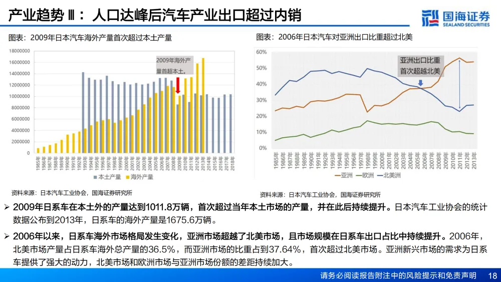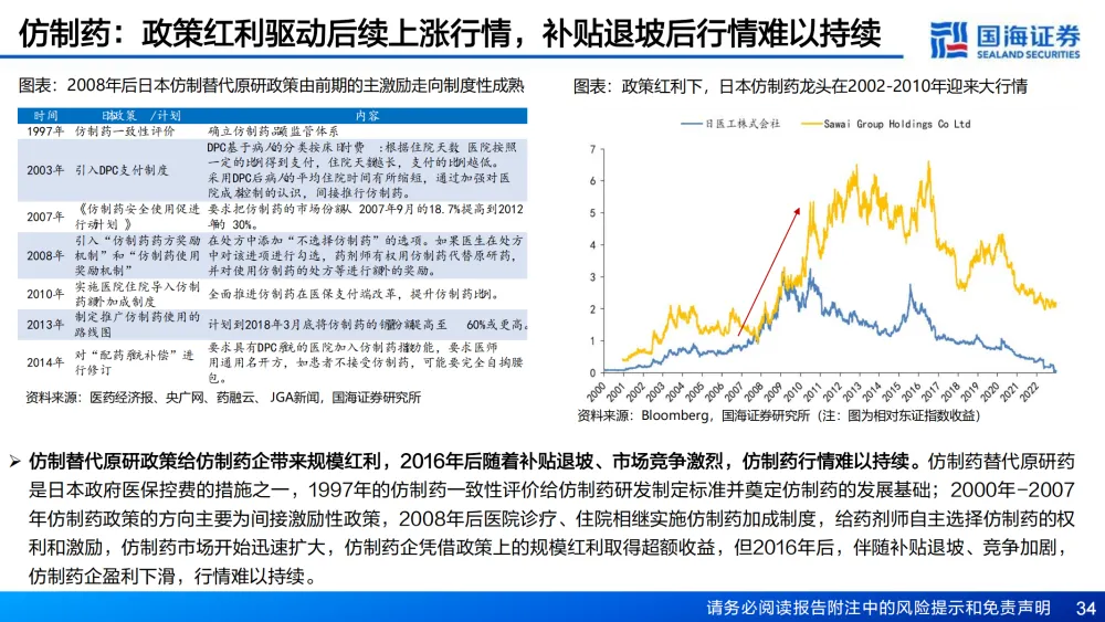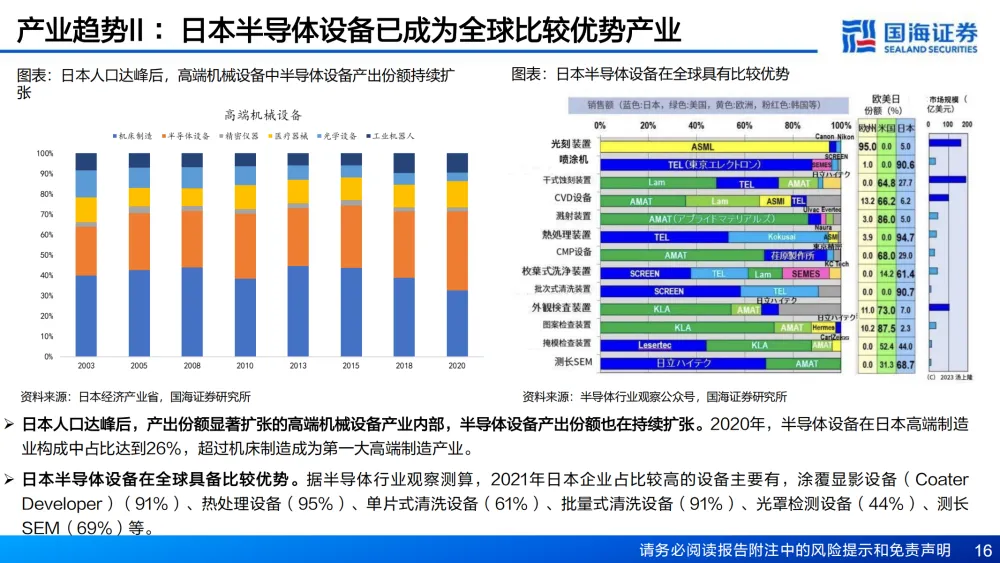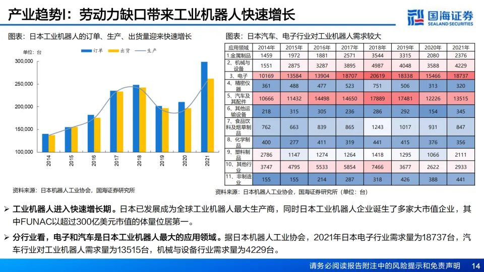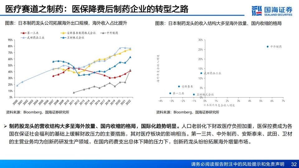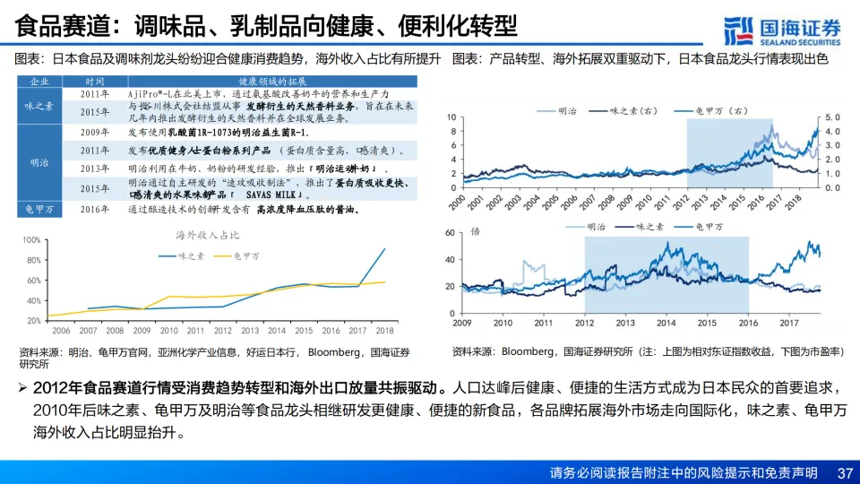 (陈诉出品方/作者:国海证券,胡国鹏,陈婉妤) 核心观点:日本生齿在“超少子化”阶段中履历了劳动力生齿达峰以及生齿总量的达峰,对于宏观经济的影响重要在于公共投资和地产投资的回落,制造业和 斲丧出现出结构性变革。停止2023年,日本总生齿达峰(2009年)已有14年,劳动力生齿占比达峰(1992年)已有31年,在这期间,日本面对 的重要社会题目在于少子老龄化与社保付出的结构,并在这两方向上出台了大量应对政策。日本投资回落的同时,制造业结构上,运输装备、高端 呆板装备和化学成品产出占比扩张。斲丧结构上,服务业与耐用品斲丧的占比加快提升。 日本生齿达峰后的生产端中,高端制造产业保持了扩张趋势,此中工业呆板人与半导体装备环球上风凸显,汽车产业出口渐渐凌驾内销,值得留意的是汽车内销结构上微型车销量提升。斲丧端中银发经济和只身经济的趋势对应了医疗及照顾护士、加工食品、宠物斲丧,便利店等贩卖额的抬升。生齿达峰后日经指数走出了业绩驱动的慢牛,结构性行情明显,行业主线与产业及斲丧趋势高度划一。在制造业高端化转型和服务业鼓起的配景下,日本股票市场中细密仪器、服务业、化工、呆板等行业体现亮眼。个股层面看涨幅较高的个股会合在科技制造和斲丧两大范畴,具体包罗半导体装备、IT、呆板、汽车以及斲丧中的制药和医疗保健。 中国生齿达峰对经济与社会的打击大概率会弱于日本。参考两国生齿达峰时点的各项数据来看,一方面我国政府杠杆率和社保付出的负担明显低于日本,在投资拉动经济增长的动能上限定较轻,另一方面,我国经济增长中枢、住民储备率、老龄化水平以及家庭结构皆优于日本,依然存在较大斲丧潜力。长周期视角来看,中国生齿达峰可以对应三大投资时机,一是生产端降本增效带来的产业趋势,二是斲丧端的“银发经济”与“只身经济”,三是应对生齿达峰的政策红利范畴。产业上,人工智能、工业呆板人等科技以及高端制造的发展将动员中国技能水平和资源投入弹性的提升。斲丧方面,疫情影响下部门都会已出现“类第四斲丧期间特性”,长期而言斲丧趋势将上向文娱、个护斲丧以及医疗保健等新斲丧赛道倾斜。为应对生齿达峰,国内政策将连续在进步生养率、促进高质量就业等方向发力,受益行业如辅助生殖、养老机构等有望迎来投资时机。 日本生齿达峰前后的宏观经济变革与政策应对日本自1995年后不绝处于“超少子化”逆境中 日本生齿演进大抵可以分为四个阶段,在“超少子化”阶段中,日本履历了劳动力生齿达峰以及生齿总量的达峰。根据王伟学者《 日本少子化进程与政策应对评析》,生齿达峰的第一阶段为1947—1955年,期间生养率降落,但在生齿更替水平之上;第二阶段 为1956—1973年,期间生养率低于生齿更替水平,大要稳固在2附近;第三阶段为1974—1994年,日本正式进入少子化期间;第 四阶段为1995年以后,日本陷入超少子化逆境,今后的1996年,劳动年事生齿达峰;2009年总生齿达峰,就现在日本总和生养 率而言,日本是超低生养率、超少子化国家,并深陷“低生养率陷阱”之中。 日本总生齿达峰前后宏观经济有哪些变革? 生齿总量达峰前后增长与通胀中枢并无显着趋势性变革。自1992年劳动年事生齿占比达峰后,日本经济增长中枢始终保持在1%左 右,通胀中枢保持在0.5%,增长与物价围绕中枢出现周期性颠簸。 结构上,公共、地产投资领先总生齿达峰下滑态势显着。劳动年事生齿达峰至总生齿达峰阶段,参考日本GDP分项的稳定价,公 共投资和私家住宅投资总额和增速在1996-2000年期间下行趋势显着,2008年后趋于安稳,而私家和政府斲丧、企业装备投资以 及净出口在1996年后仍以稳固中枢连续提升。 生齿达峰的重要社会影响:少子老龄化与社保付出缺口 随着生齿少子老龄化的不停加剧,在日本劳动力生齿中高龄劳动力生齿所占的比例不停上升。2019年,从65岁以上各年事段劳动 力生齿占比情况来看,65—69岁为48.4%,70—74岁为32.2%,75岁以上为10.3%。同时,高龄劳动者的就业率也在增多。 2019年,60—64岁、65—69岁、70—74岁年事段的就业率比2009年分别增长了13.3pct、12.2pct、10.4pct。 社会保障费是日本财务付出中最大的项目,日渐加剧的少子老龄化导致社会保障付出增长,国民负担加重。据田香兰《日本社会保 障与税收一体化改革回首及成效分析》,预计到2025年,日本年金、医疗、照顾护士等社会保障费将急剧增长,社会保障给付将到达 150万亿日元(占GDP的25%)。 日本应对少子化的政策体系较为完备,且还是当前告急目的 日本应对少子化政策已根本形成了一个较为完备的体系。法律法规位于体系的顶端,内阁决定订定政策大纲,明白政策应对的重点 题目和重要应对步调。由内阁成员构成的“少子化社会对策集会”则订定更为具体的筹划,推动相干政策的实行。 2023年宰衡岸田文雄的施政方针演说中表明应对“少子化”将是政府最告急的使命。相干政策的告急水平乃至高于在先前备受关 注的国防预算之上。 进步生养率的重点围绕五方面举行 根据《日本少子化进程与政策应对评析》王伟总结,进步生养率政策重点会合在5个方面,分别是经济救济、扩充婴幼儿保育服务 、推动工作方式改革、促进工作与生存相调和与为年轻人完婚生子创造条件。当前岸田政府提出的应对少子化三大步调,同