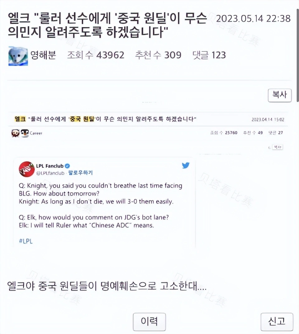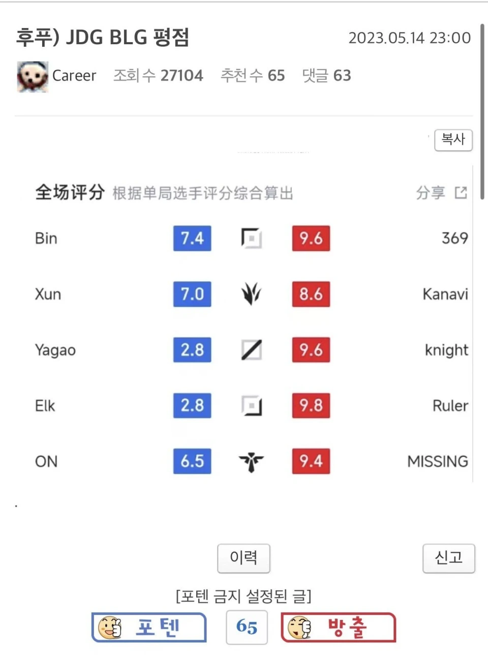 MSI胜者组的对决中,JDG以3-0的战绩击败了BLG,晋级下一轮和T1的角逐。很快这场角逐也引发了不少LCK网友的热议,一起来看看韩网的观点是什么吧! -ELK在干什么啊?他险些一个人把角逐弄翻盘了。 -哎呀,ELK不愧是中国国家队的AD啊。 -纯灾难,ELK灾难。 -ELK不知道奎桑提的技能吗? -听说有超等对决,说的就是这场吗? -岂非是GG和C9的超等菜鸡对决? -Gumayusi,Ruler要去见你了。 -JDG好可骇啊,游戏玩得很好啊。很等待和T1的角逐。 -ELK击败了BLG。 -看来终极冠军还是在T1、GEN和JDG中诞生,BLG不可啊。 -这就是听说中的ELK。 -但是Knight也好锋利啊,辛德拉是怎么做到这种程度的。 -ELK最大题目是像个傻瓜一样走到前面被开,固然每波团战369也打得很好。 -AD差距太悬殊了。 -JDG真的好会玩游戏啊。 -ELK这家伙是职业选手吗?也不是只有这场如许玩,前次也是如许,打角逐好随意啊。 -我认真地说ELK似乎不知道奎桑提的技能。 -真的是这种程度的表现。 -ELK把游戏都搞砸了,就是AD差距啊。 -第一次见到奎桑提吗? -ELK:我会让Ruler知道什么是中国AD。ELK啊,听说中国AD们以侵害光荣为由告状你了。 -是要让Ruler知道中国AD怎么送的吗? -中国AD我会选JKL神。 -JKL不是这种程度的AD吗? -JKL神会布满创意和打击力的送一次。但是ELK这场送得太轻松频仍了。 -如今知道了中国AD是真的玩得烂。 -你以为你是Uzi吗? -客岁的hope也是,真的烂透了。 -中国AD让人感到畏惧的只有Uzi。 -Gala也是个可骇的家伙。 -虎扑JDG和BLG评分。 -牙膏评分太低了吧。 -啊,ELK如许都打不到1分吗? -bin和xun为什么这么高分?看起来和yagao表现差不多。 -xun有7.0分对吗? -ELK的分数不能直接用null来表现吗? -xun有7分真的很高啊。 -牙膏和ELK同分? -牙膏固然没打好,但是不应该和ELK同样的分数。 那么,对于这些LCK网友们的观点,你们有什么想说的吗?欢迎在批评区留言探究。想看更多韩网热议的话,关注贝塔吧! |