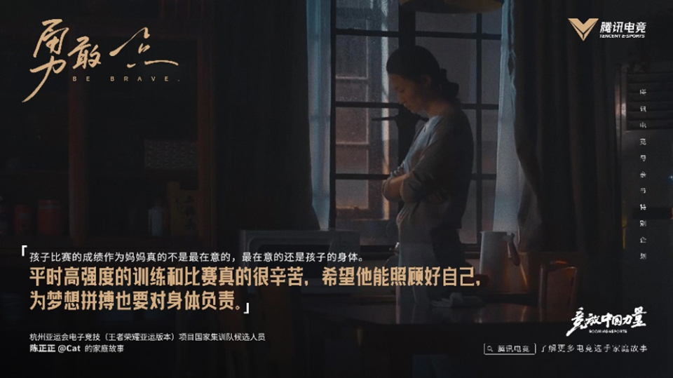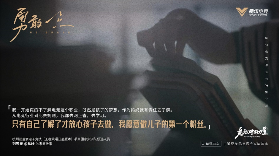 所谓发展,就是一个不绝选择之后的效果。我们面临每一次的发展选择,小到一个爱好班,大到一个就业方向,伴随在身边的肯定有妈妈。 大胆一点,是妈妈对孩子最为平实的鼓励,却成为电竞选手们心底最有力气的支持。大胆一点,也是妈妈们给本身冷静打气的心语。 如今,电竞成为亚运会正式项目,选手们也都期待着可以在亚运赛场让妈妈看到本身的风采。 本日是母亲节,祝全部巨大的母亲们,节日快乐! “我就这么一个儿子,我乐意给他两年时间去追电竞梦,刚强的站在他背后。” ——赵礼杰(Jiejie)的家庭故事 有一种爱叫做你大胆去做,妈妈永久是你最刚强的后援。 “寻常高强度的训练和比赛真的很辛劳,盼望他能照顾好本身,为空想拼搏也要对身材负责。” ——陈正正(Cat)的家庭故事 有一种爱叫做无论何时何地做什么,都盼望你能把身材放在第一位。 “只有本身相识了才放心孩子去做,我乐意做儿子的第一个粉丝。” ——刘天豪(易峥)的家庭故事 有一种爱叫你喜欢的我都会去相识,盼望可以大概更好的对你负责,伴随你发展。 “远行就意味着发展,意味着他正向本身的远方笃定前行。” ——刘云雨(司马光)的家庭故事 有一种爱叫做放开,盼望你可以在本身热爱的古迹里认真积极,不负初心。 “我想这股倔强劲儿,也成绩了他未来独当一面的个性吧。” ——朱伯丞(Paraboy)的家庭故事 有一种爱叫做担心你受伤害,但也鼓励你独立发展。 “我以为不应让他走上几辈的老路,可以选择另一种滚烫的人生。” ——俞越(Liyu)的家庭故事 有一种爱叫做你喜欢的路,我会帮你一起走的更好。 妈妈的爱有许多种,温柔的、严肃的、担心的、期待的,但无论怎样的爱,都是每一个孩子生命里最值得铭刻的故事。 谢谢把我带到这个天下,伴随我发展,让我感受精彩的人生。 有您伴随,深感荣幸,唯有积极以赴,成为您的得意。 - 腾讯电竞母亲节特殊企划 - 关于腾讯电竞 腾讯电竞品牌正式建立于2016年12月9日,并成为与腾讯游戏并行的IEG独立业务品牌。作为中国最具竞争力的电竞品牌,腾讯电竞业务从2010年以TGA开始结构,构建起了环球最丰富的赛事体系、拥有最多的电竞用户及最高的赛事观看量,成为环球领先和最具竞争力的电竞品牌。从专业而全面的电比赛事、电竞教诲、电竞技能、产业生态、商业场景、电竞规范等多个层面助力中国以致环球电竞产业的发展,推动环球电竞文化交换。 |