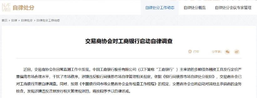 中国基金报 晨曦 债券市场又一轮羁系严查来袭!买卖业务商协会再度脱手。 5月9日,买卖业务商协会官网信息表现,中国银行间市场买卖业务商协会针对中国收支口银行金融债券发行涉嫌违规举动,以及中国民生银行承销业务涉嫌违规举动开展自律观察。 同时,买卖业务商协会提示称,银行间债券市场到场机构在从事相干业务过程中,务必牢固树立市场责恣意识,严格服从相干羁系规定和自律规则要求,合规展业,自觉维护银行间债券市场运行秩序。 近期,买卖业务商协会已多次对违规金融机构启动观察自律工作,涉及违规债券代持买卖业务、主承销产物发行订价偏离市场公道程度、违规收取发行人财务资助等标题。 来看详情—— 买卖业务商协会脱手 收支口银行、民生银行遭观察 5月9日,买卖业务商协会公告称,依据《银行间债券市场自律处分规则》,中国银行间市场买卖业务商协会针对中国收支口银行金融债券发行涉嫌违规举动,以及中国民生银行股份有限公司承销业务涉嫌违规举动已开展自律观察。 在此次转达中,买卖业务商协会并未公布两家银行具体的违规事项,仅点出“金融债券发行”、“承销业务”的涉嫌违规。 虽与国有大行及头部股份行相比略显逊色,但在银行债券承销排行榜中,中国民生银行排名相称靠前。Wind数据表现,2022年中国民生银行承销债券880只、金额3436.66亿元,承销金额在银行承销债券榜单中排在第11名;2023年以来承销债券344只、金额1471.37亿元,同样排名第11位。 早在2020年,买卖业务所协会就发布了《非金融企业债务融资工具承销机构自律公约》,144家承销机构到场。《自律公约》中要求缔约机构按照市场化原则开展业务,不得出现以低于本钱的承销费率报价、答应发行利率、利用发行订价等扰乱市场的举动。 买卖业务商协会再次提示银行间债券市场到场机构,在从事相干业务过程中,务必牢固树立市场责恣意识,严格服从相干羁系规定和自律规则要求,合规展业,自觉维护银行间债券市场运行秩序。 严查低价干扰市场秩序 对峙“一案双查” 近期,债券市场又一轮羁系严查来袭,买卖业务商协会频仍脱手。 4月4日,买卖业务商协会公告称,在一样平常监测工作中发现,工商银主承销的多期债务融资工具发行订价严肃偏离市场公道程度,干扰了市场秩序,涉嫌违背银行间债券市场自律管理相干规定。 依据《银行间债券市场自律处分规则》,买卖业务商协会已对工商银行开展自律观察。同时,按照《中国银行间市场买卖业务商协会业务查抄工作规程》的规定,买卖业务商协会也将启动对其他主承销商的业务查抄,发现涉嫌违背注册发行相干管理规则的,将按步调予以自律惩戒。 在此之前,2022年9月,买卖业务商协会曾对多家债券主承销商启动自律观察。本年1月,买卖业务商协会正式对6家主承销商的低价包销以及不规范的簿记建档利用举行自律处分,分别是招商银行、安全银行、交通银行、广州农商行、江苏银行、兴业银行。 别的,买卖业务商协会近期还查处了违规债券代持买卖业务、违规收取发行人财务资助等标题。5月8日,买卖业务商协会转达称,通过深入观察发现,大连银行等多家机构存在债券代持买卖业务等违规举动,经买卖业务商协会自律处分聚会会议审议决定,对相干机构及个人予以相应自律处分。 买卖业务所协会指出,做市商作为银行间市场基石机构,负担着进步市场活动性、促进代价发现的紧张作用,应切实提拔做市买卖业务本事,增强内部控制和风险管理,确保合规妥当展业,“真做市、做真市”。 4月3日,买卖业务商协会对4家涉及发行环节违规的金融机构启动自律观察。买卖业务商协会指出,在查处四平城投案件中发现,光大证券作为主承销商和簿记管理人未合规开展发行工作,吉林银行、吉林亿联银行违规收取发行人大额财务资助,富国资管帮忙相干发行人直接大概间接认购自己发行的债券。 在此之前,本年3月,四平城投因作为债务融资工具发行,向投资者提供财务资助、两期债务融资工具发行利率未客观反映实在际利率程度,已先行被买卖业务所协会予以告诫,相干责任人被转达品评。 回首来看,2022年整年买卖业务商协会共对68起涉嫌违规案件备案观察,开展自律观察和自律问询103次,作出各类自律处分99家(人)次,涉及35家发行人和光荣增长机构、4家主承销商、3家管帐师事件所、1家状师事件所、2家其他范例机构和54名直接责任人。 此中,2022年共有10家中介机构及金融机构受到自律处分,涉及尽职观察未勤勉尽责、发行环节违规、召募资金监测督导不到位以及未合规开展债券买卖业务等环境。别的,另有多家主承销商因未能服从公平竞争的根本原则受到买卖业务商协会自律观察。 编辑:舰长 稽核:许闻 |